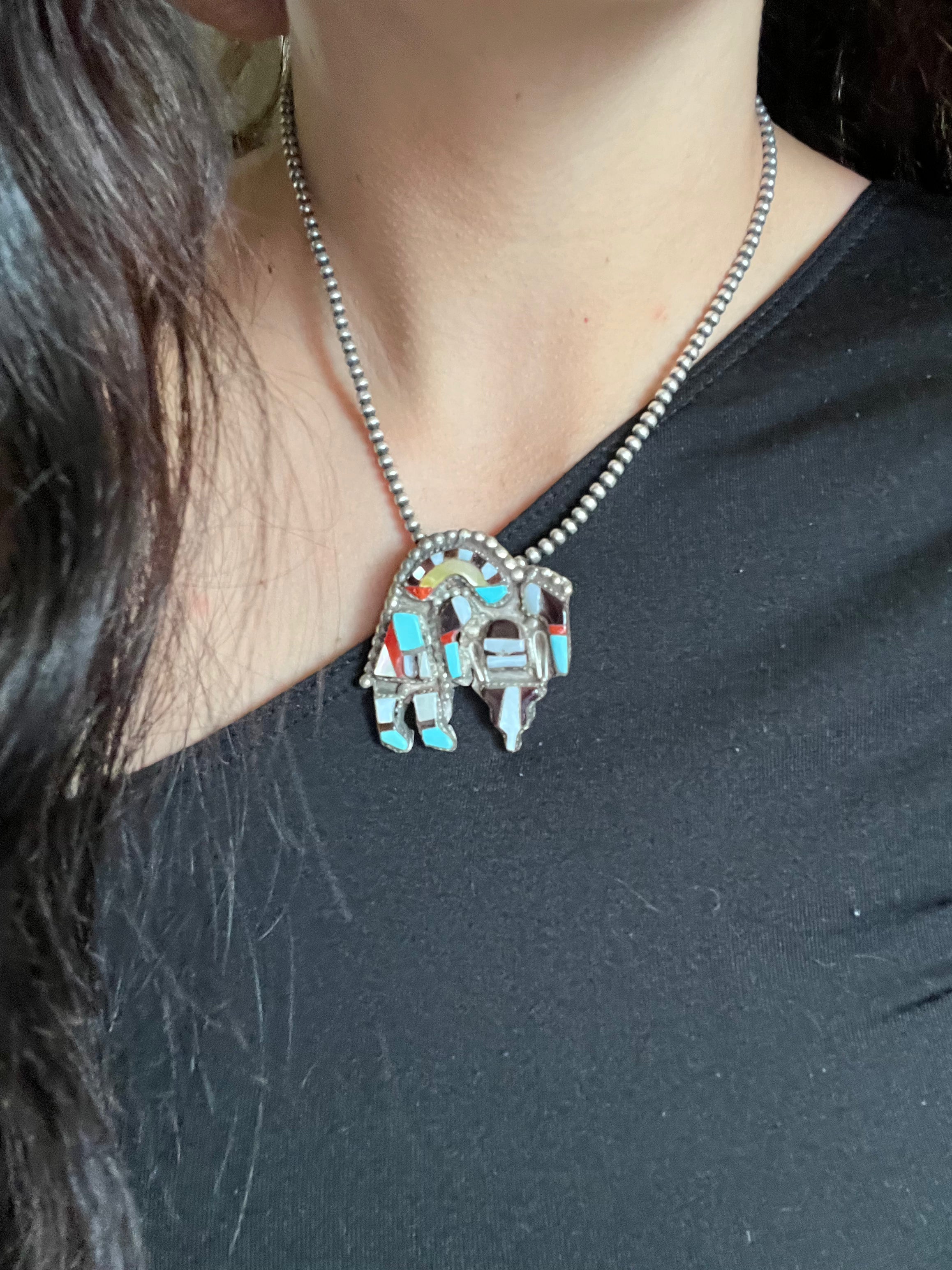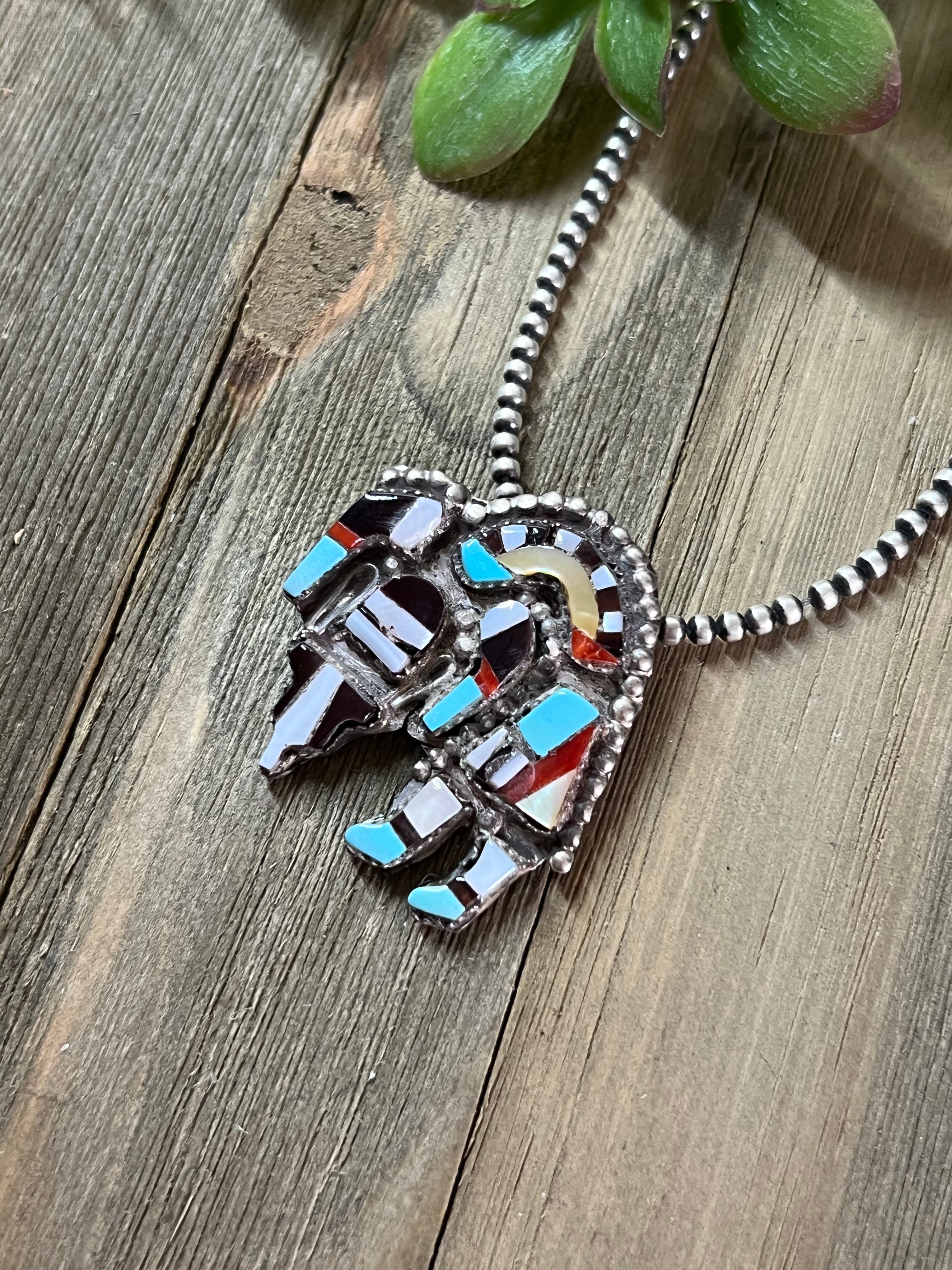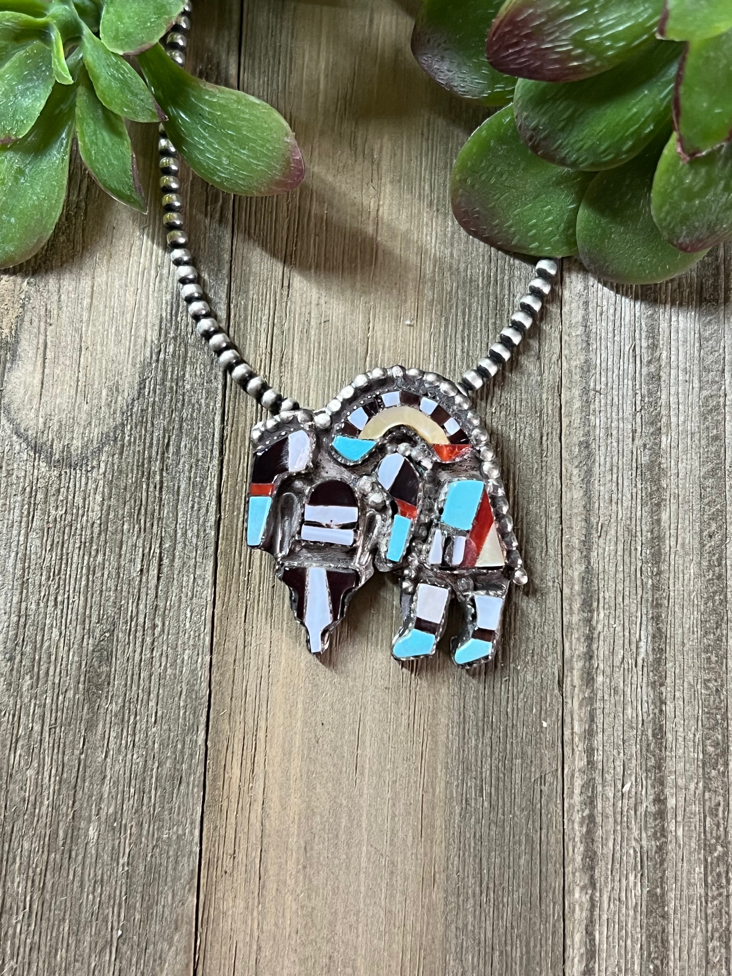 Vintage Zuni Made Multi Stone & Sterling Silver Inlay Pendant
