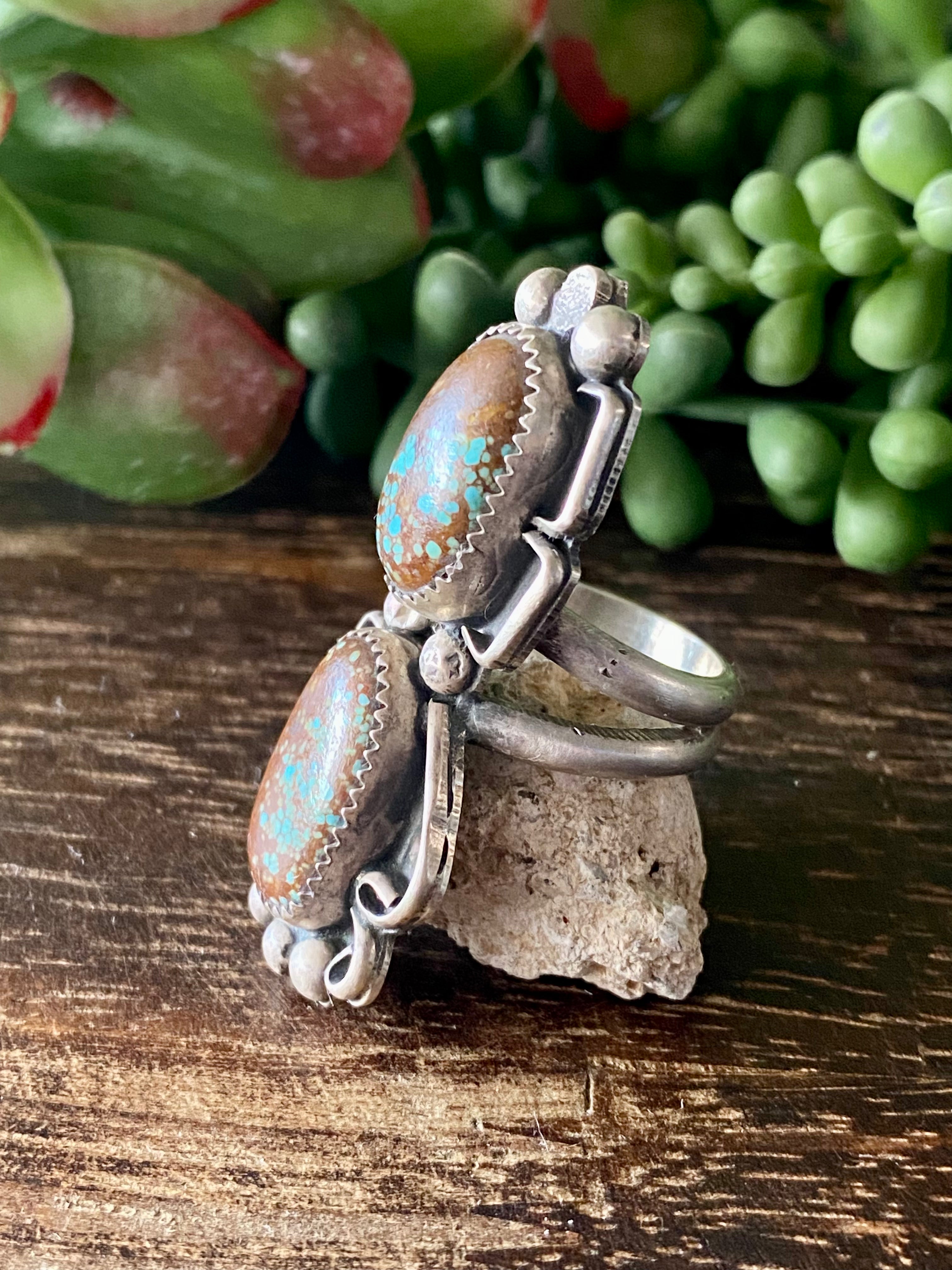Virginia Hinio #8 Turquoise & Sterling Silver Ring Size 6.75
