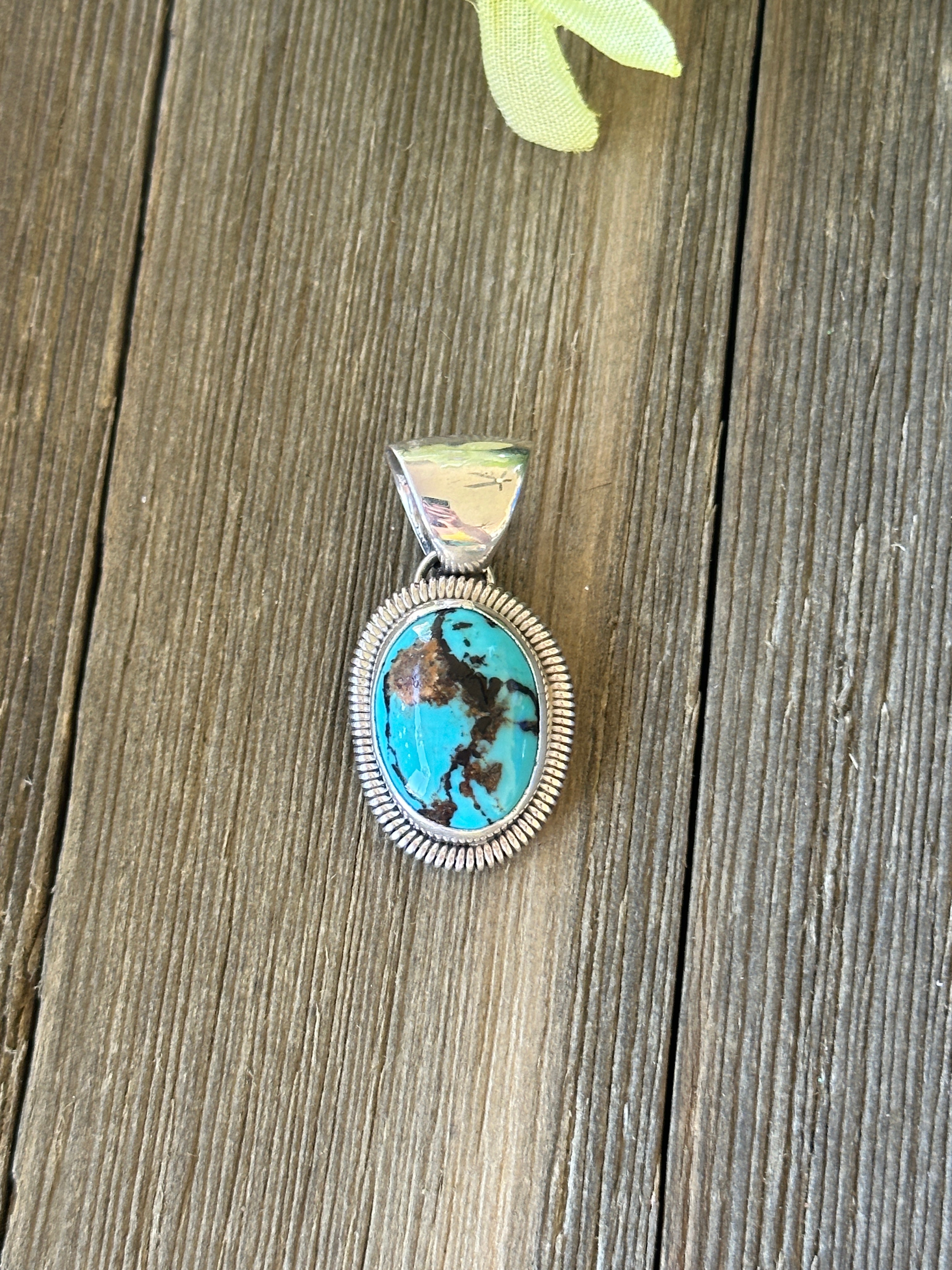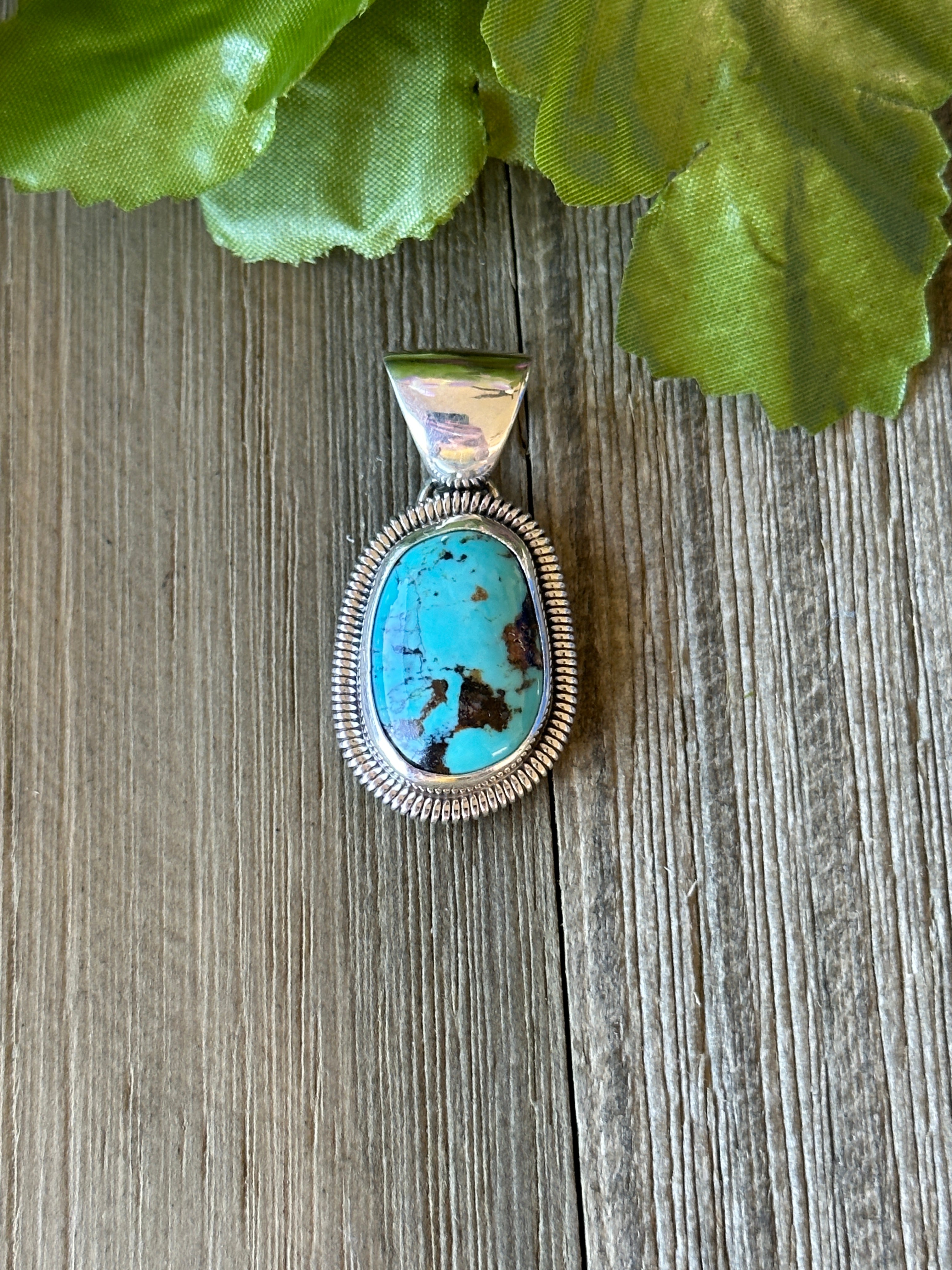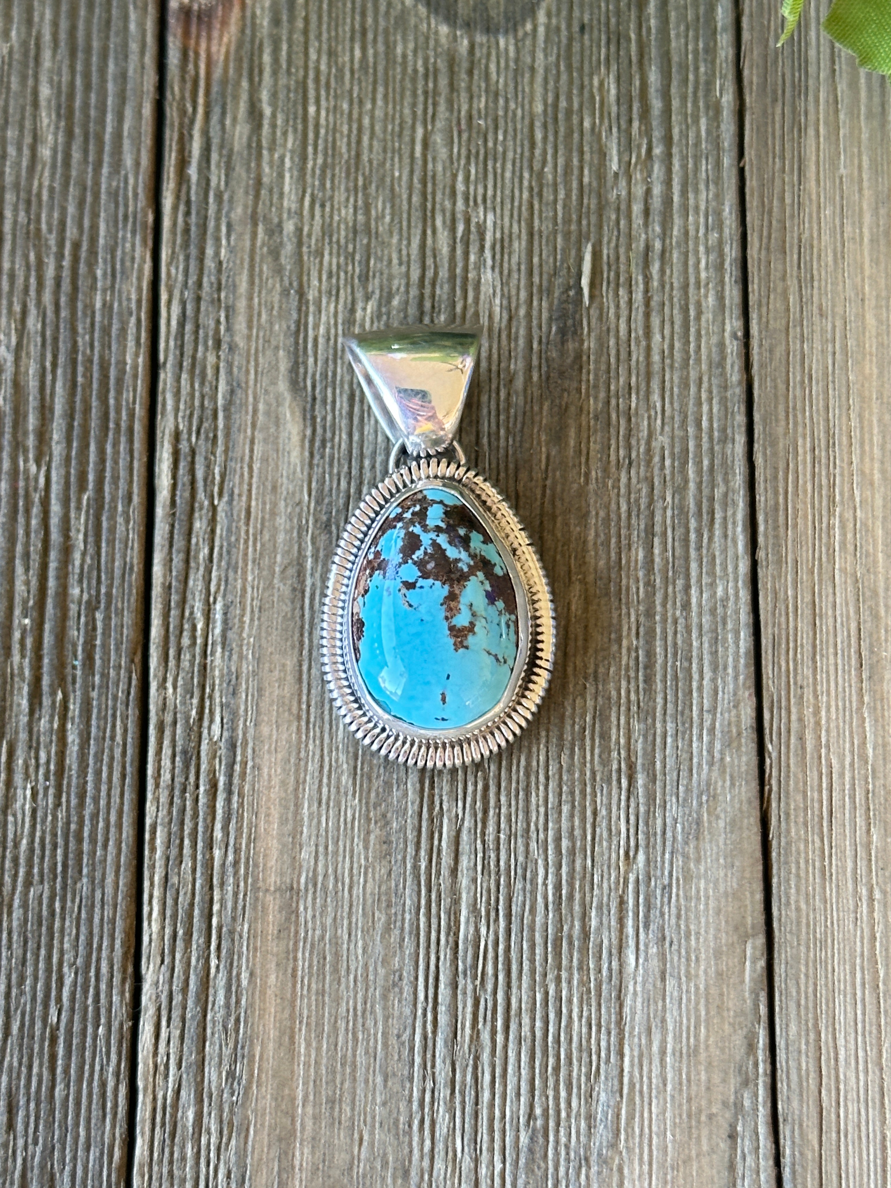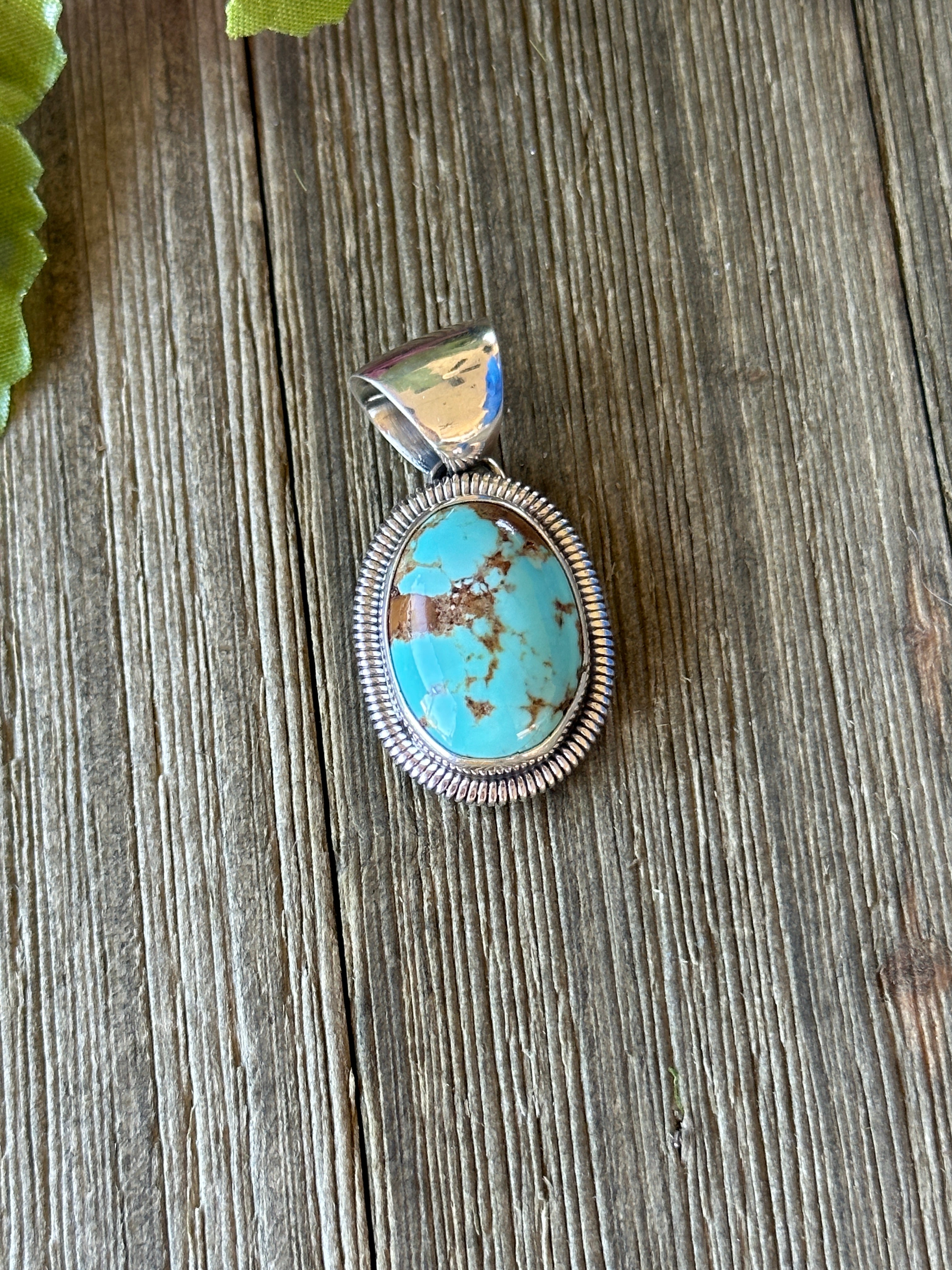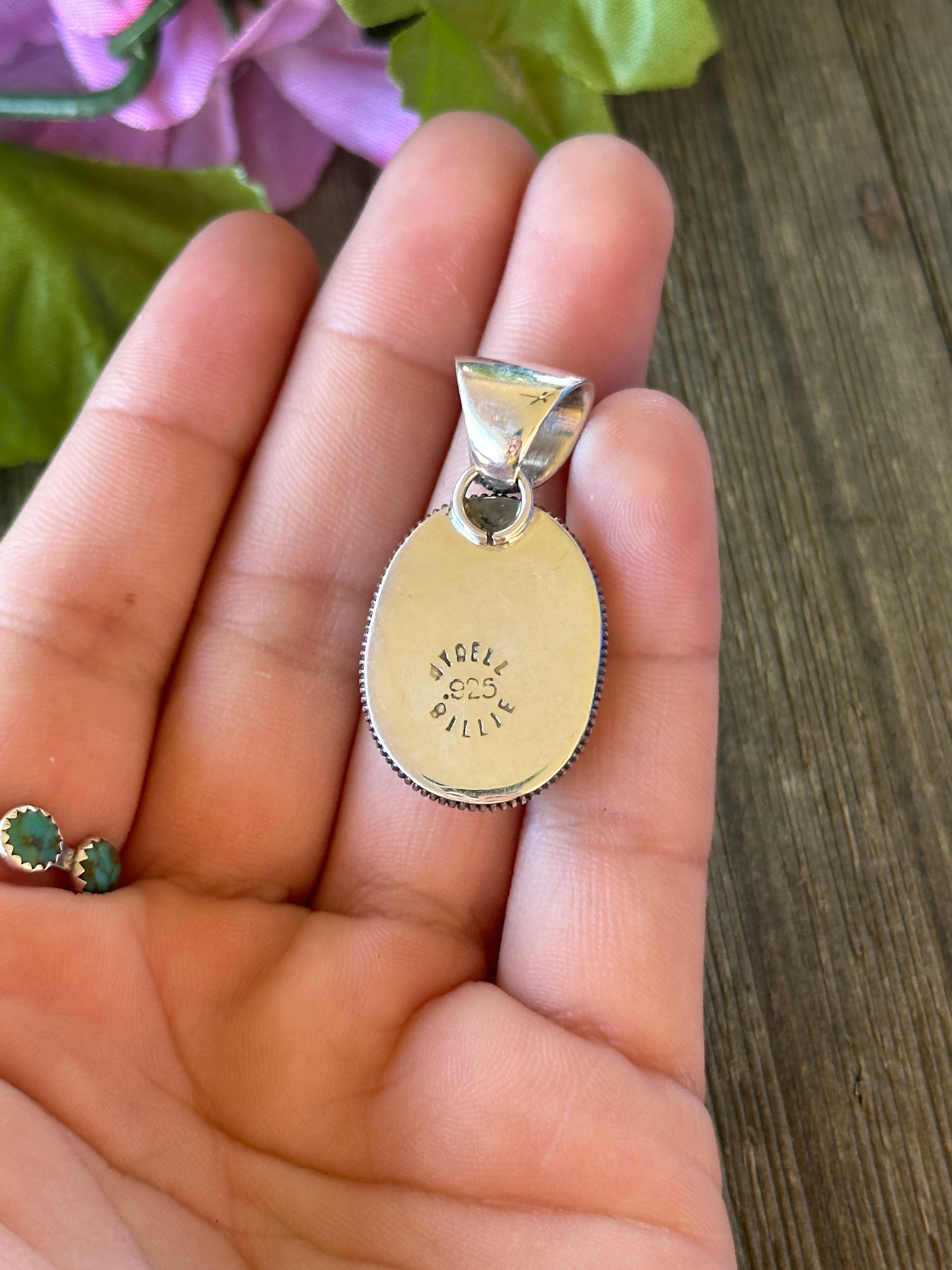 Wydell Billie Red Skin Turquoise & Sterling Silver Pendant. It measures 1 3/8 inches long and 3/4 of an inch wide. Pendant Only!! Signed by the artist and stamped sterling silver.