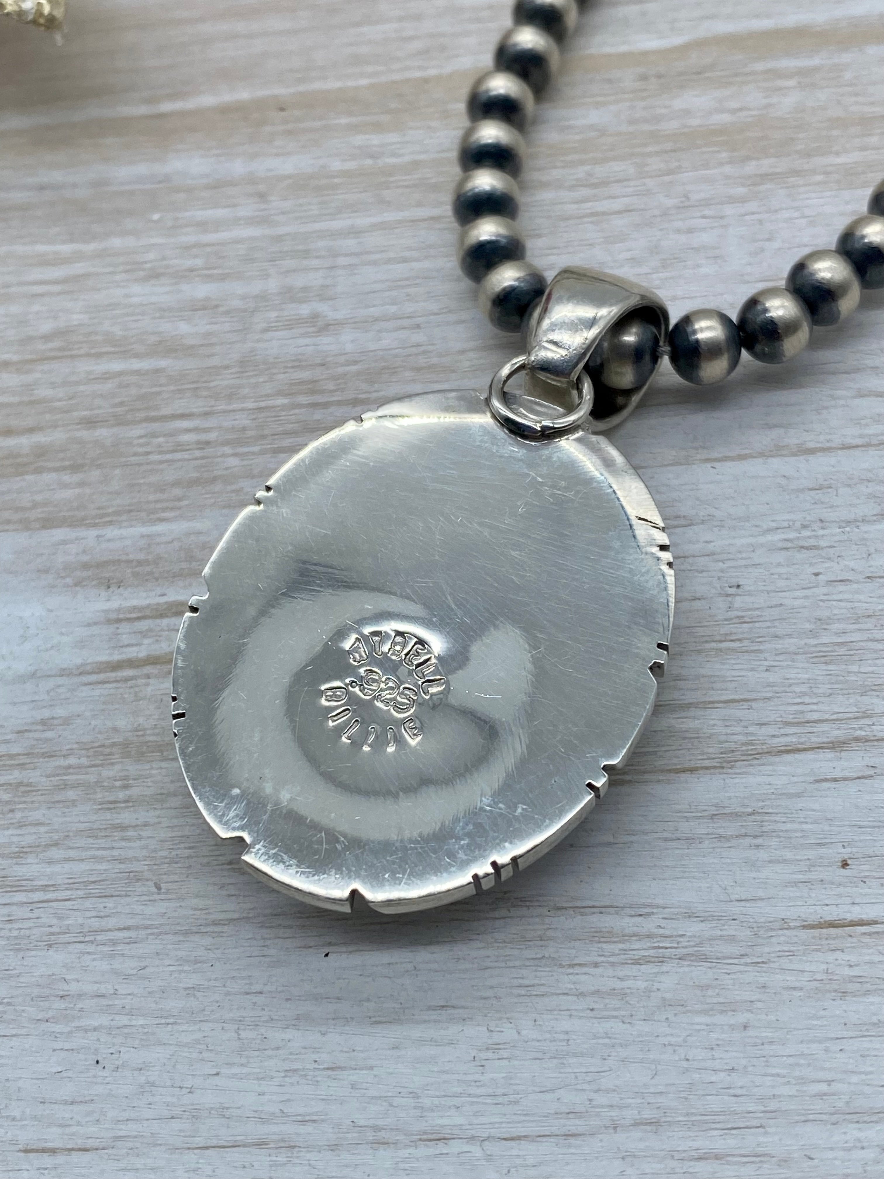 Wydell Billie Royston Turquoise & Sterling Silver Pendant. It measures just over 1 7/8 inches long and 1 1/8 inches wide. Pendant Only!! Signed by the artist and stamped sterling silver.