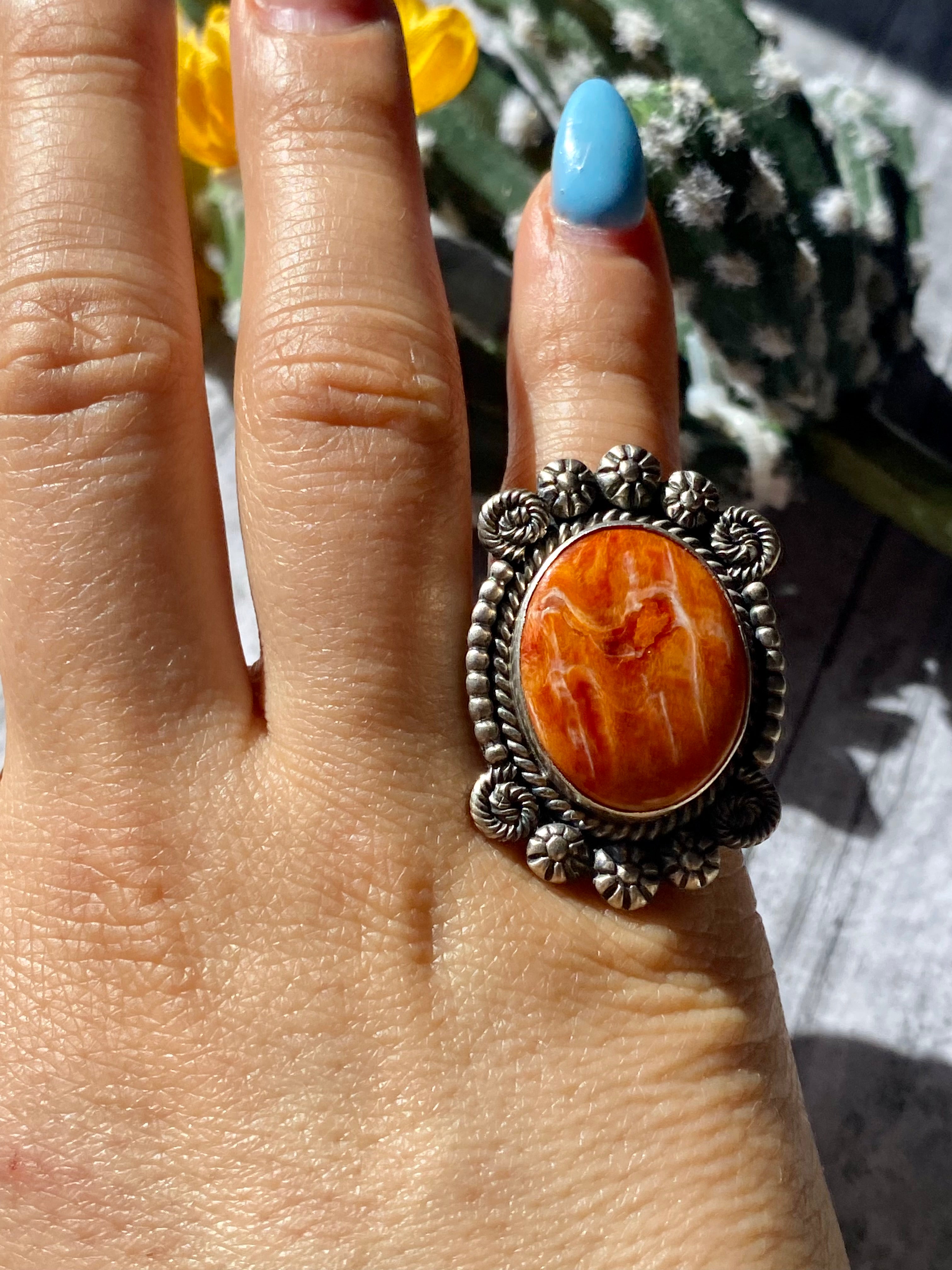 Wydell Billie Spiny Oyster & Sterling Silver Ring Size 7.25