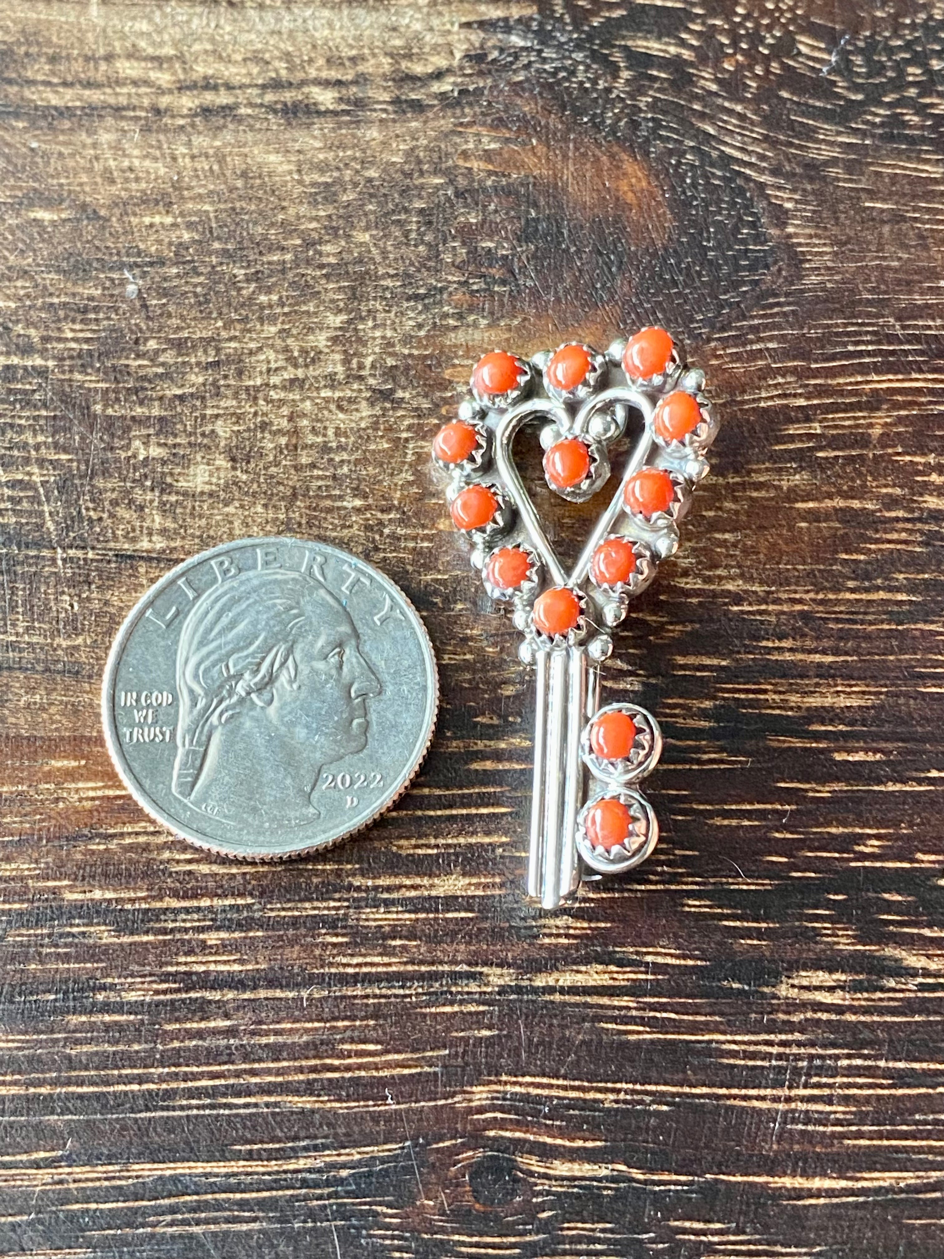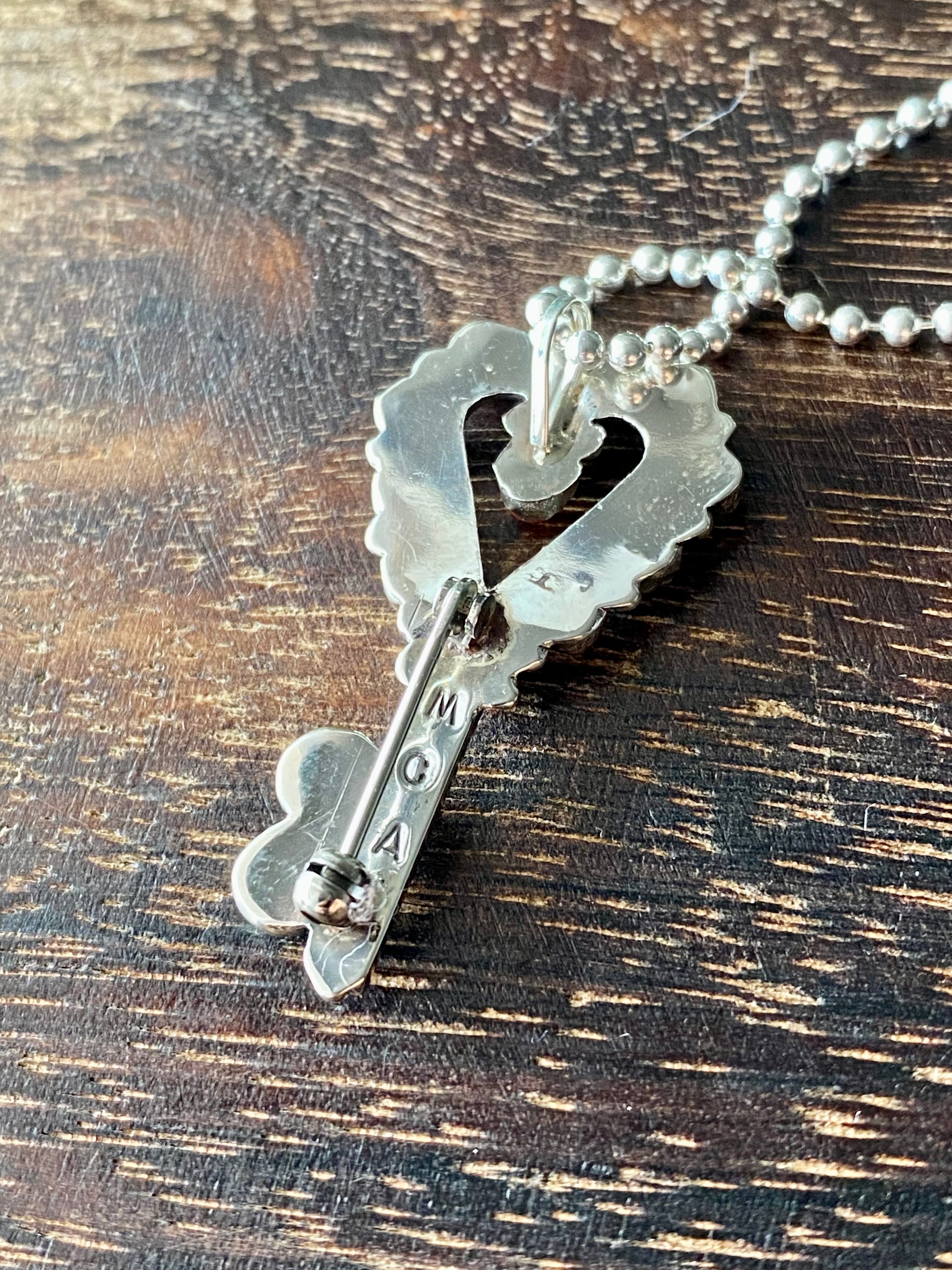 Zuni Made Coral & Sterling Silver Heart Pin/Pendant