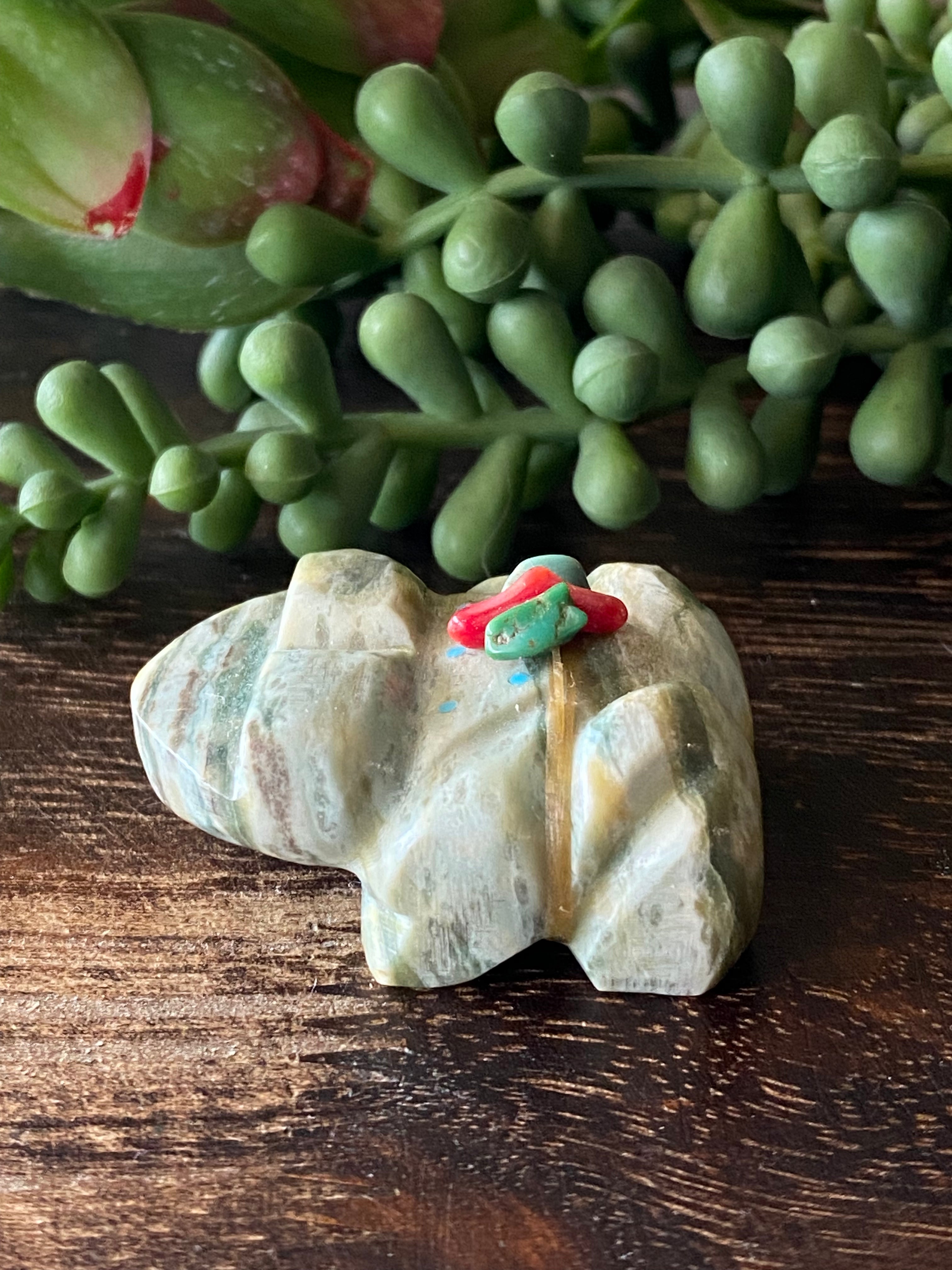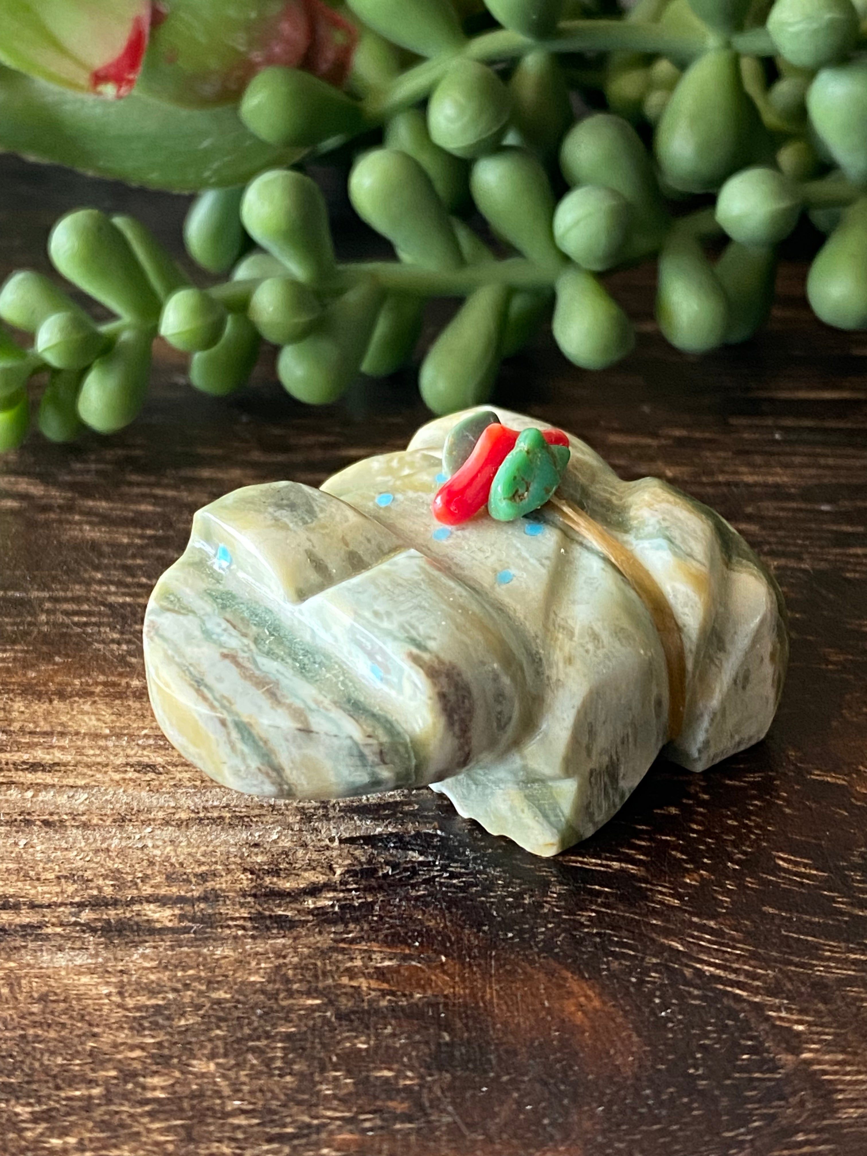 Zuni Made Fetish Stones Figurines. They measure 1 inch long and 1 5/8 inches wide. Signed by the artist.