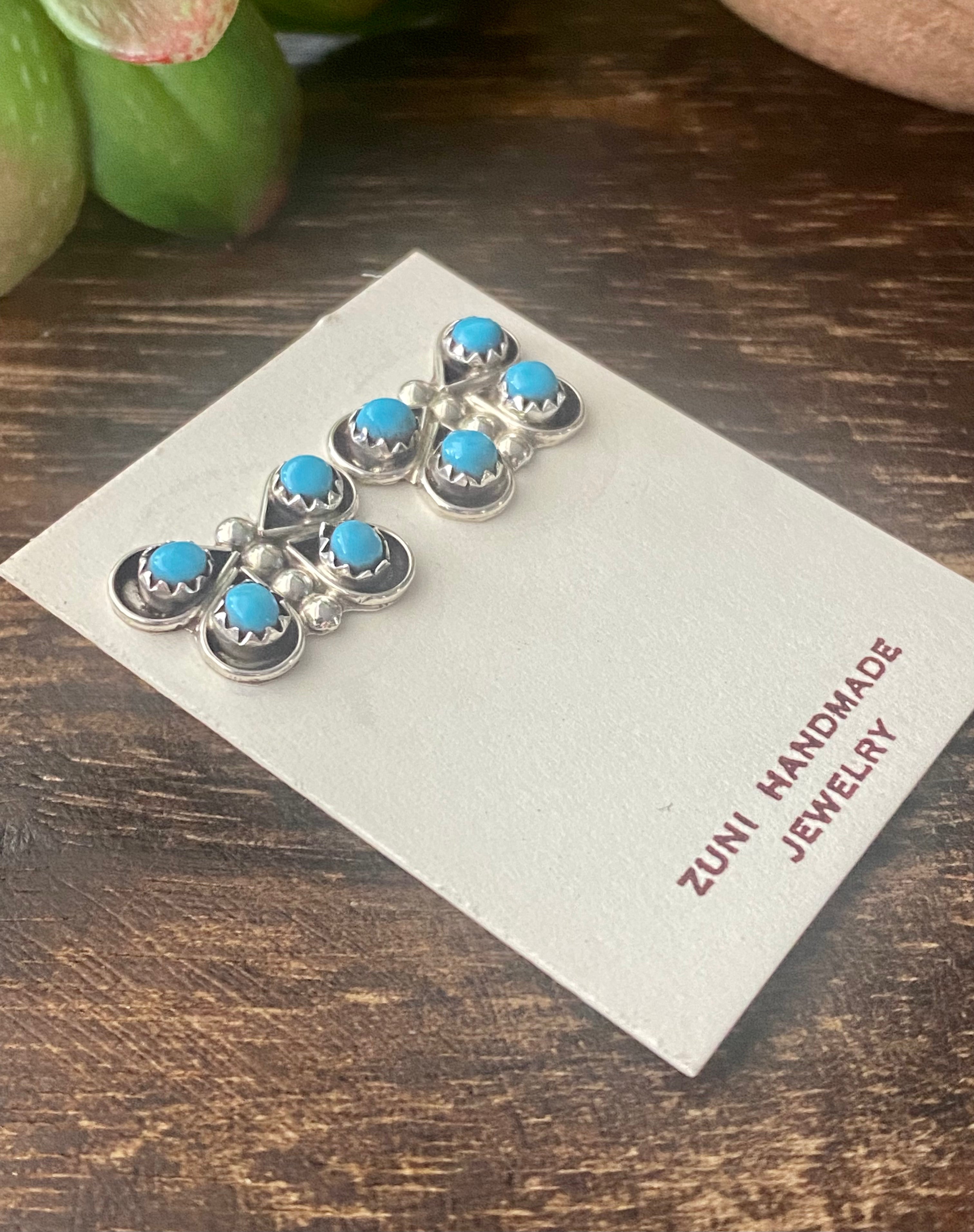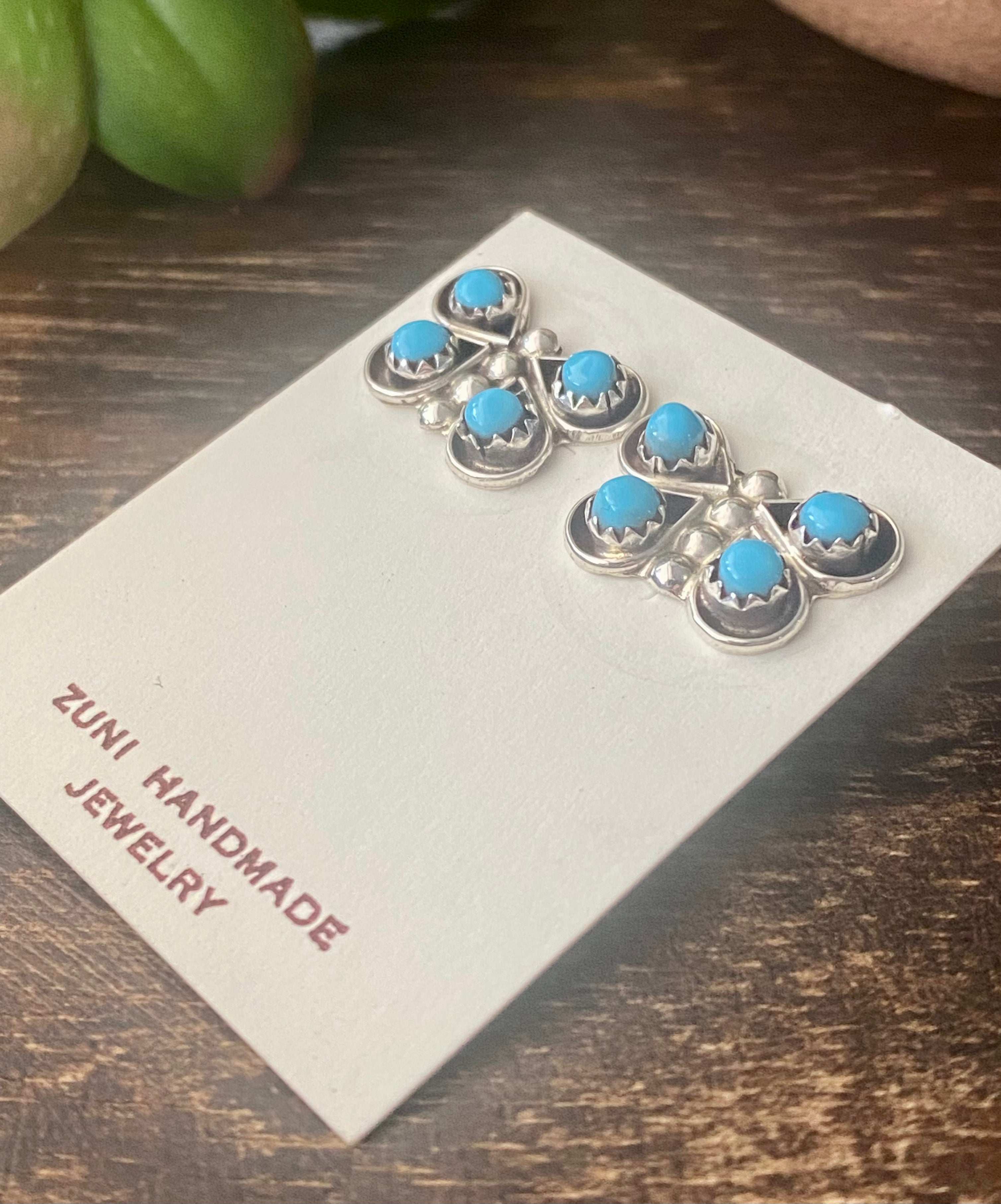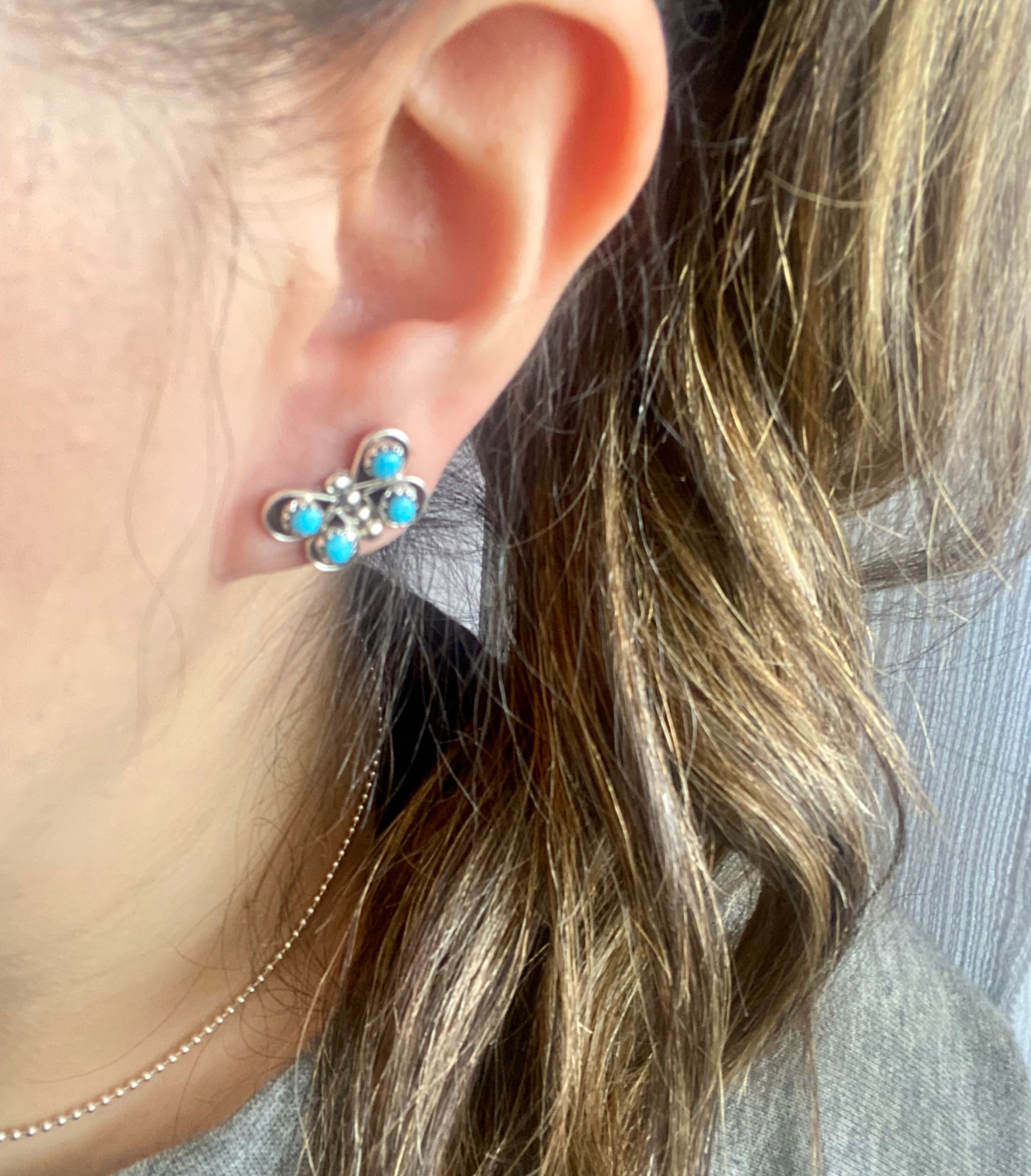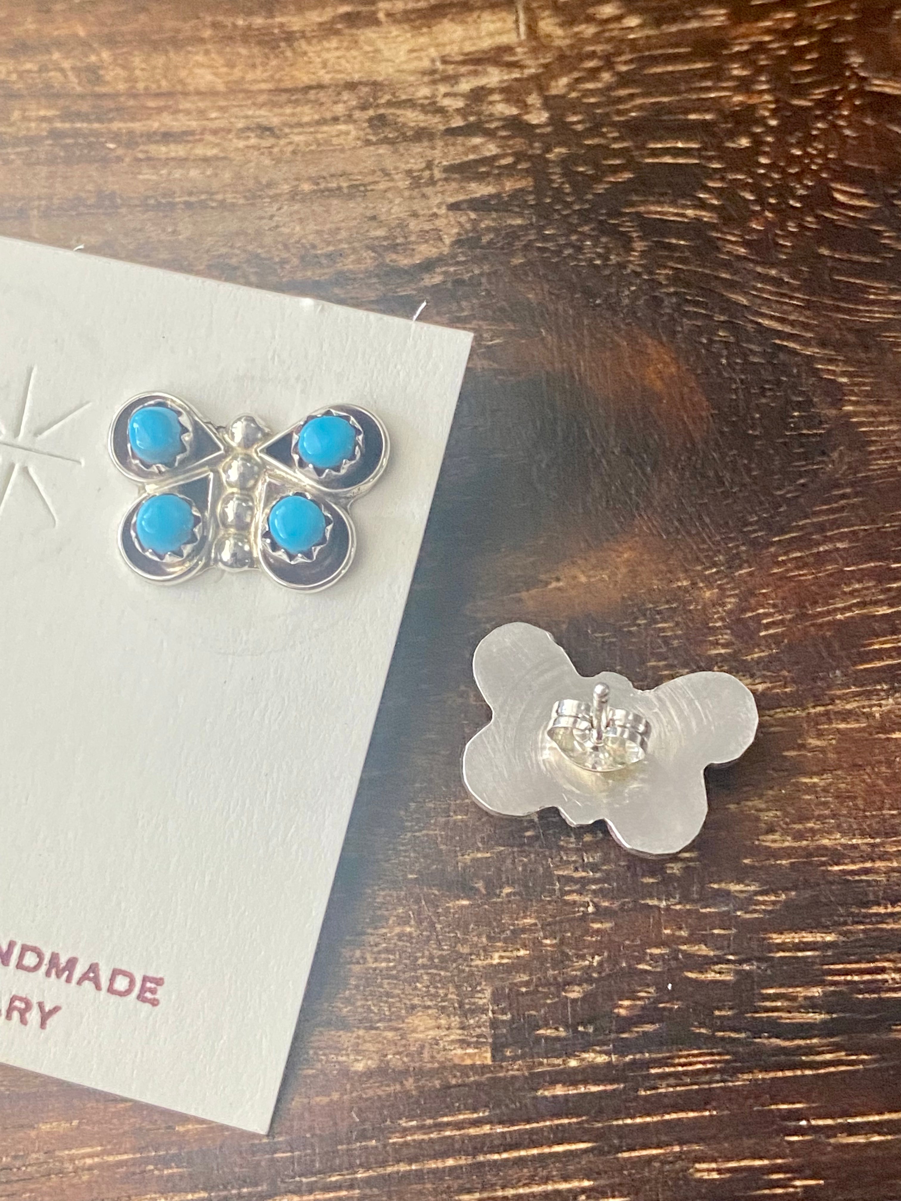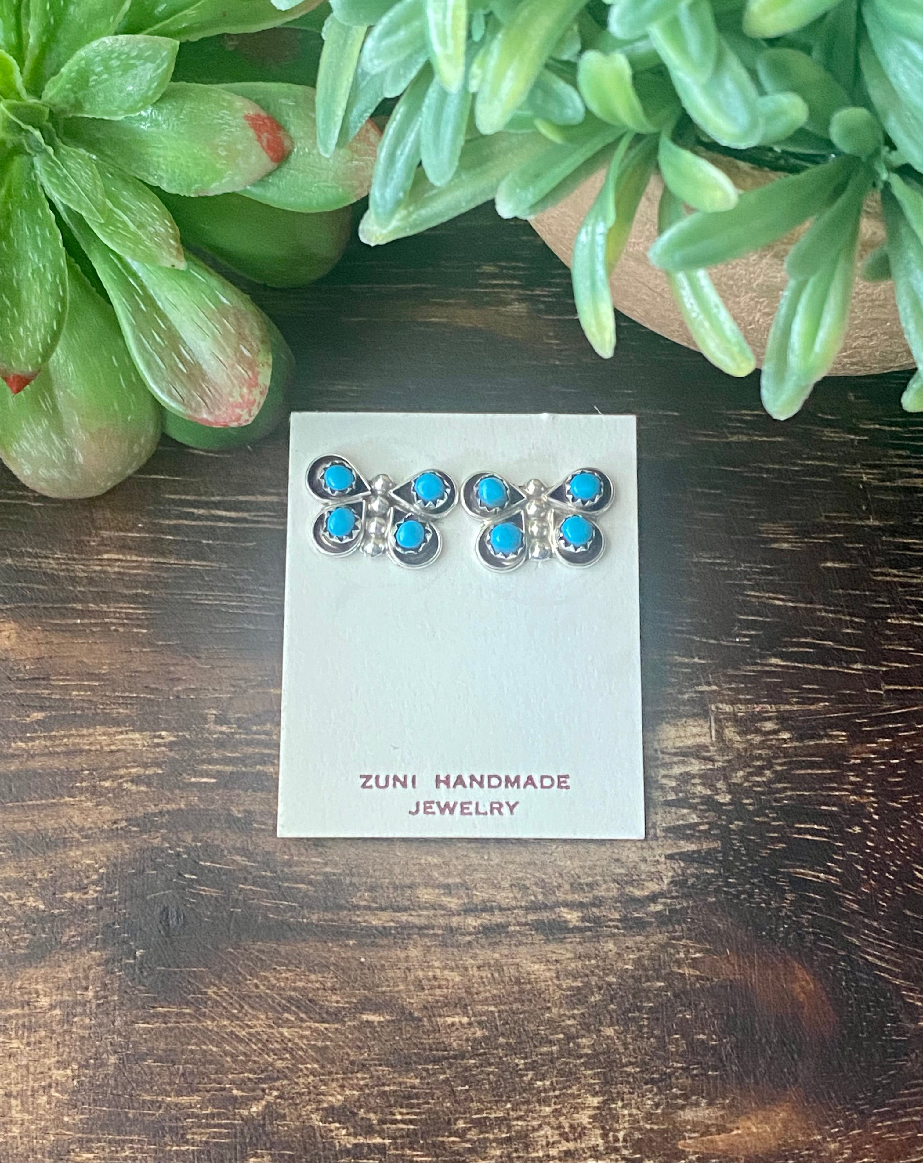 Zuni Made Kingman Turquoise & Sterling Silver Butterfly Post Earrings