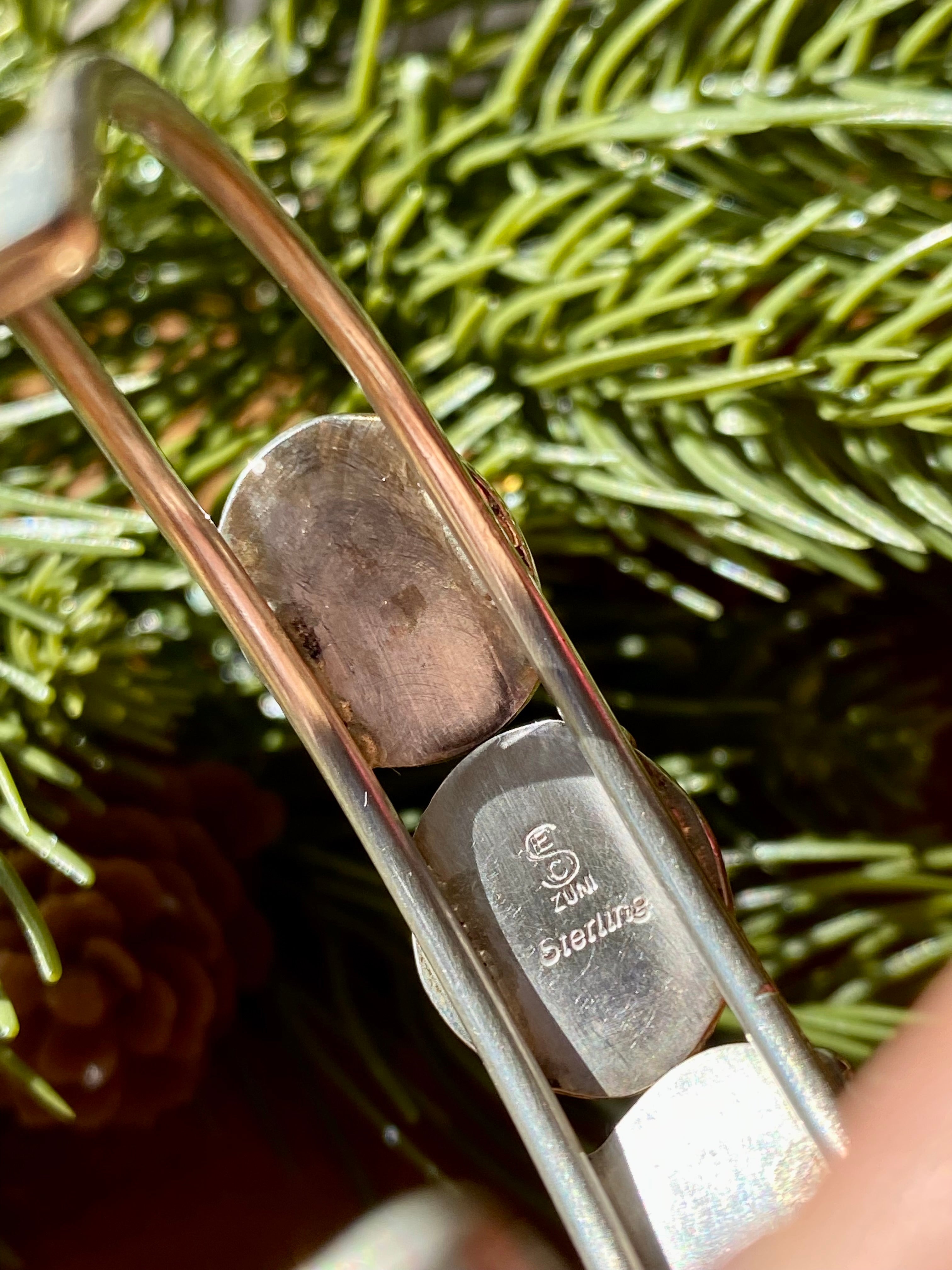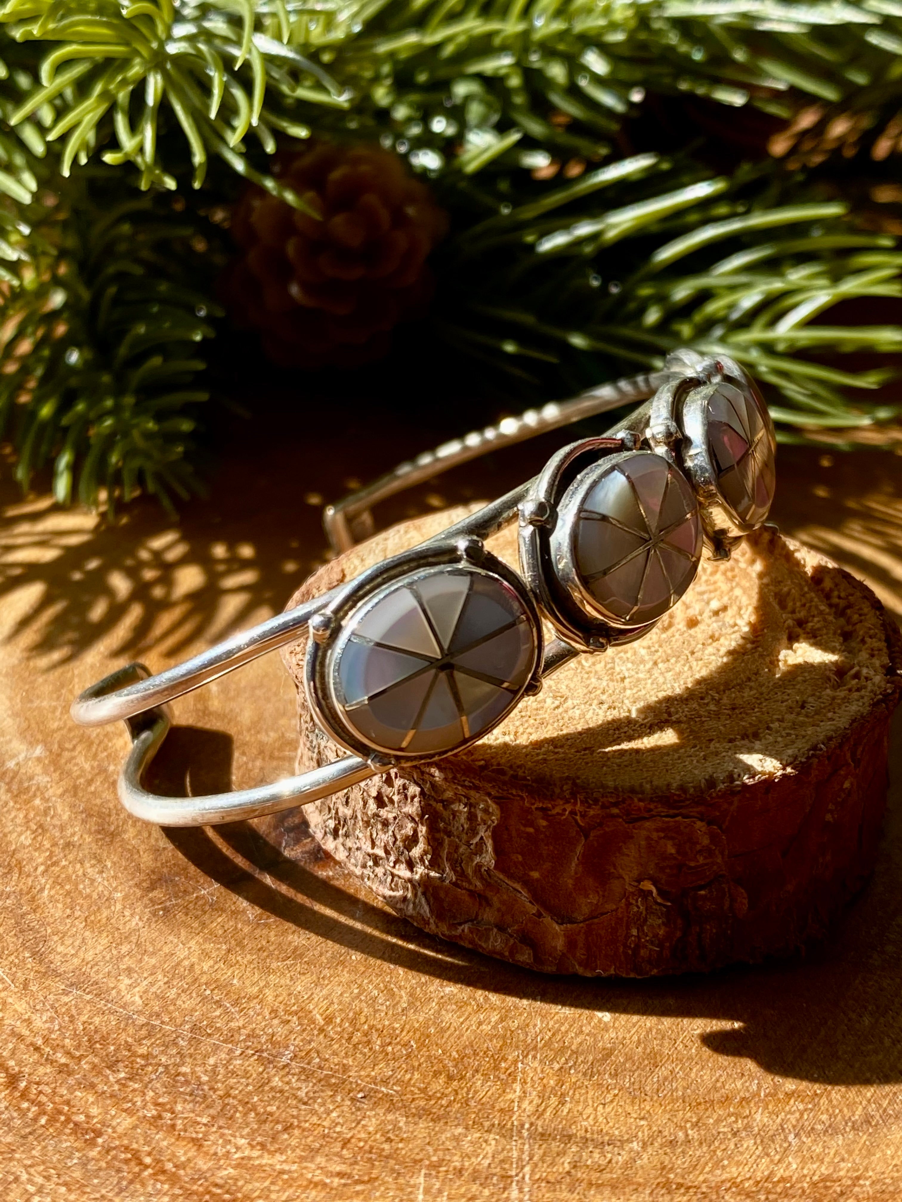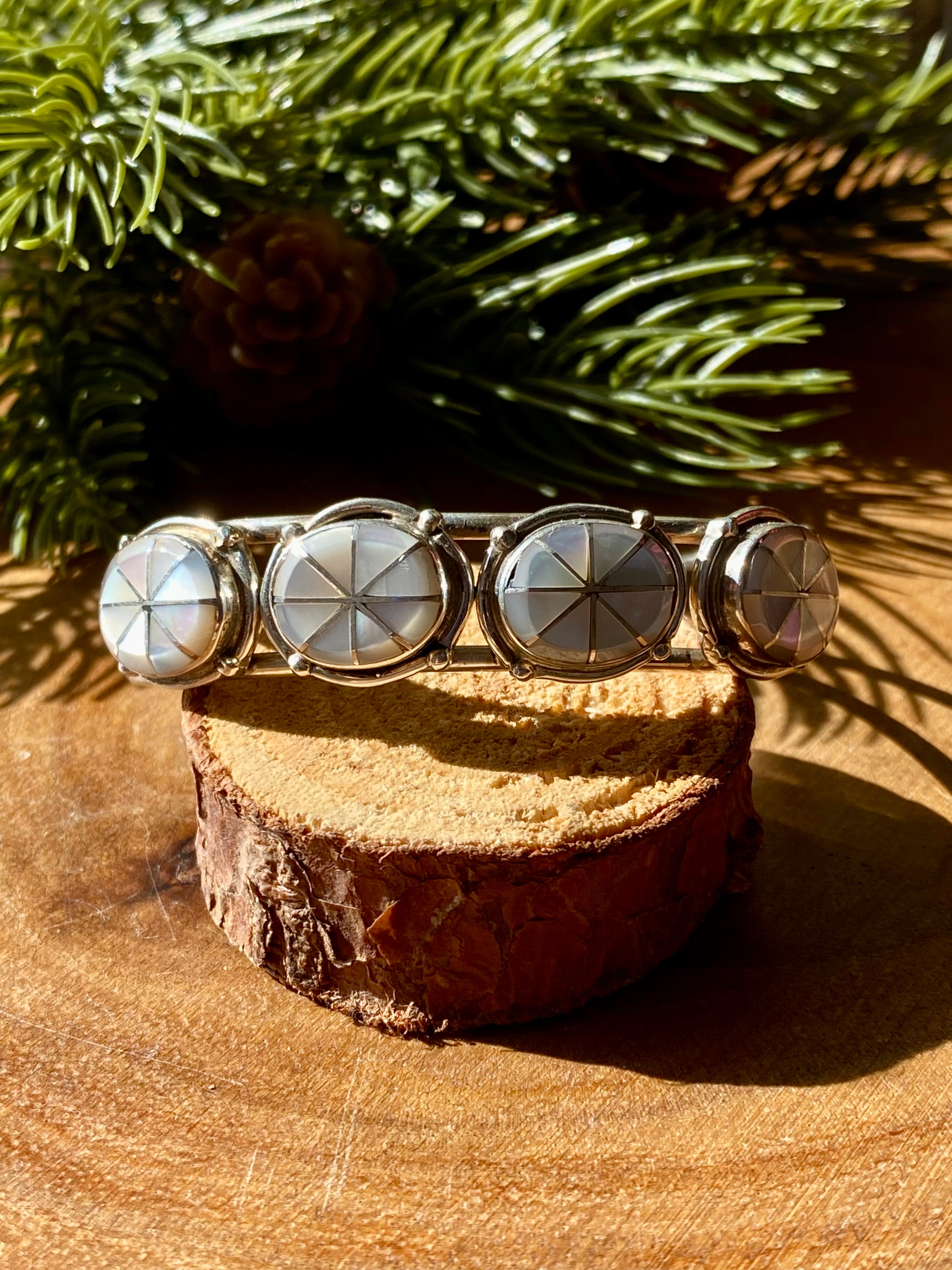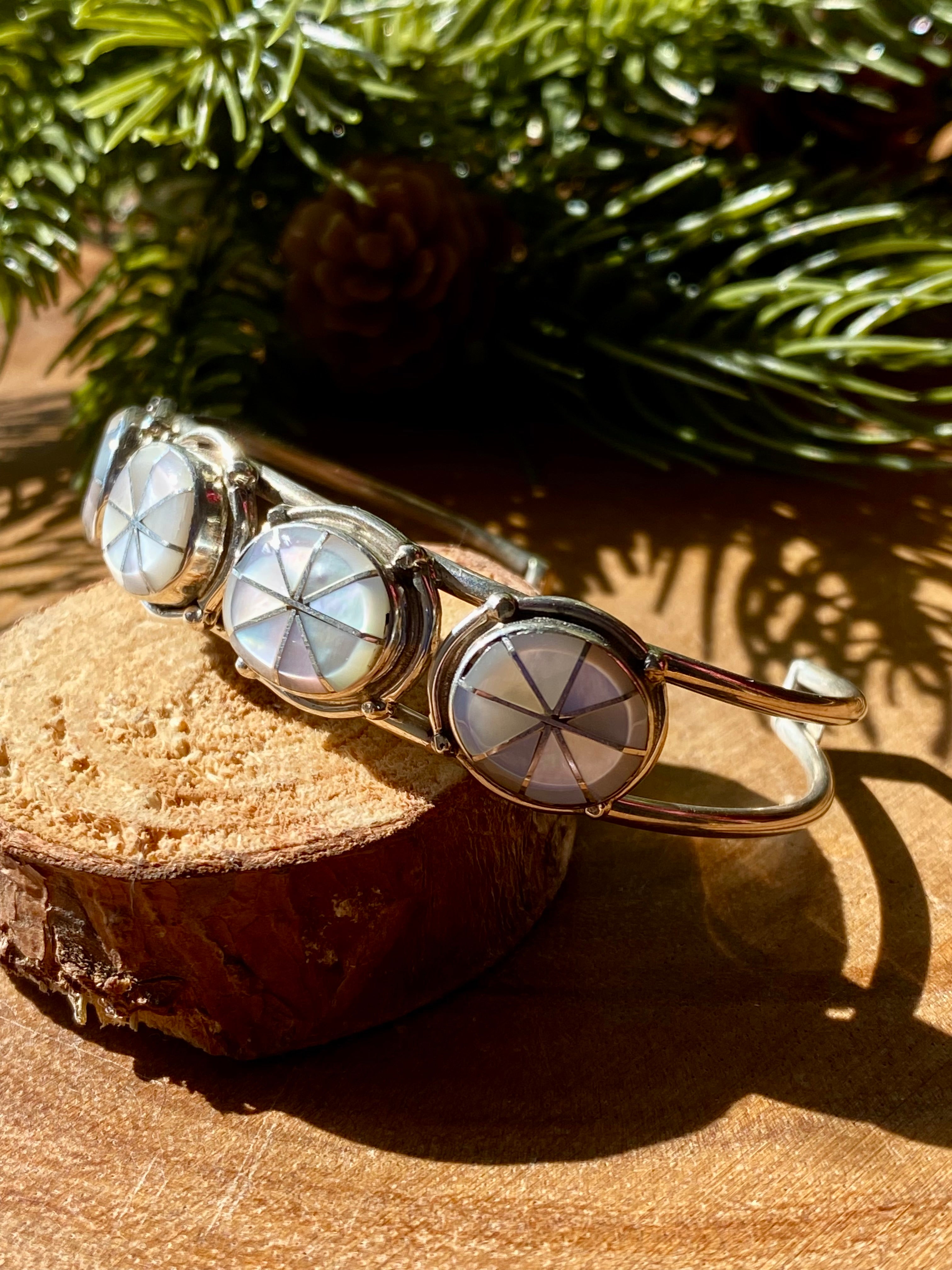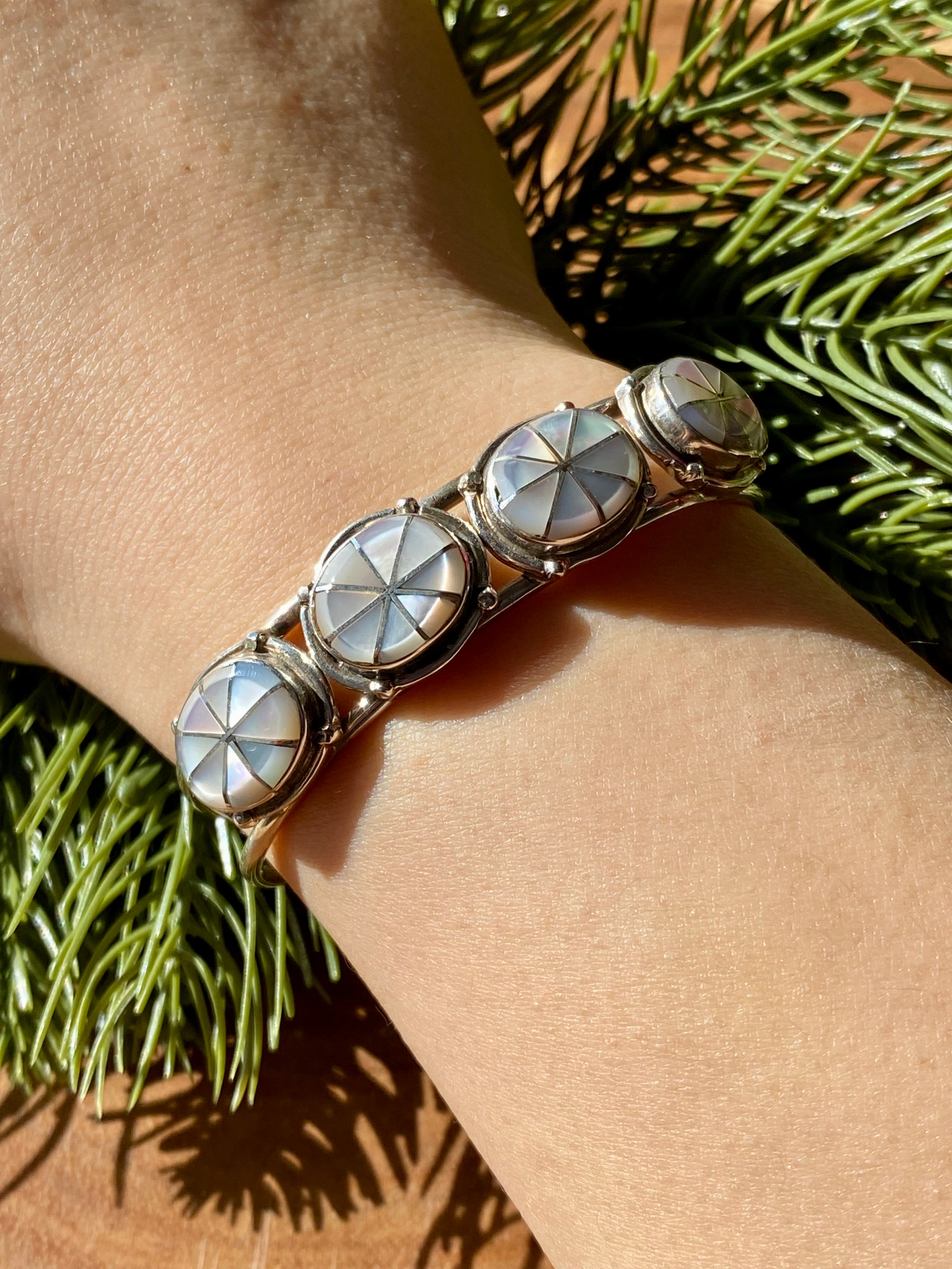 Zuni Made Mother Of Pearl & Sterling Silver Inlay Cuff Bracelet