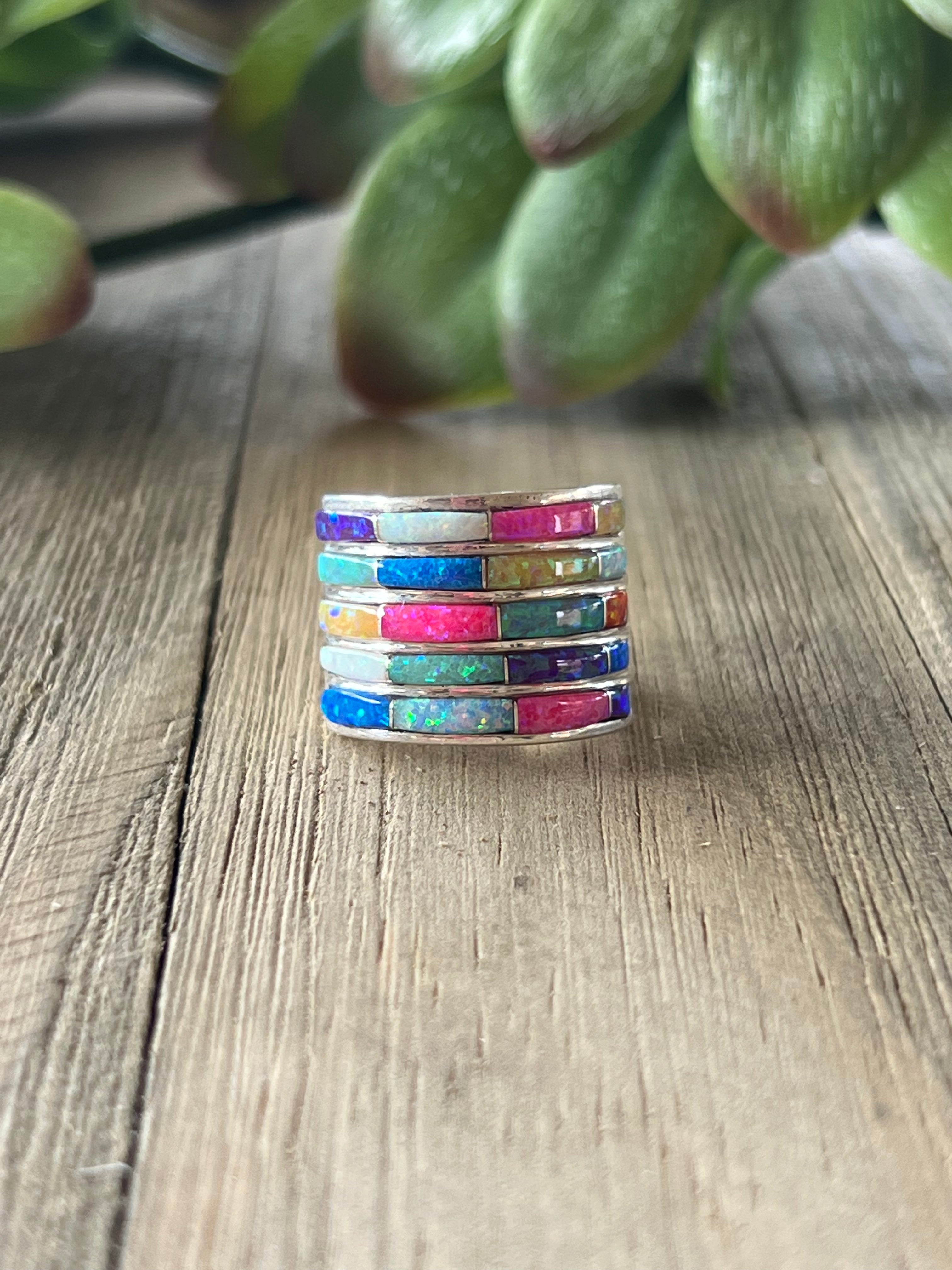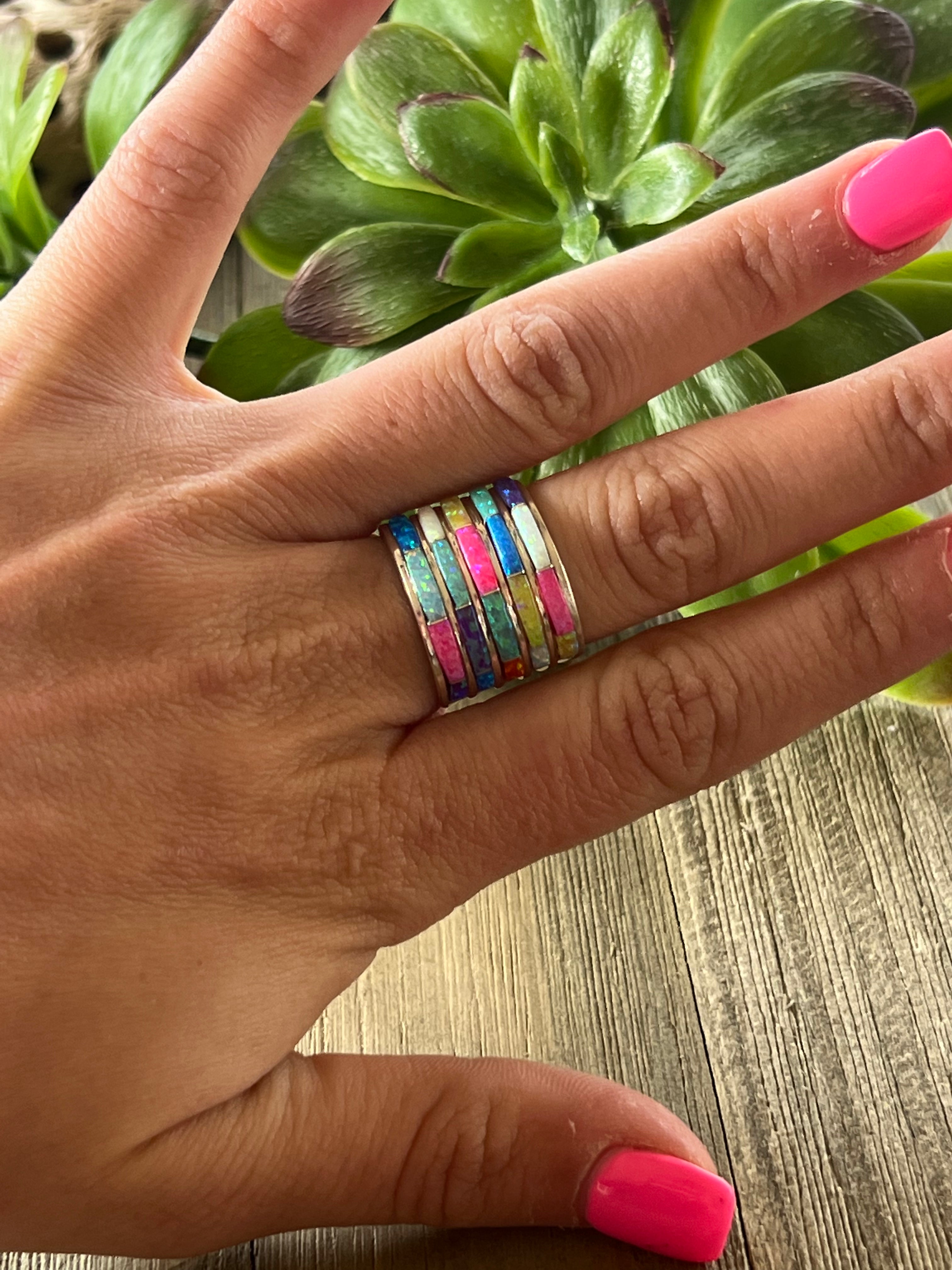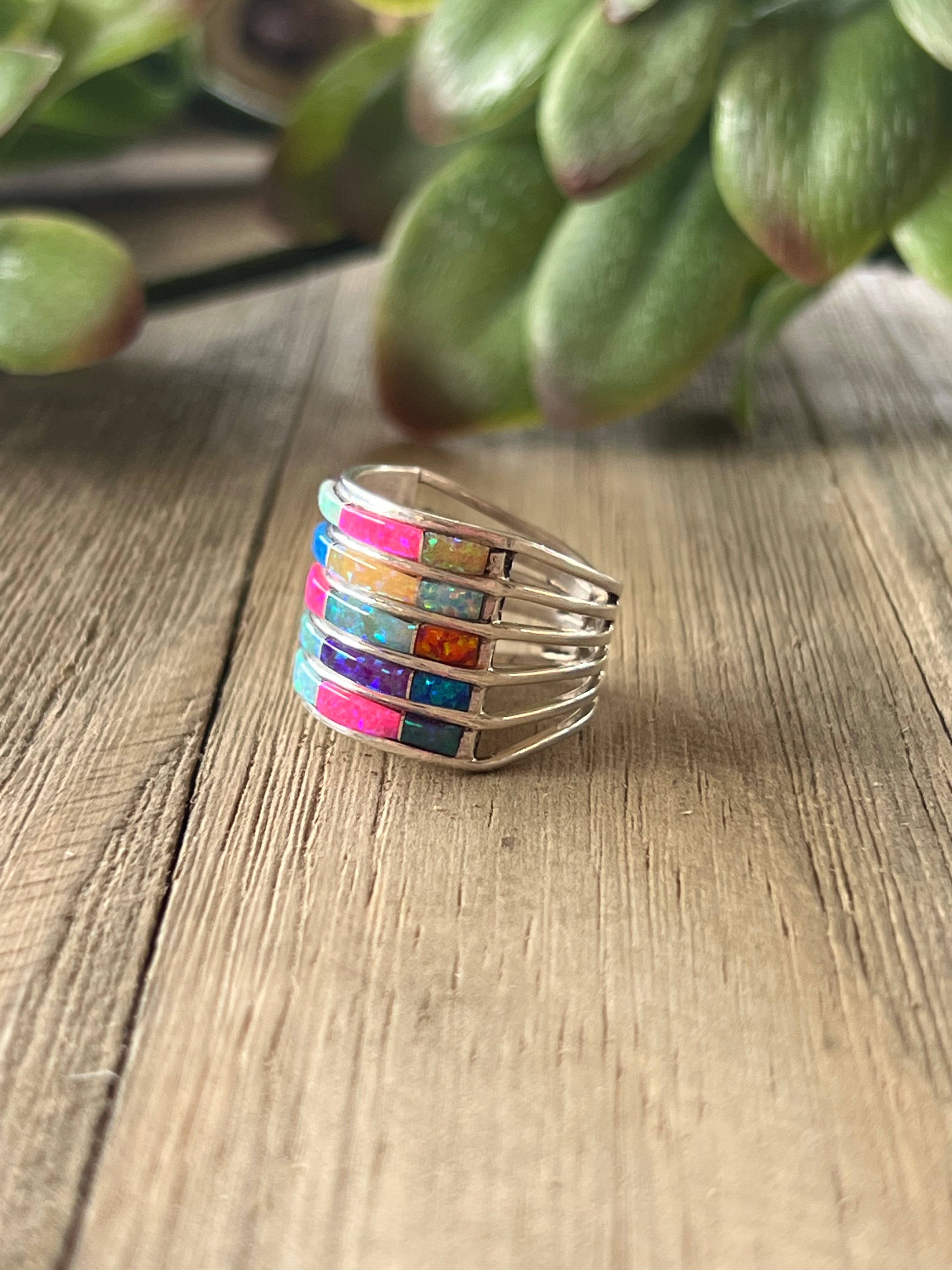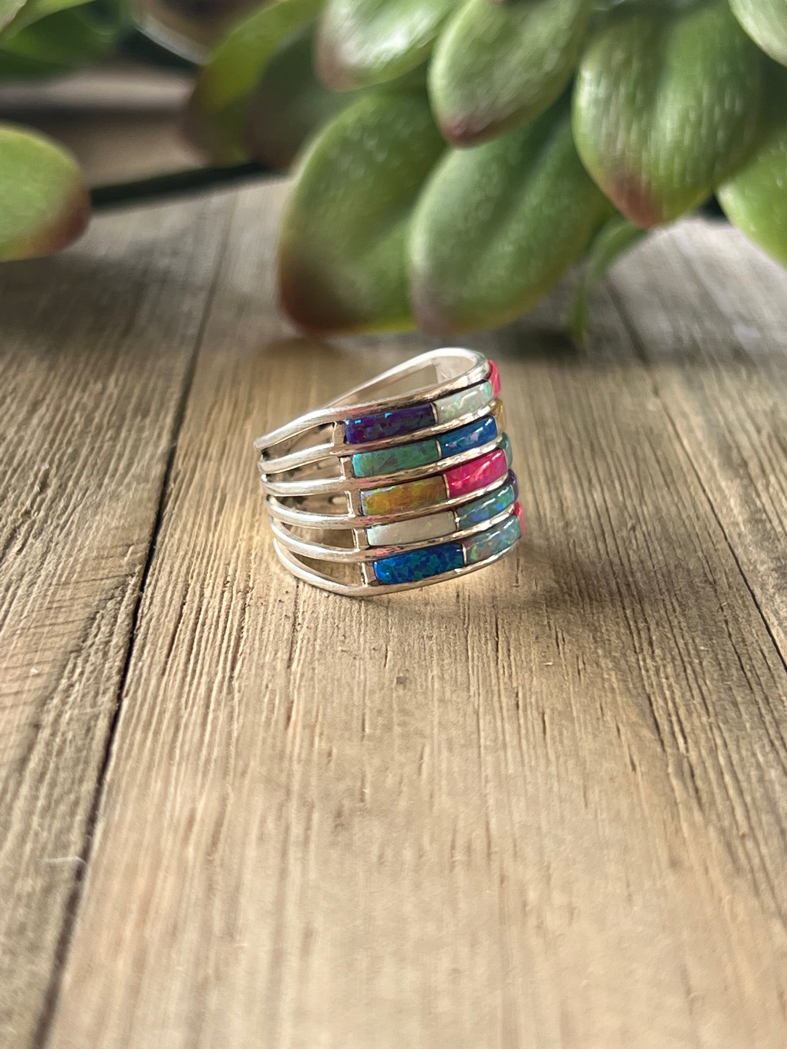 Zuni Made Multi Colored Opal (Man Made) & Sterling Silver Ring