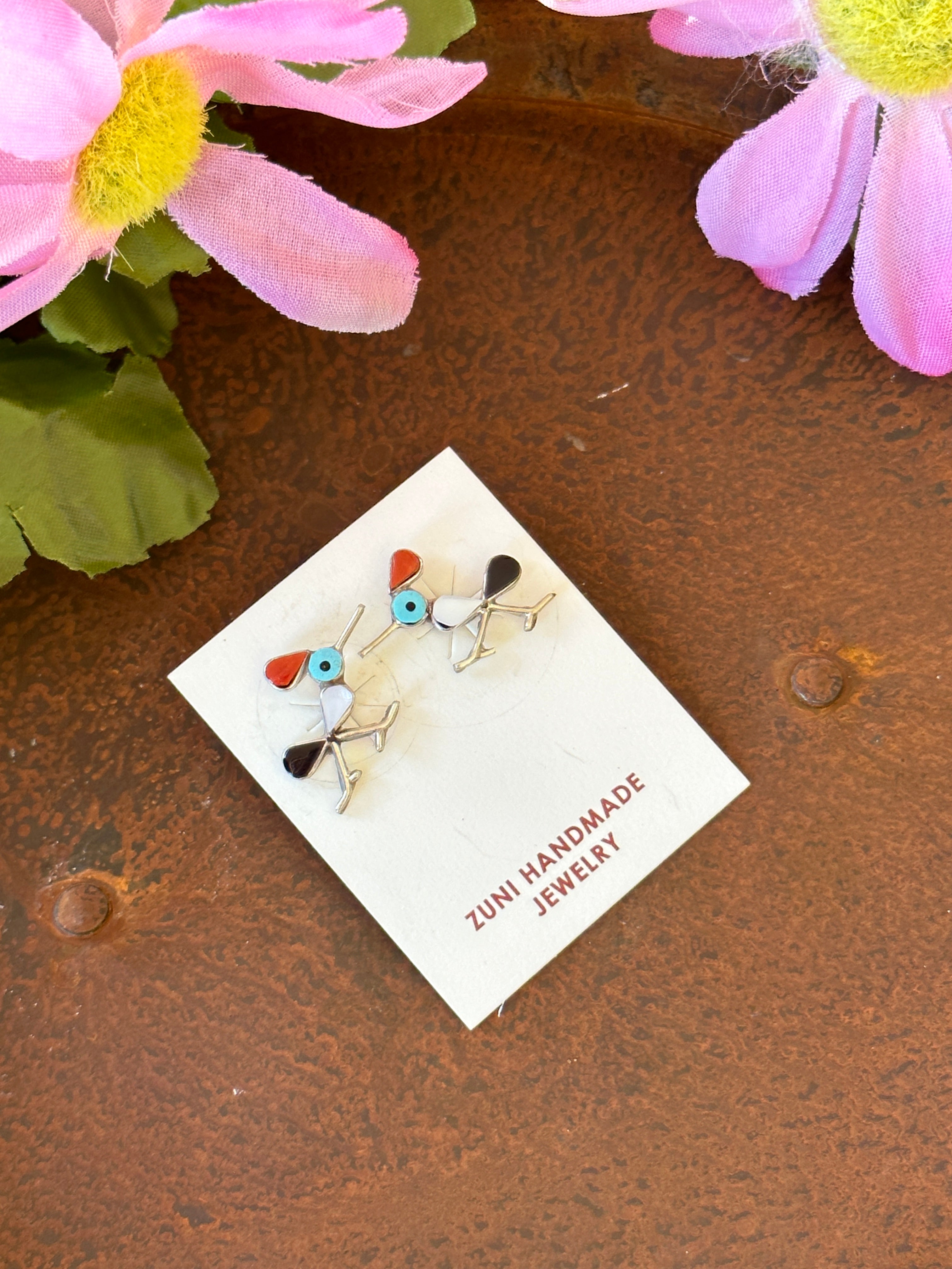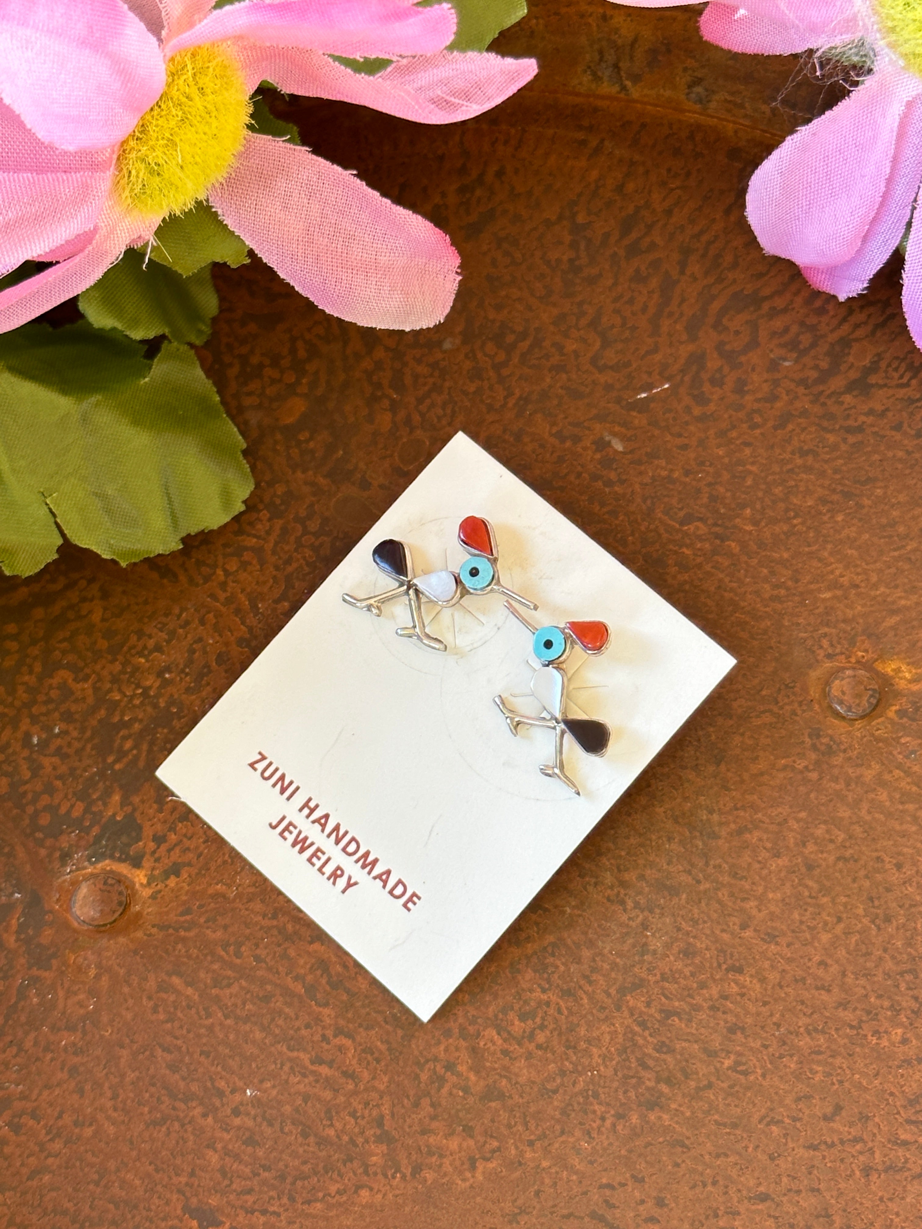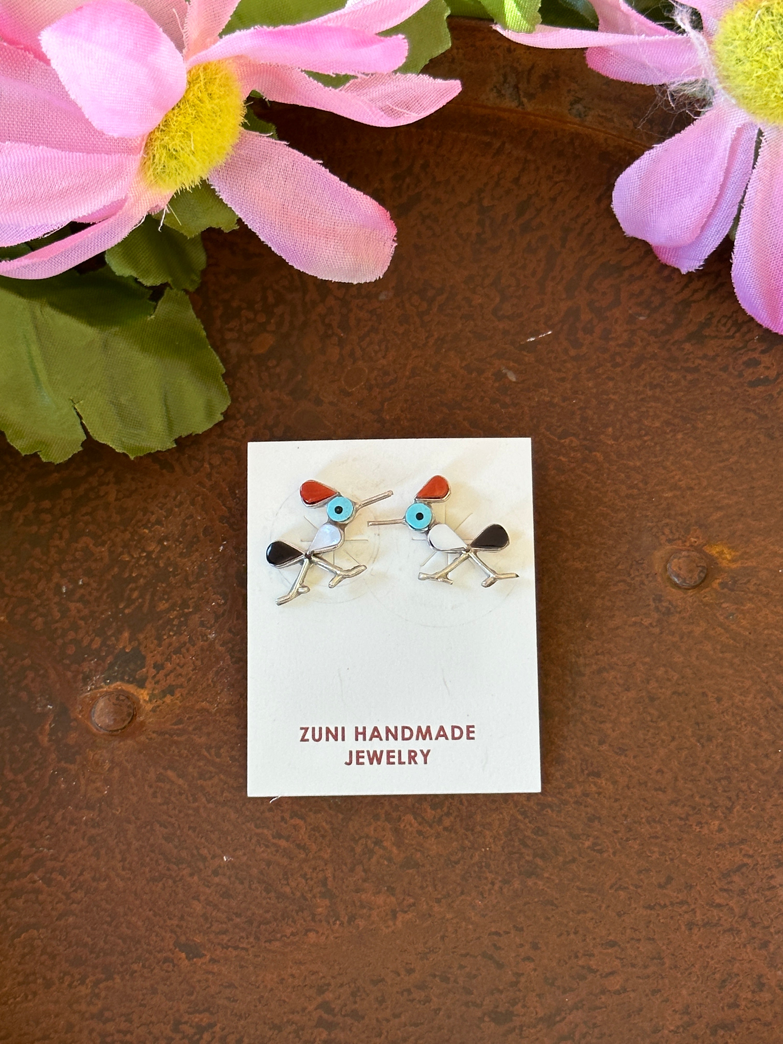 Zuni Made Multi Stone & Sterling Silver Inlay Post Earrings