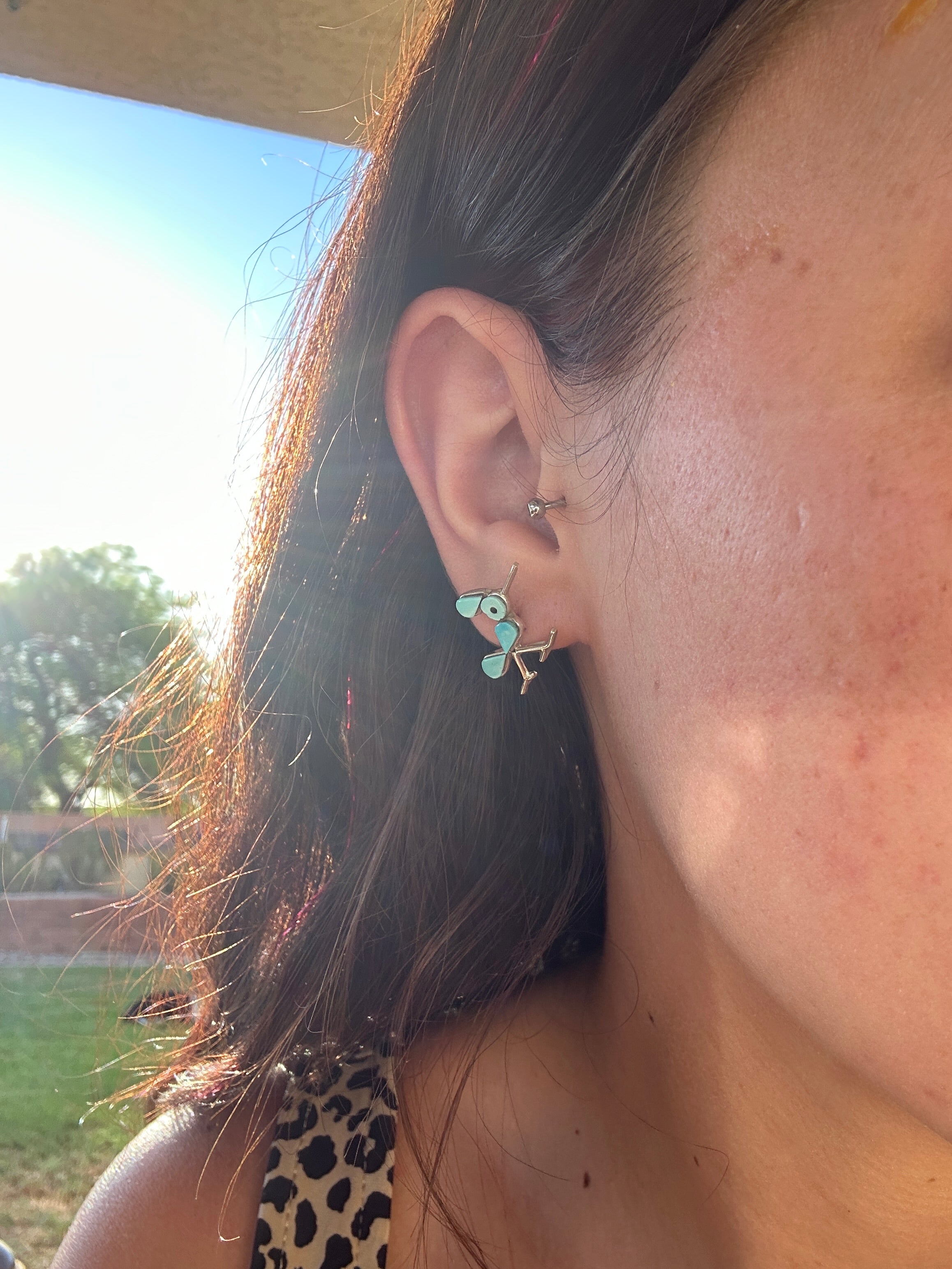 Zuni Made Multi Stone & Sterling Silver Inlay Post Earrings. It measures 5/8 of an inch long and 7/8 of an inch wide. Signed by artist and stamped sterling silver.