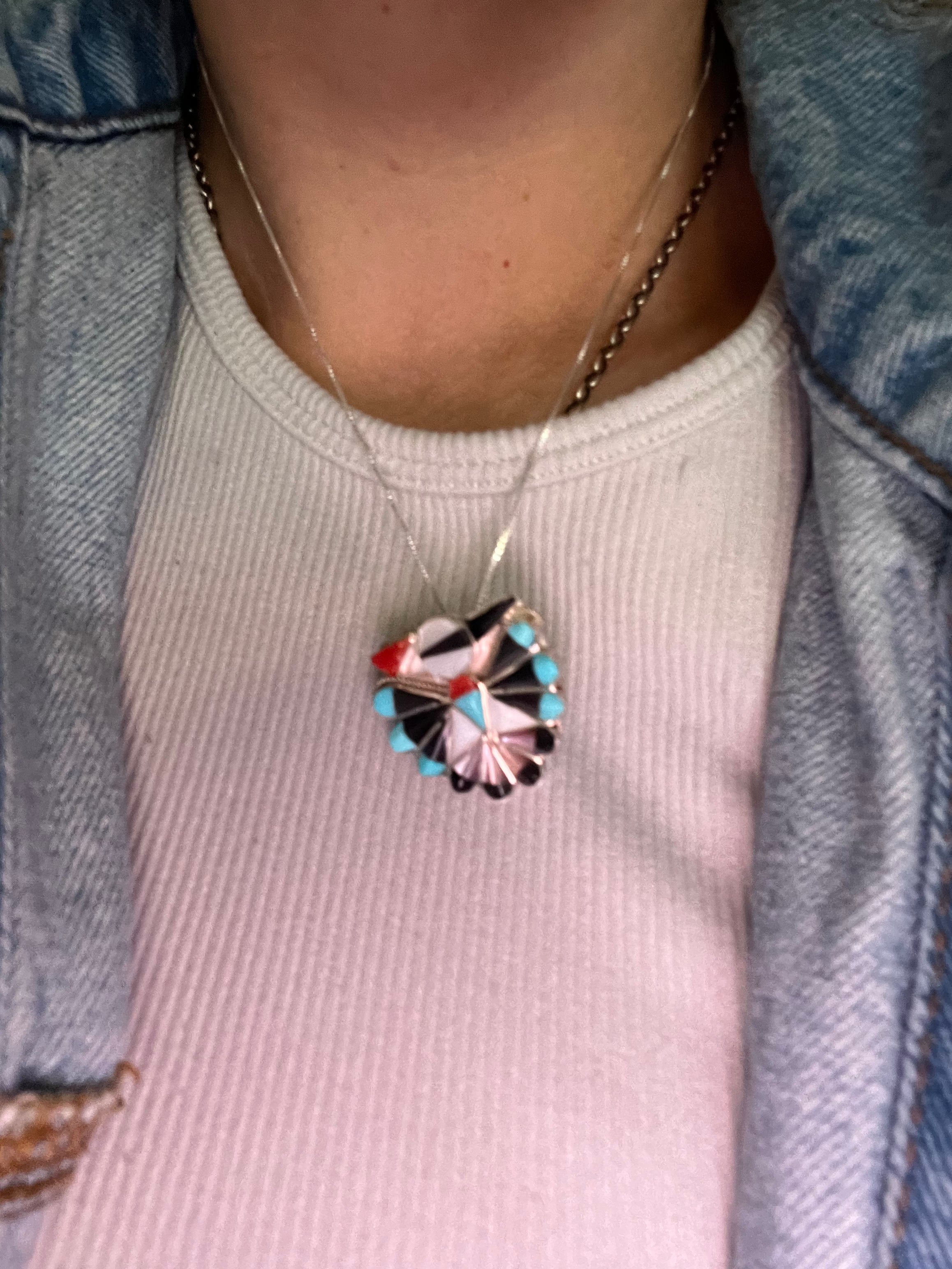 Zuni Made Multi Stone & Sterling Silver Inlay Thunderbird Pendant