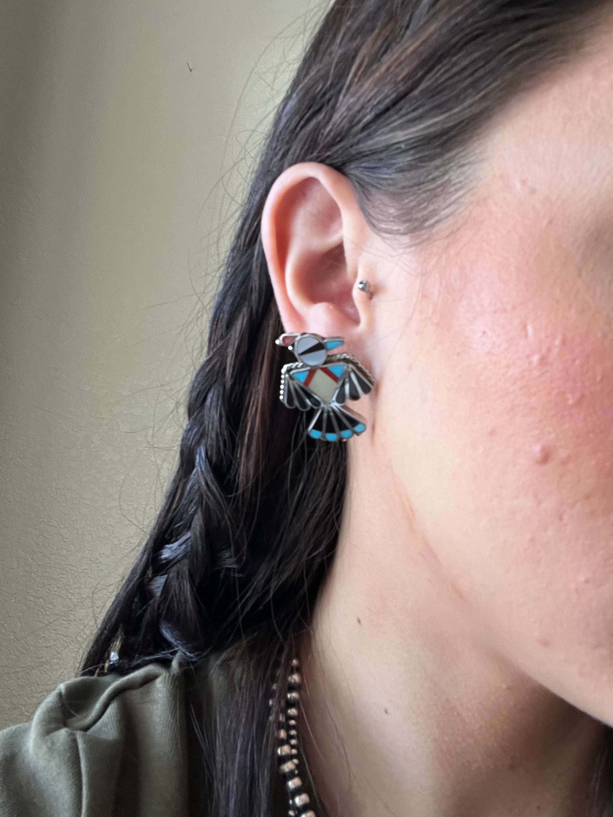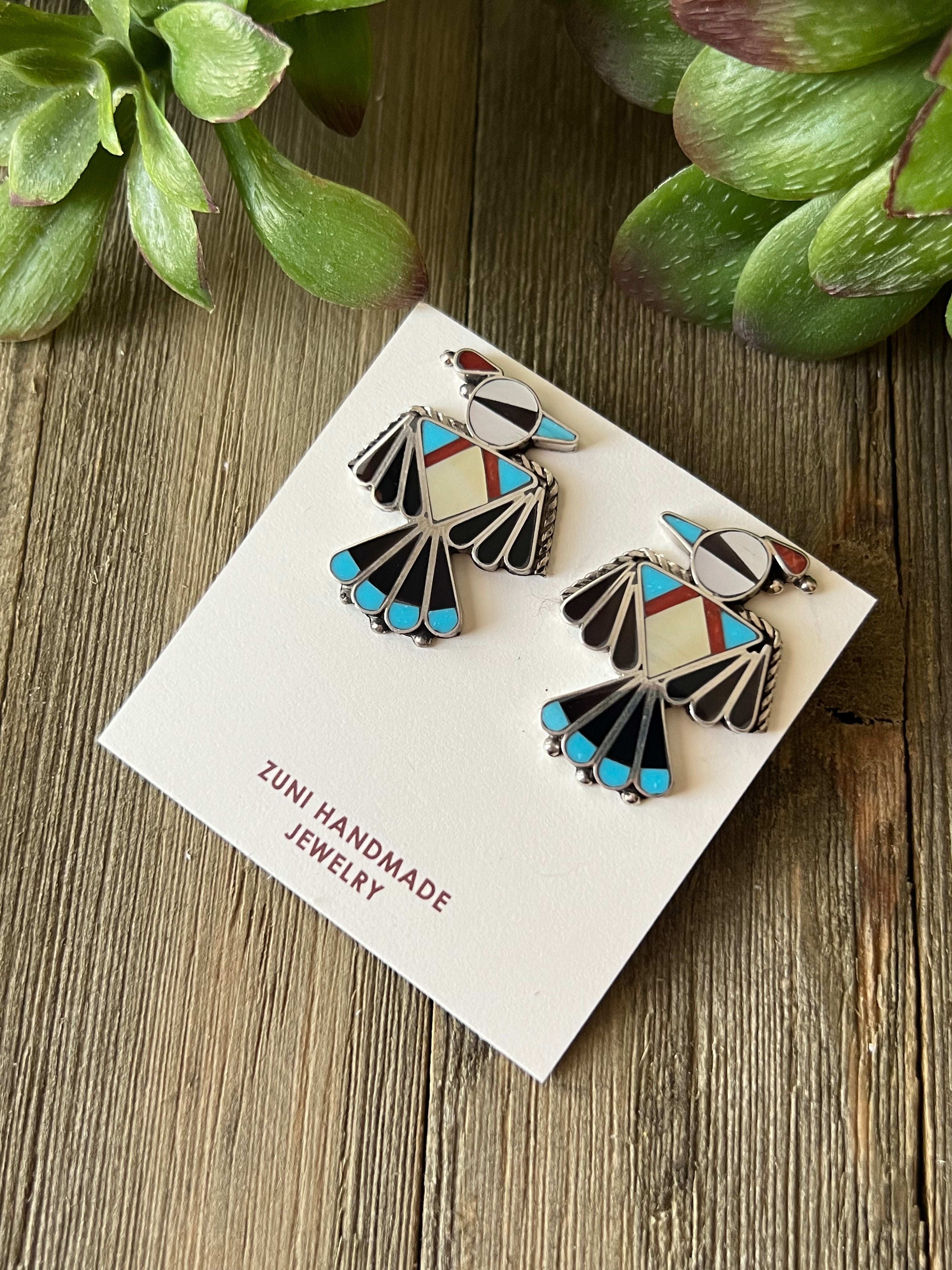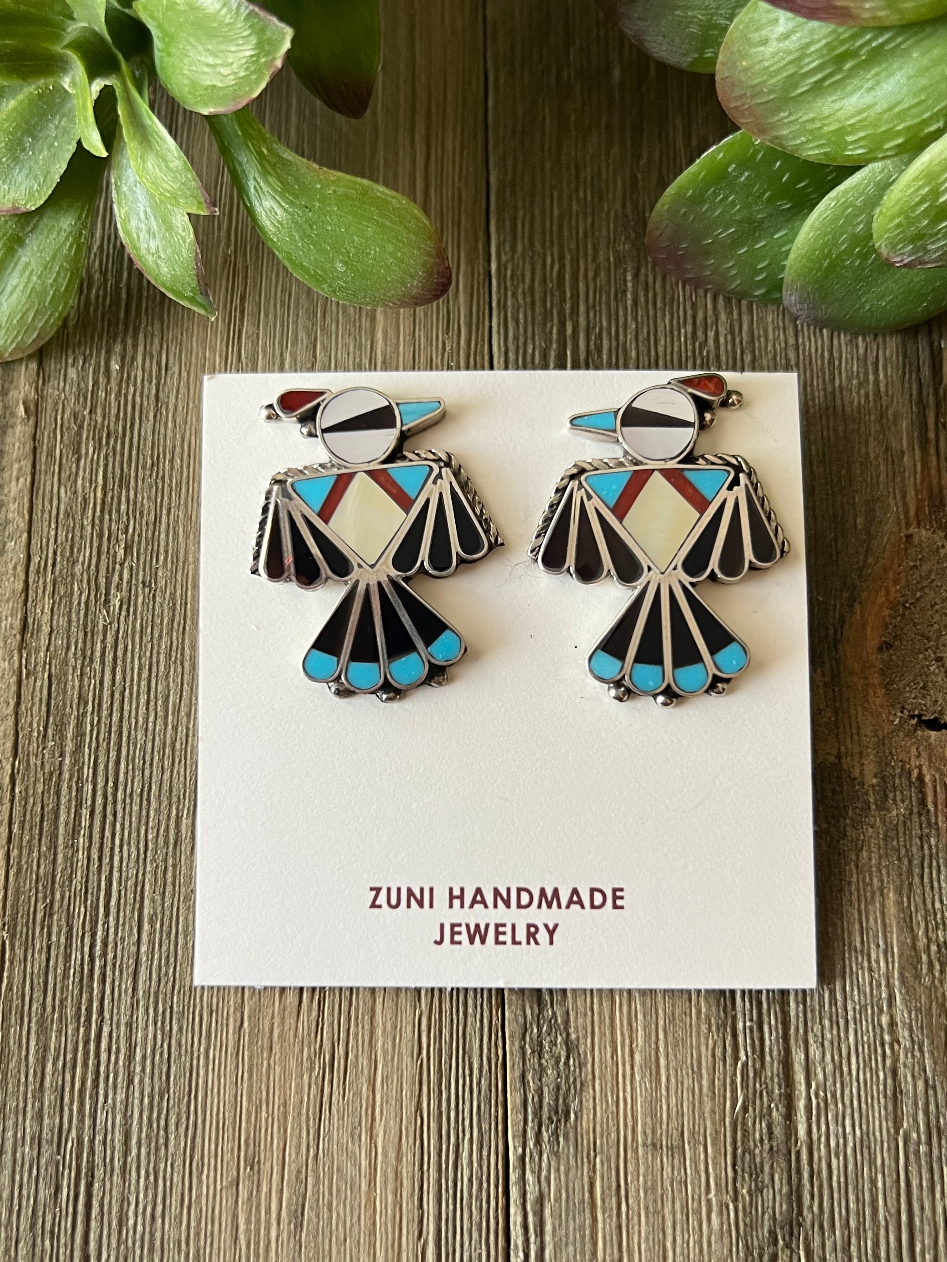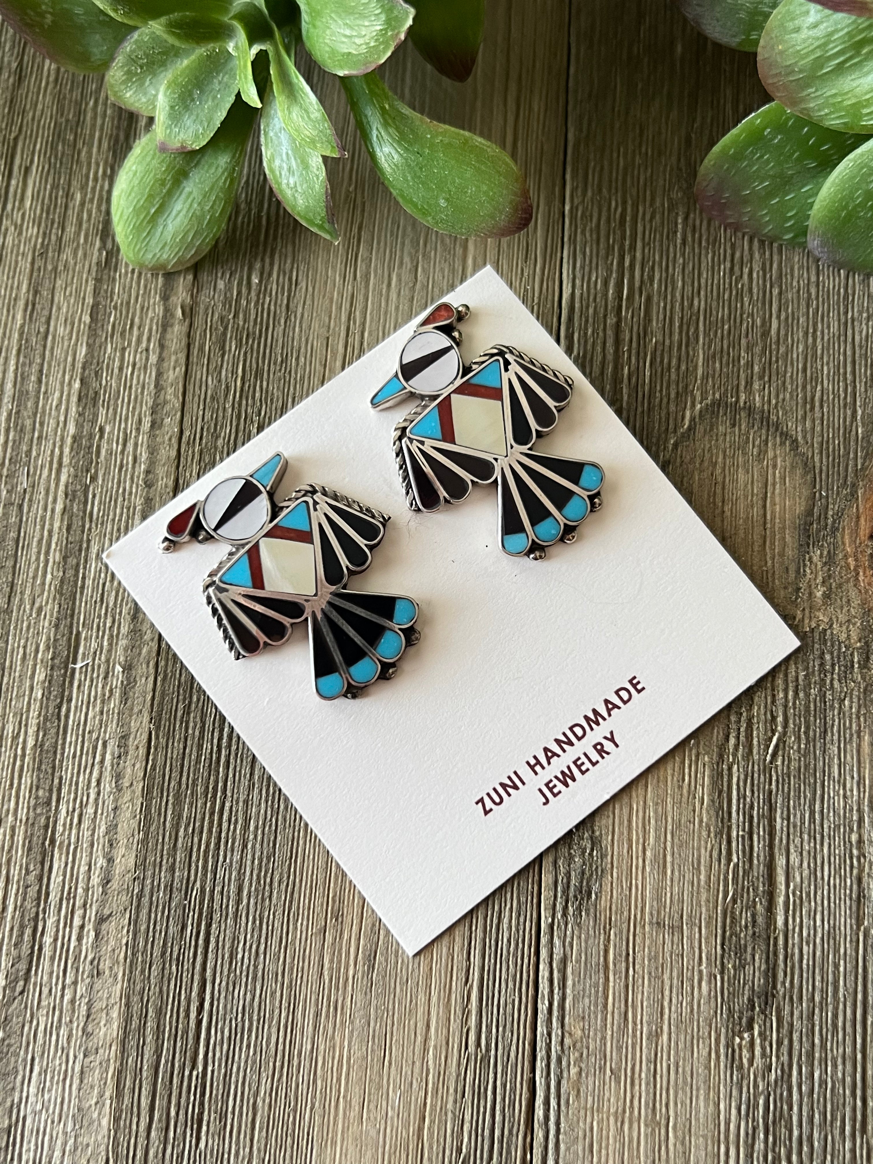 Zuni Made Multi Stone & Sterling Silver Inlay Thunderbird Post Earrings