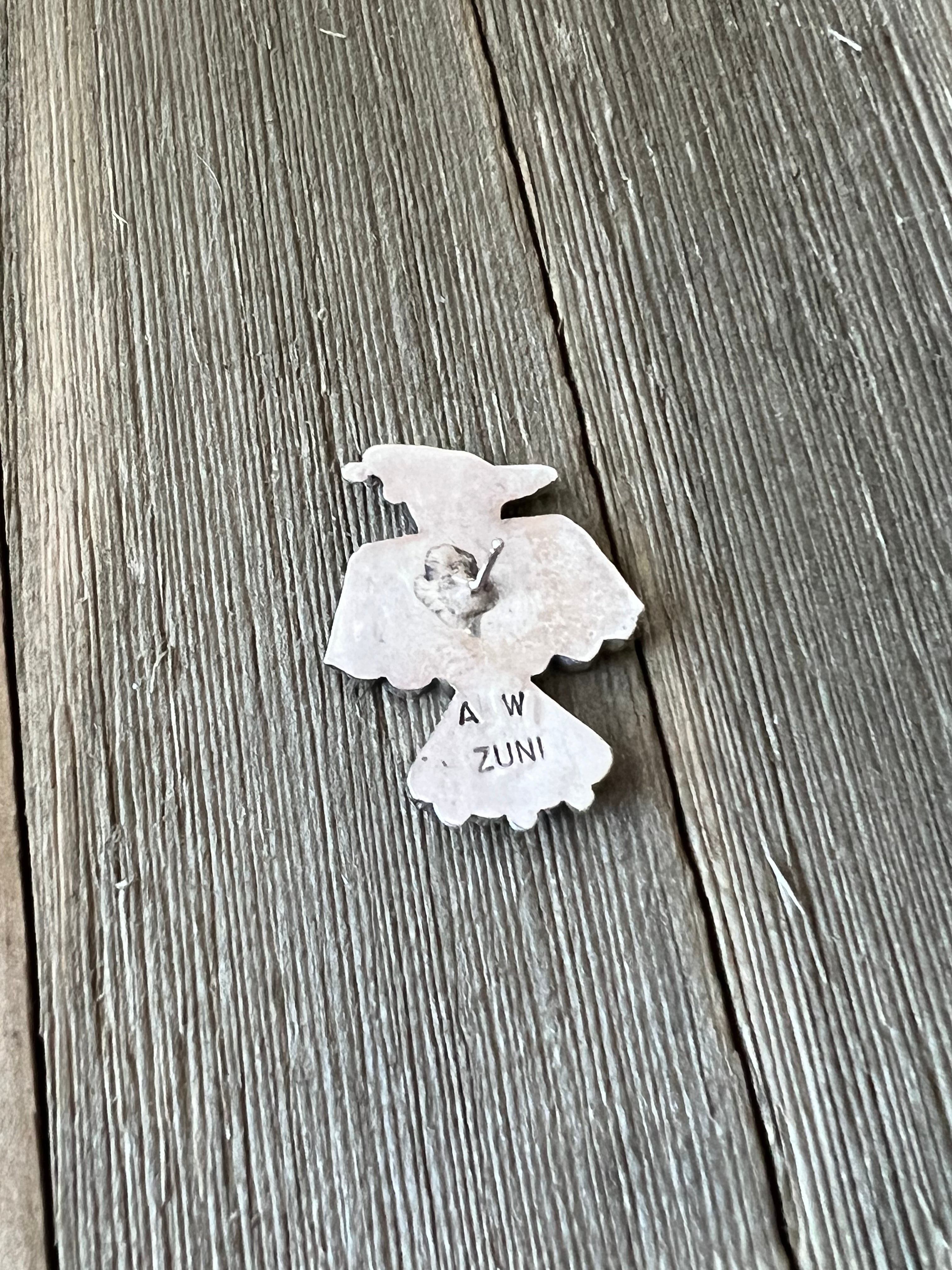 Zuni Made Multi Stone & Sterling Silver Inlay Thunderbird Post Earrings. It measures 1 1/4 inches long and 1 inch wide. Signed by artist and stamped sterling silver.
