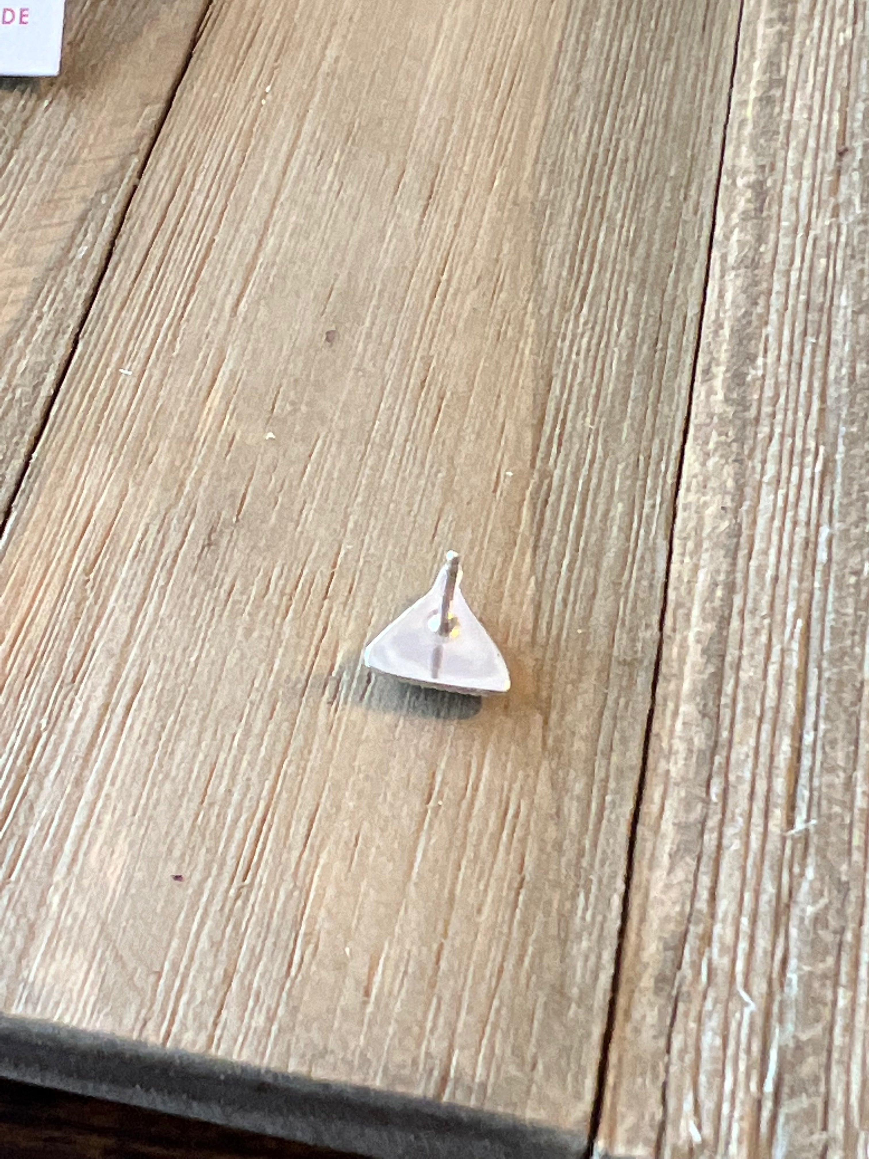 Zuni Made Multi Stone & Sterling Silver Triangle Post Earrings. It measures 3/8 of an inch long and 3/8 of an inch wide.