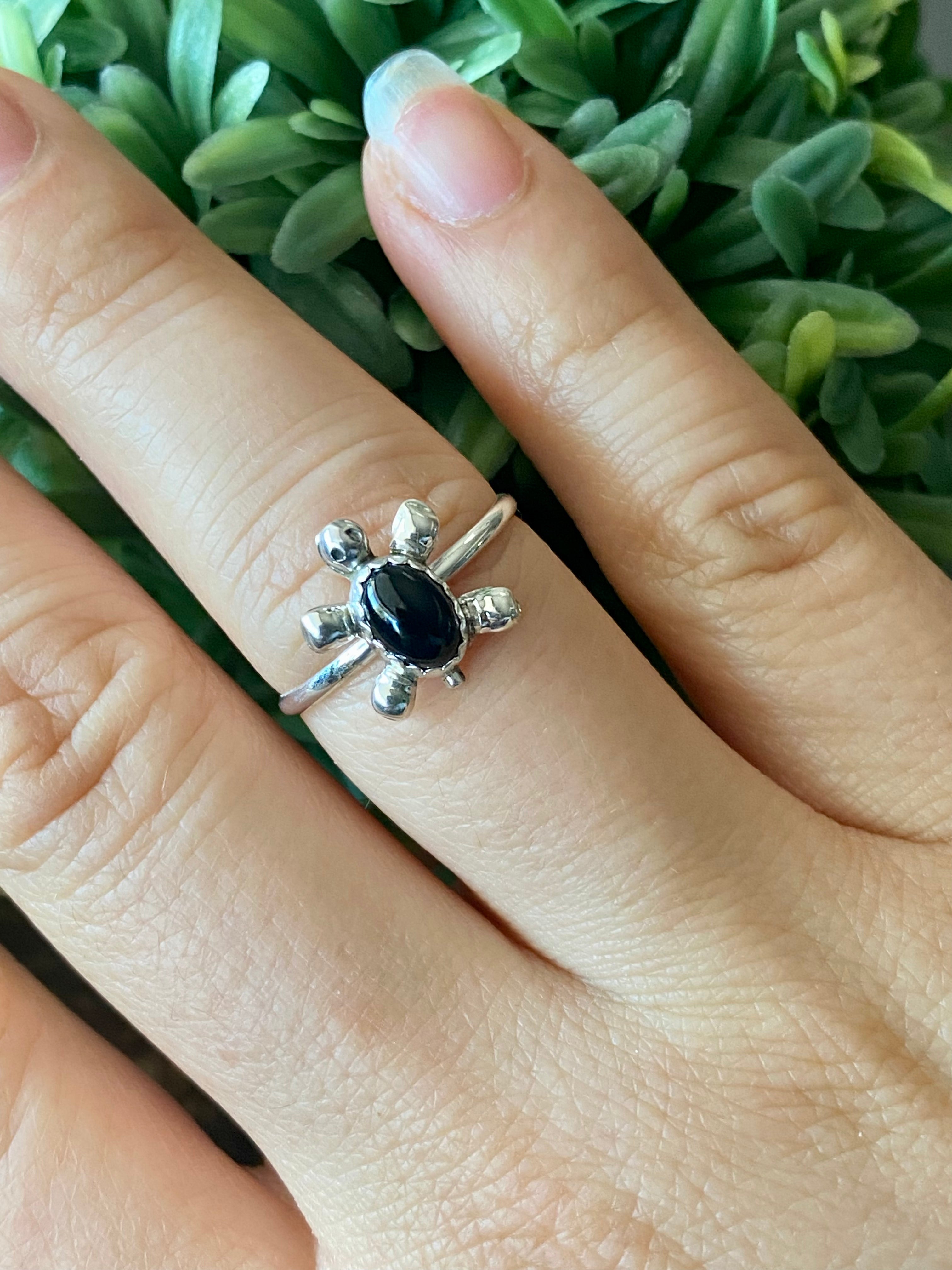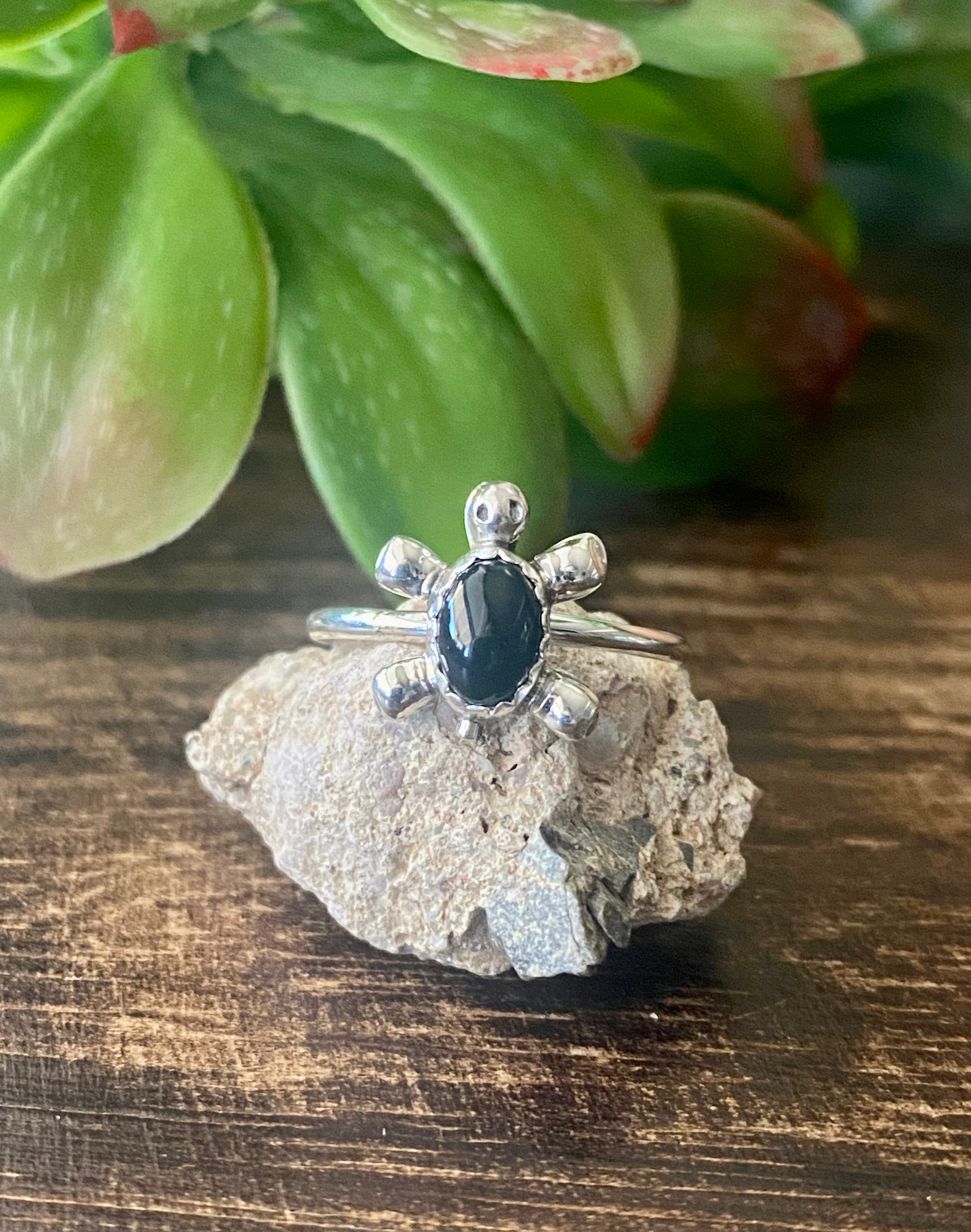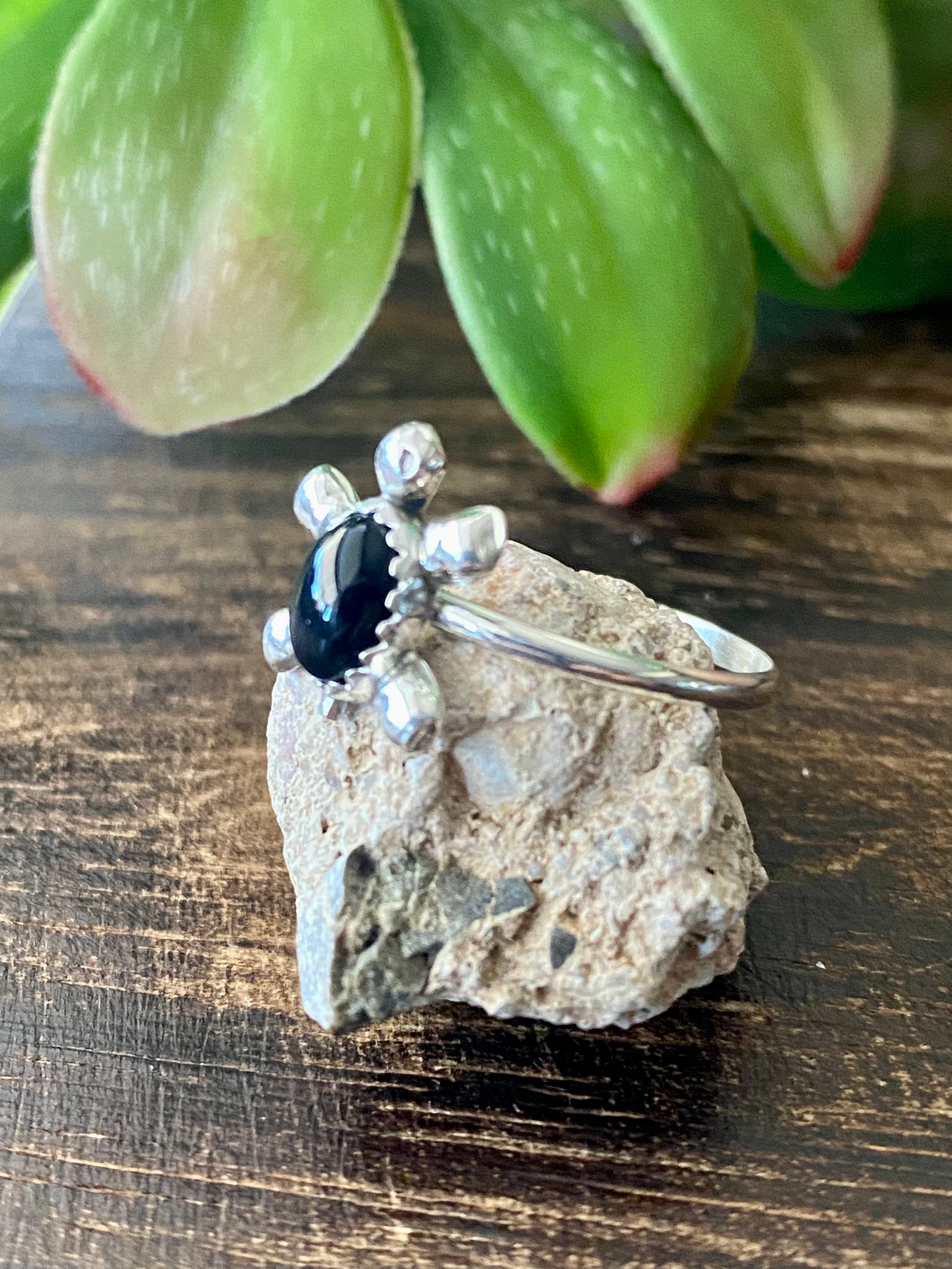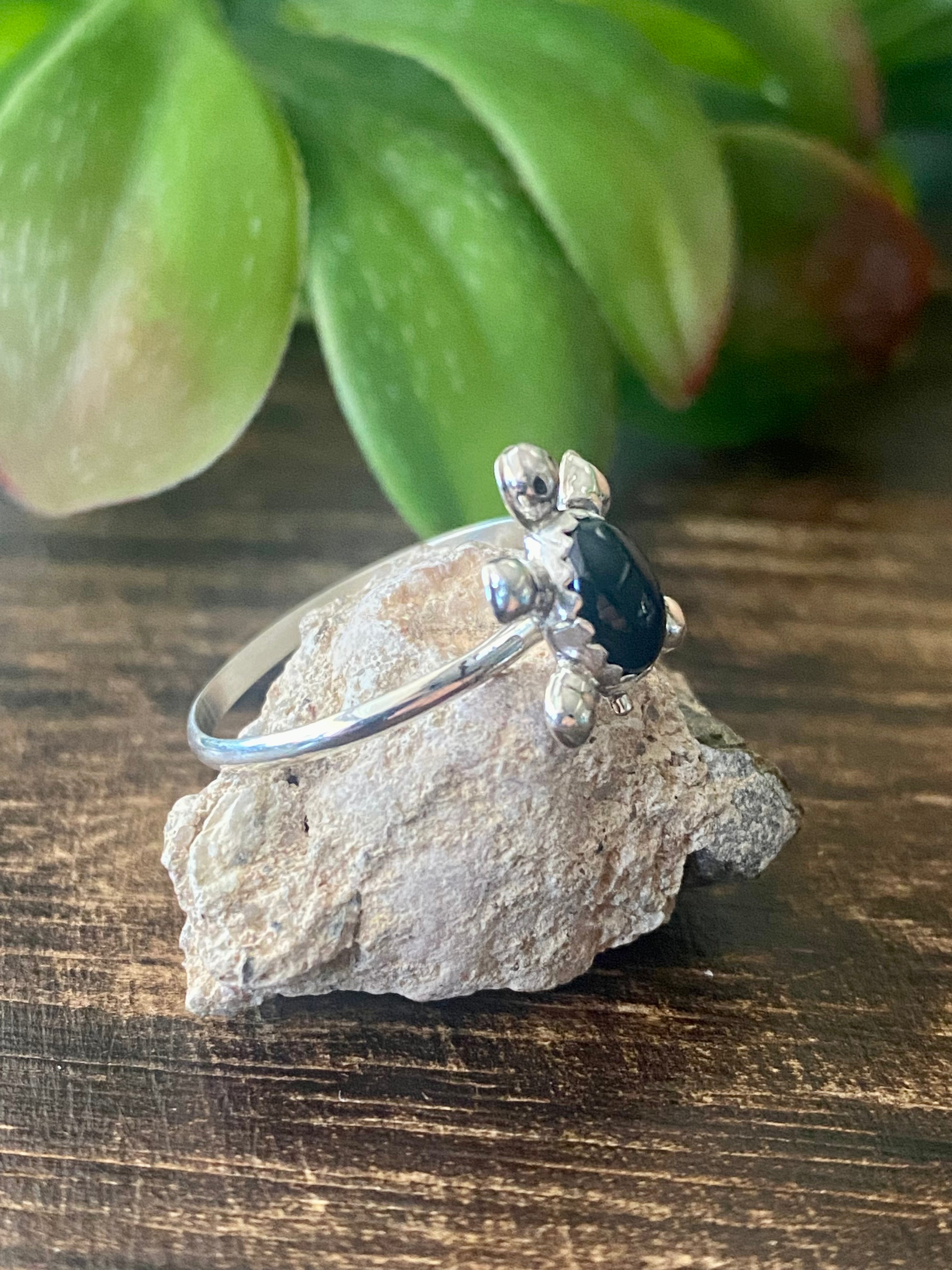 Zuni Made Onyx & Sterling Silver Turtle Ring Size 9.25