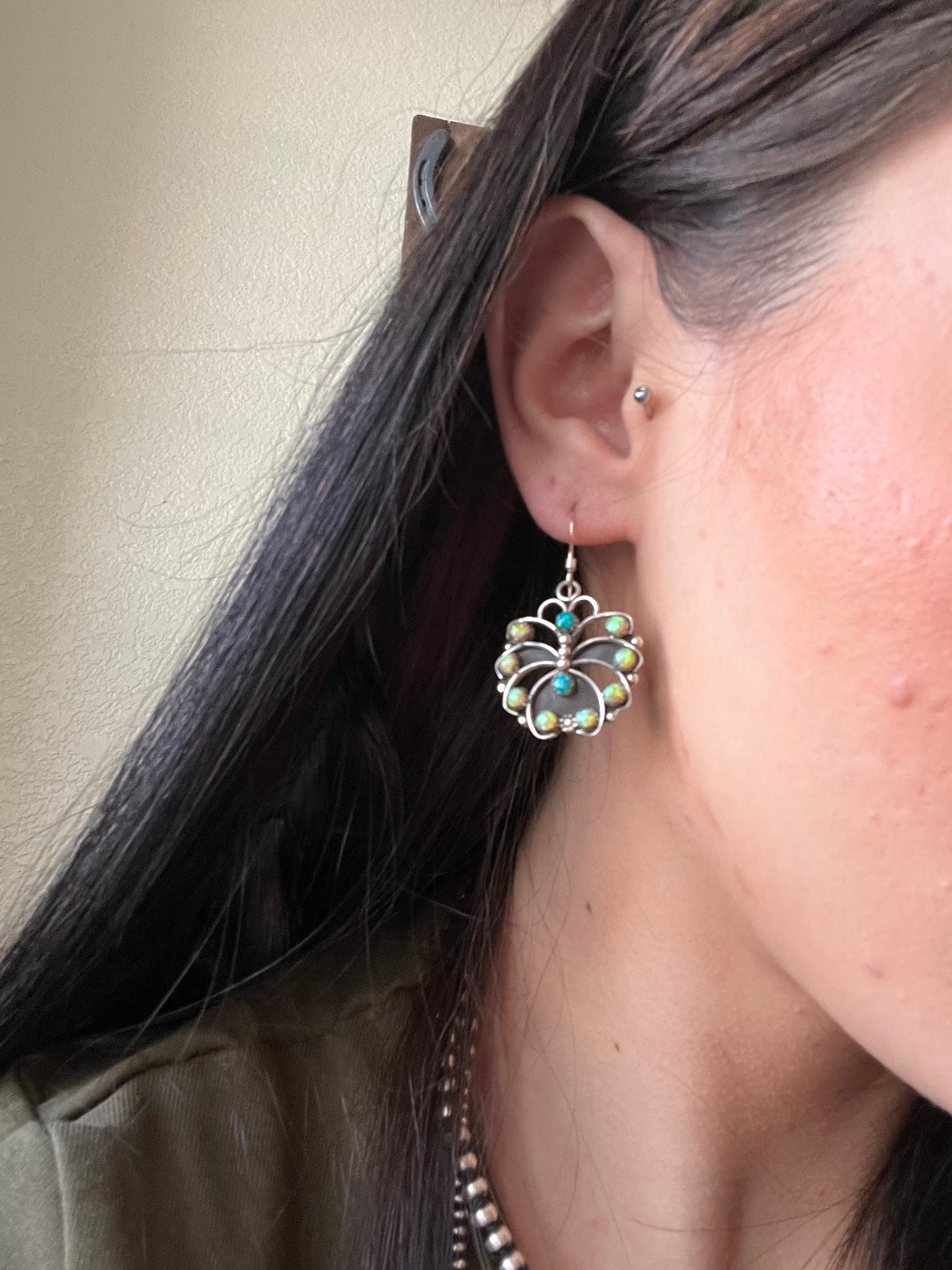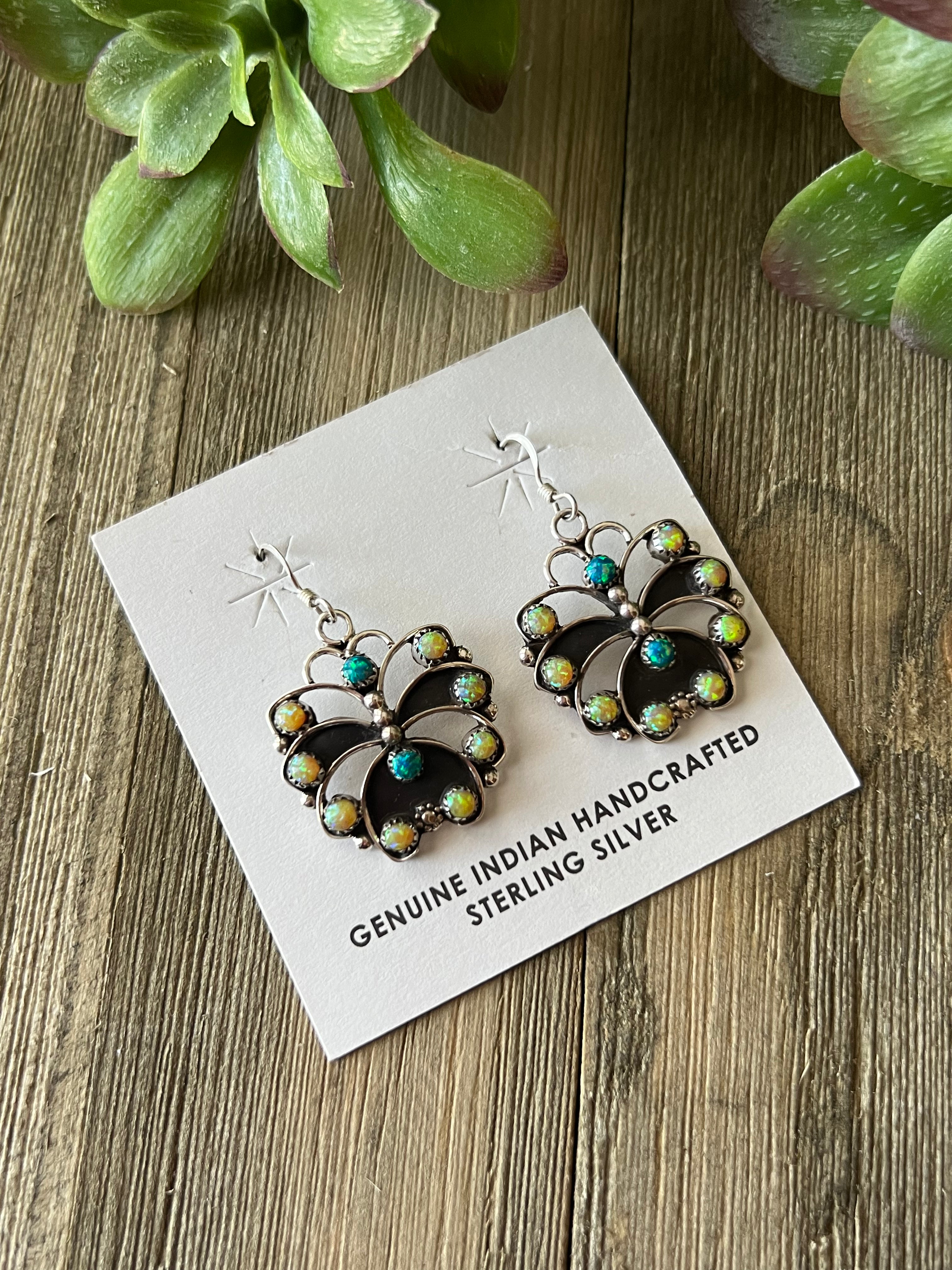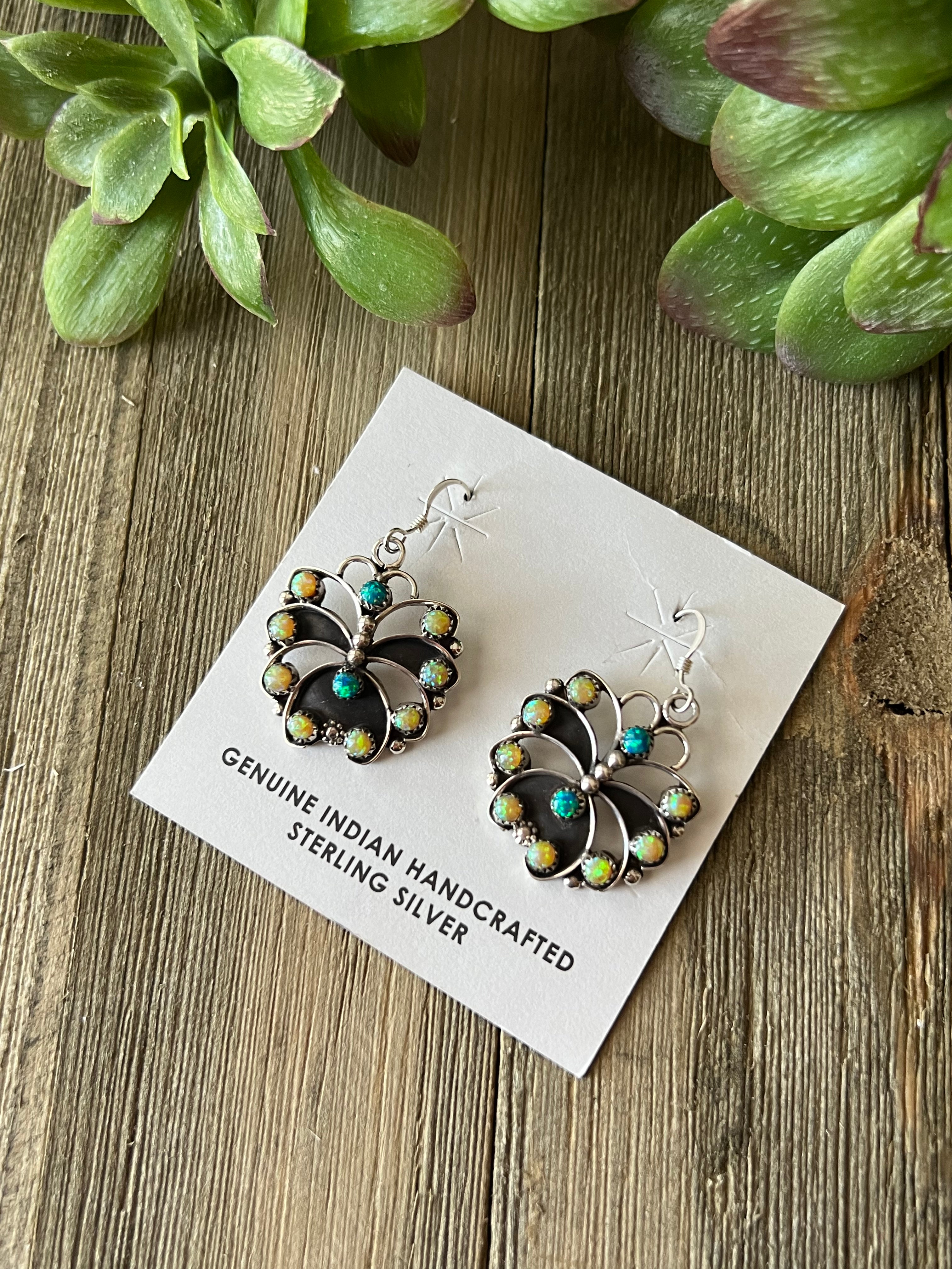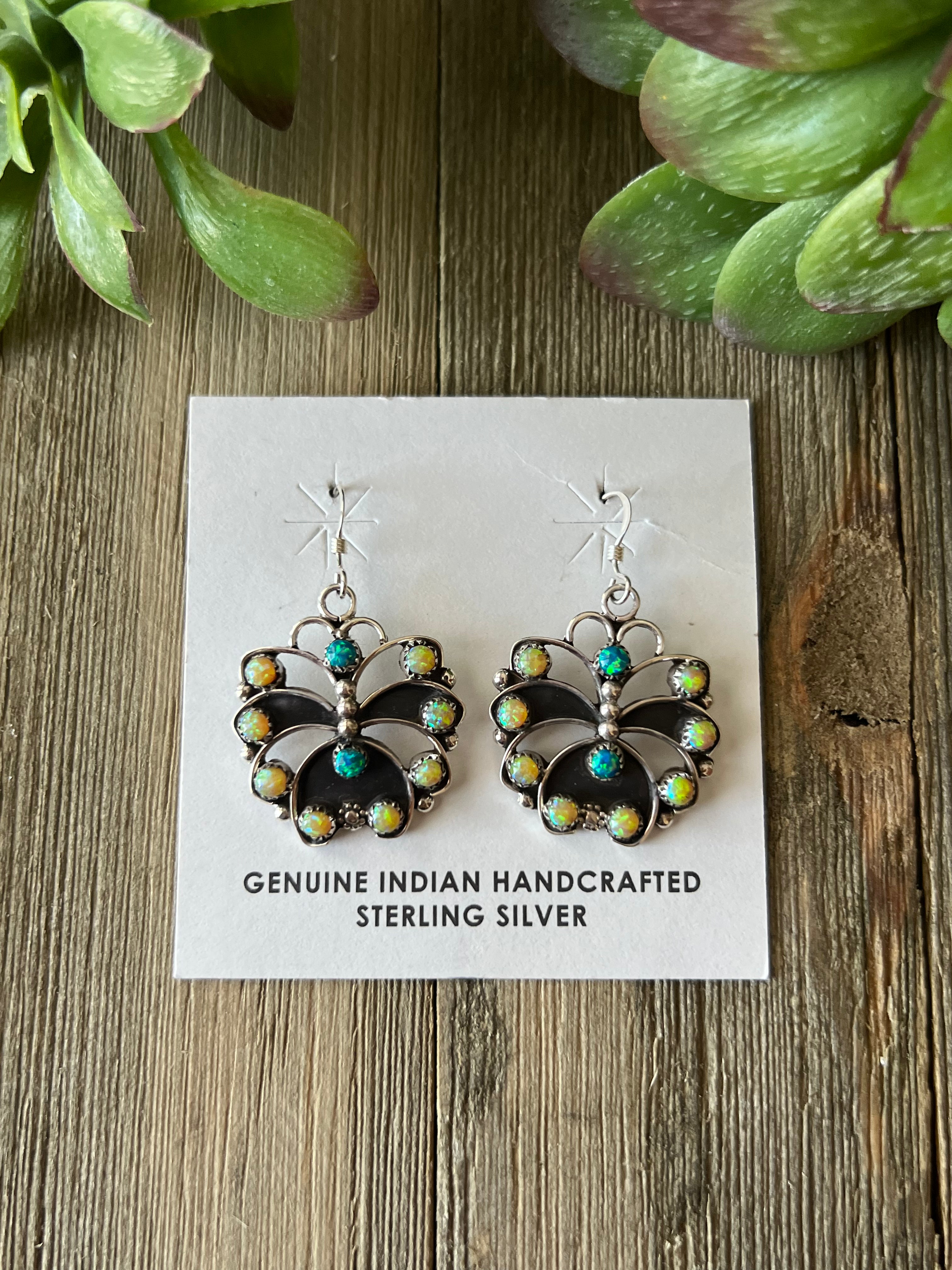 Zuni Made Opal (Man Made) & Sterling Silver Dangle Earrings