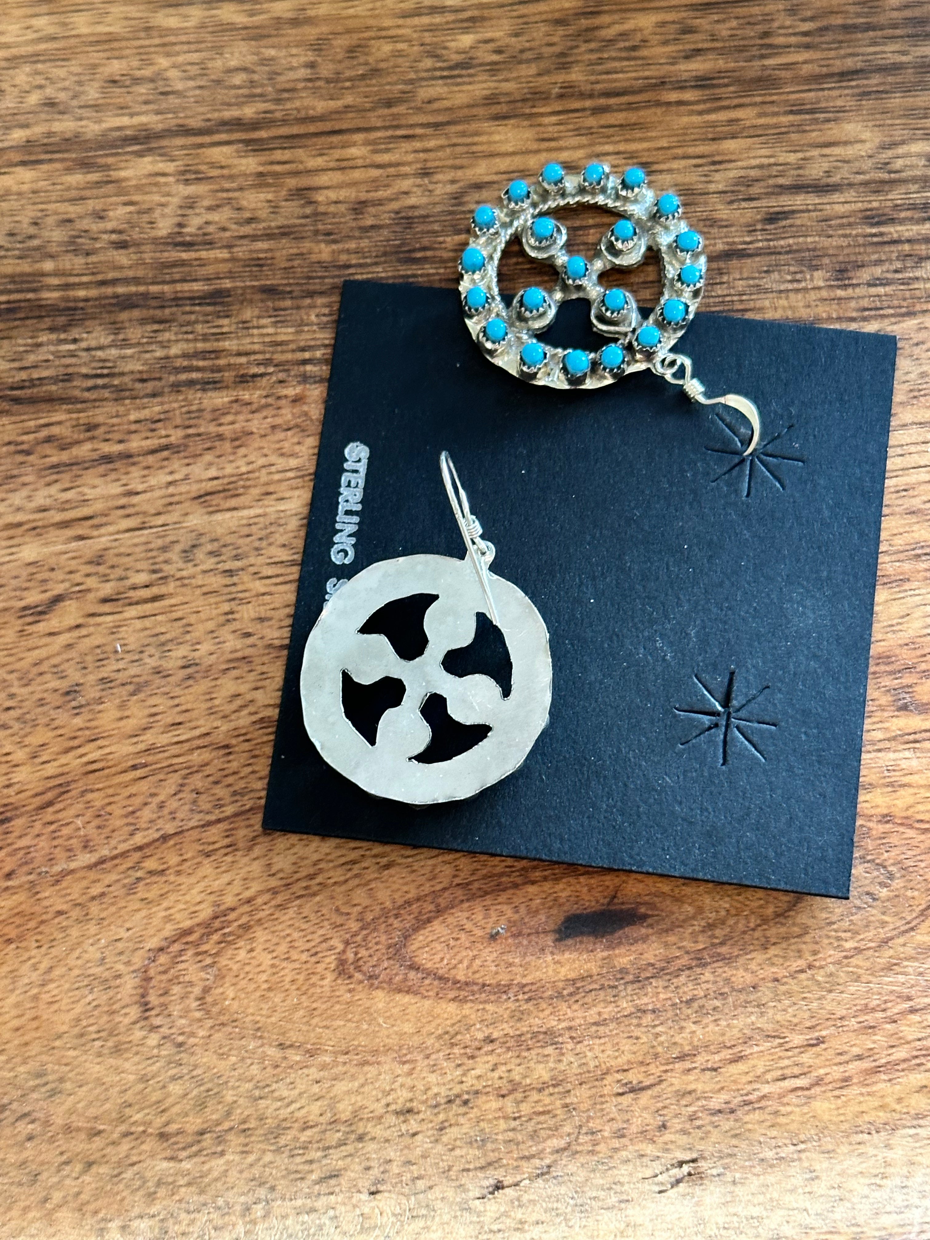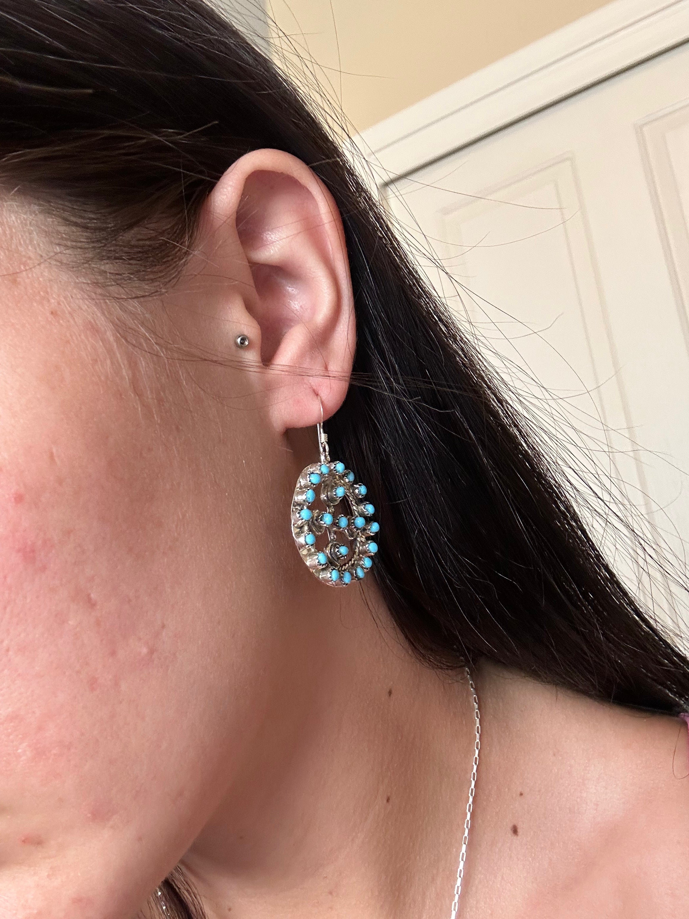 Zuni Made Turquoise & Sterling Silver Cluster Dangle Earrings
