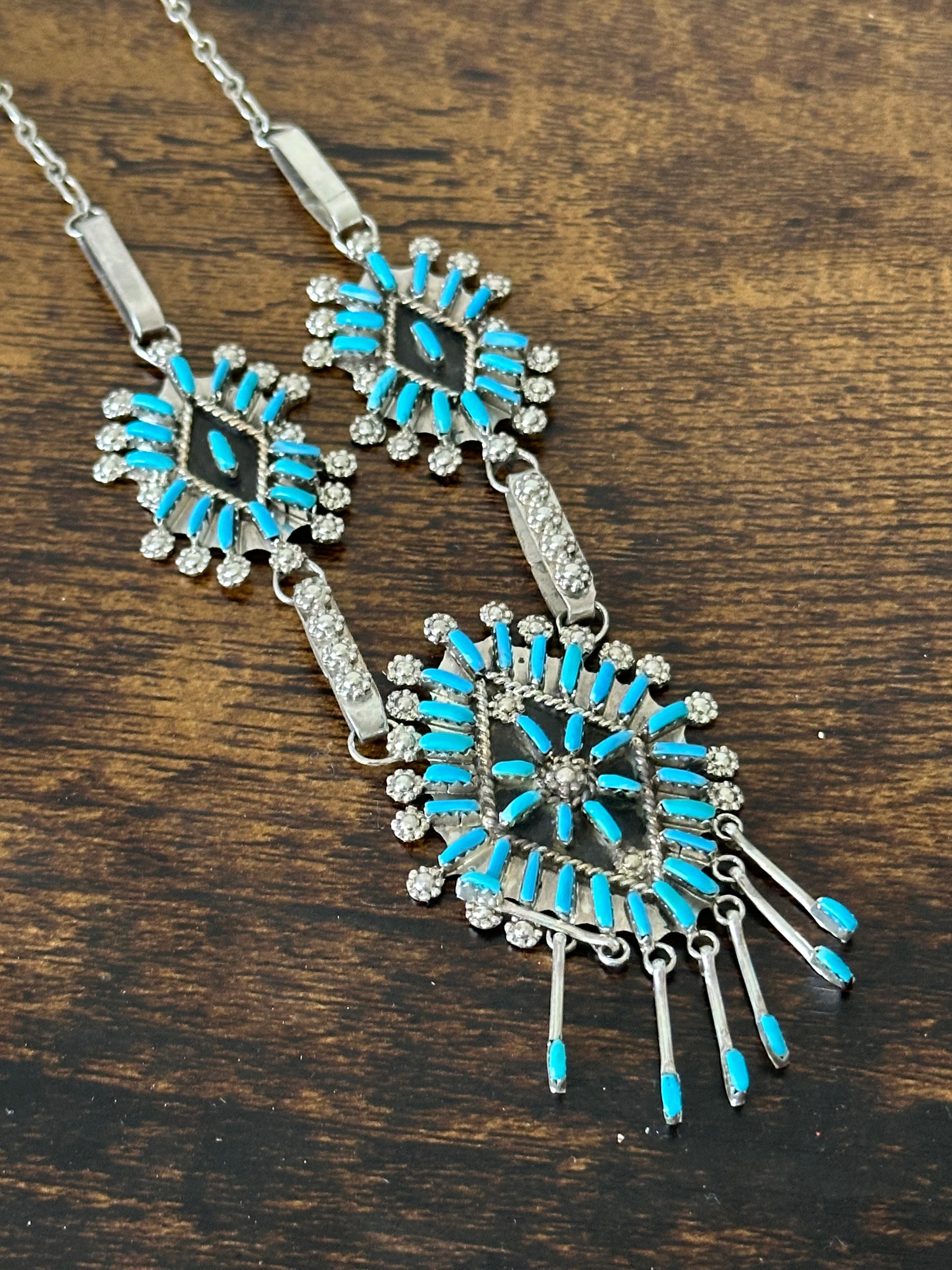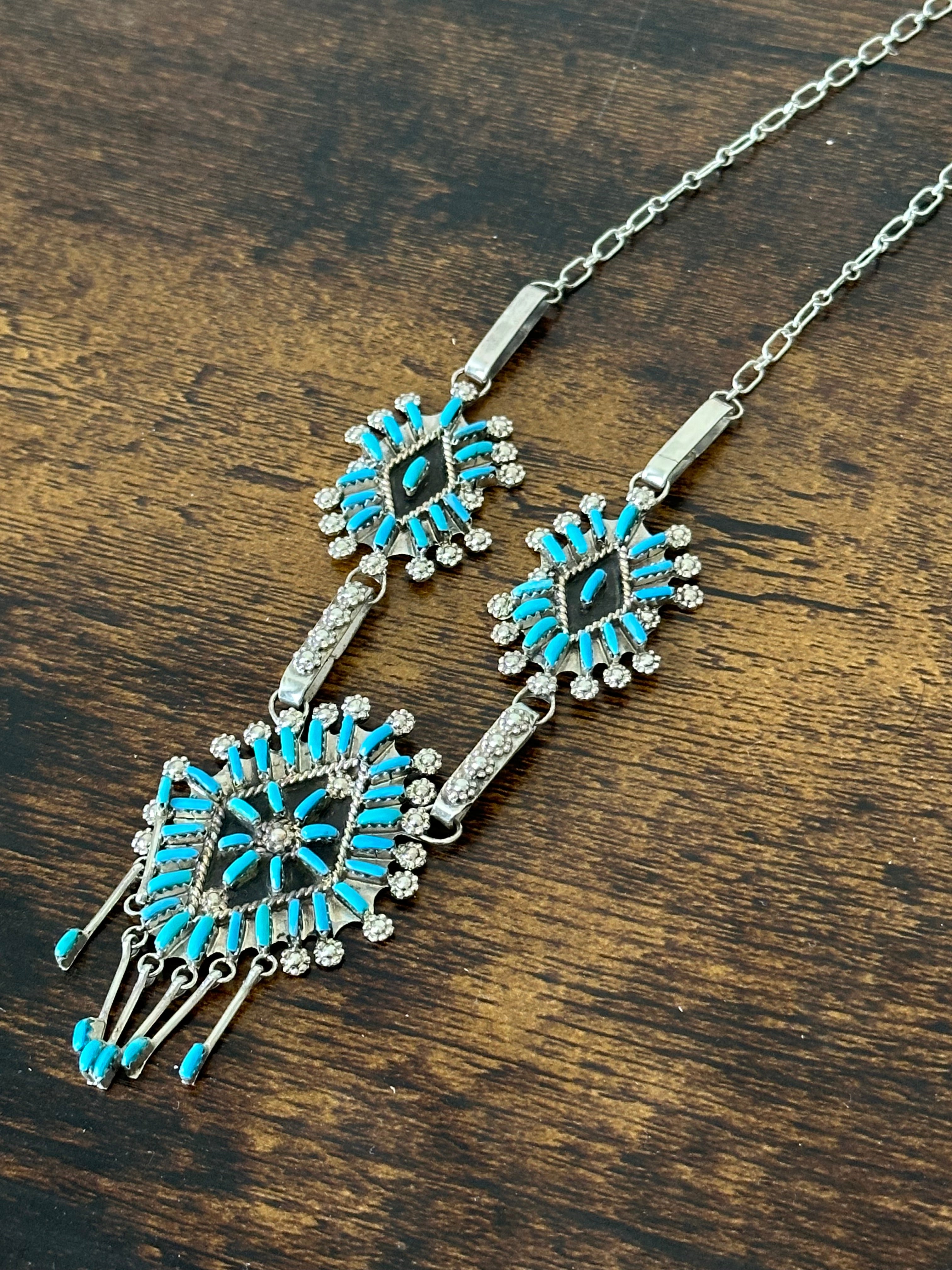 Zuni Made Turquoise & Sterling Silver Needlepoint Necklace Set