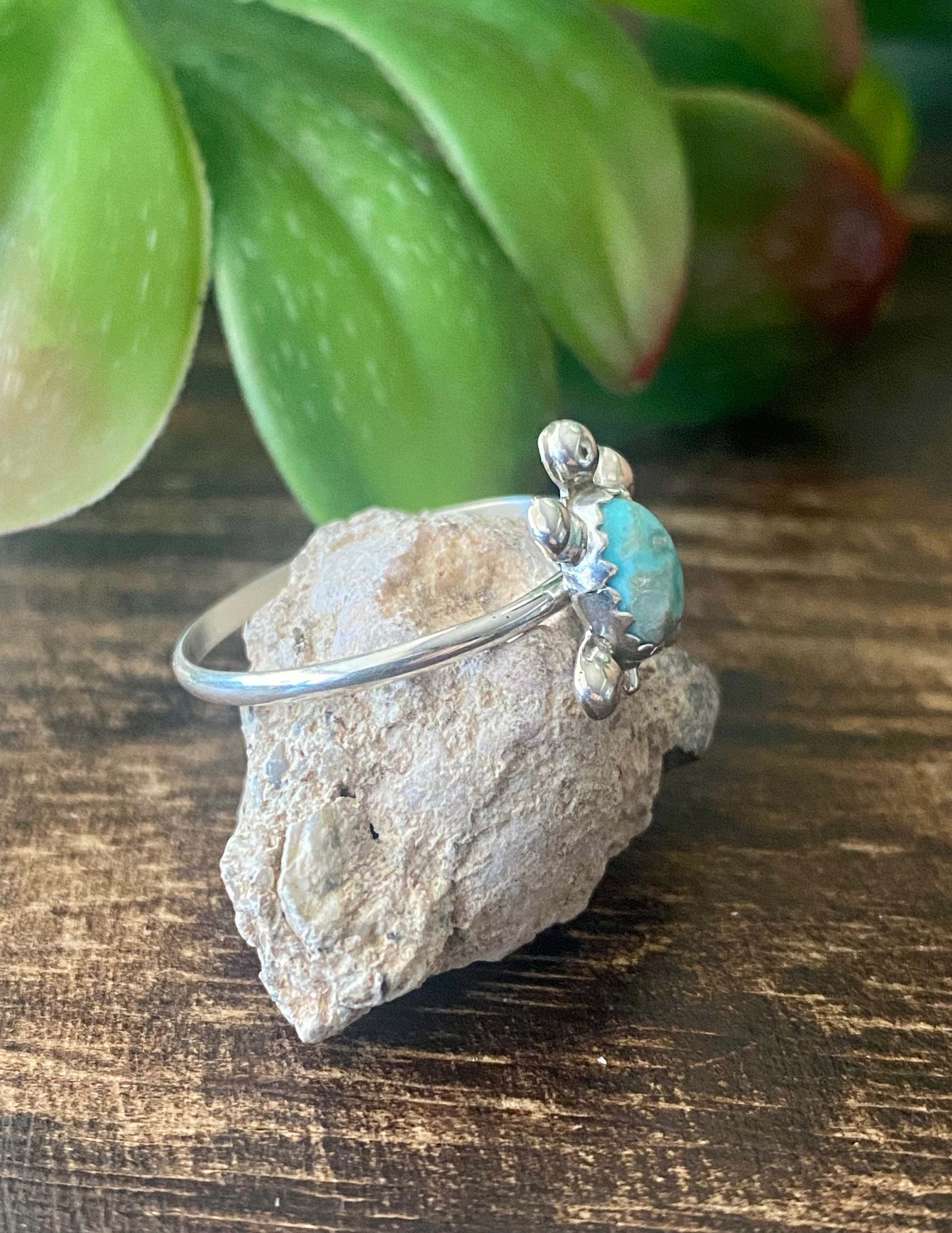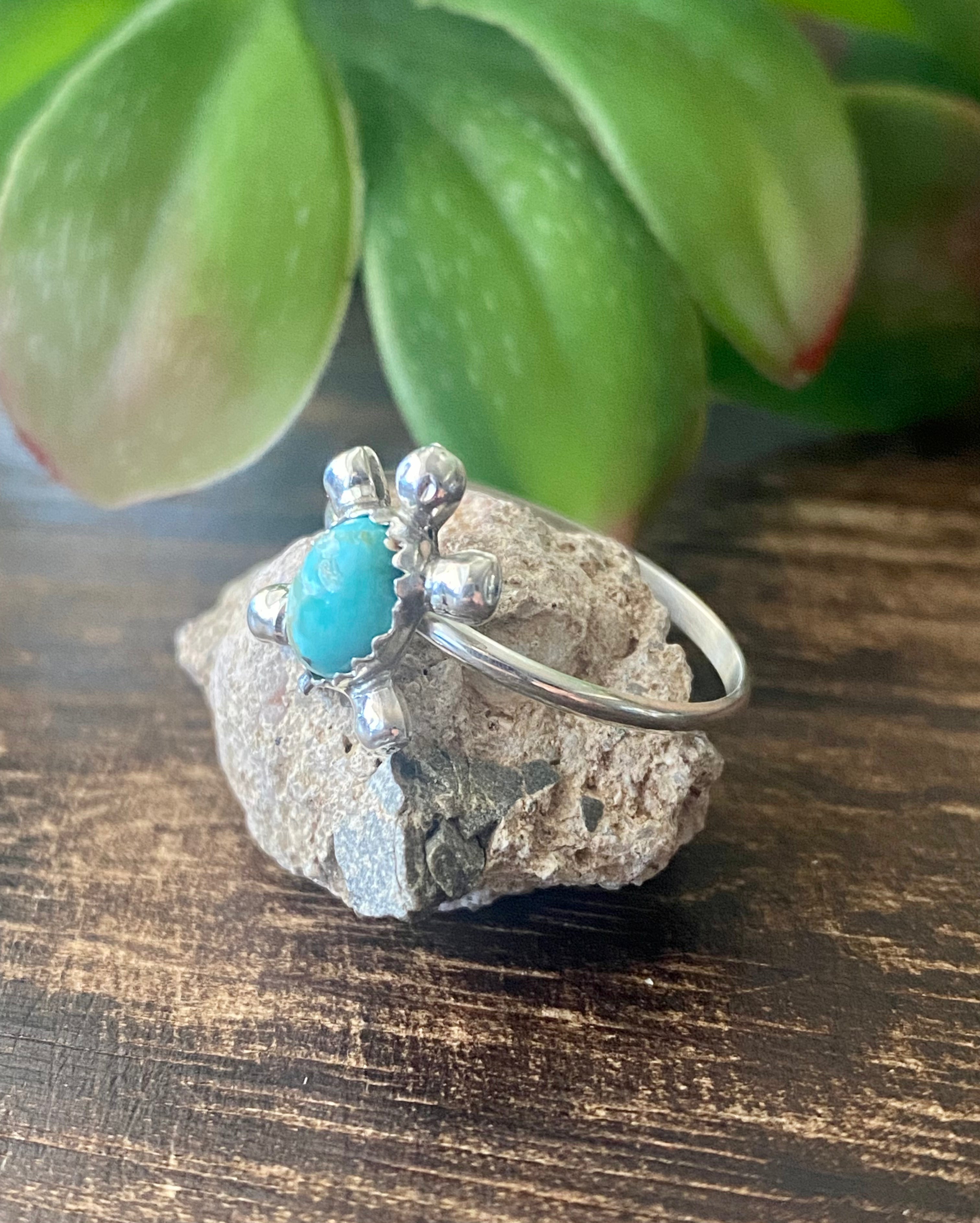 Zuni Made Turquoise & Sterling Silver Turtle Ring Size 5.75