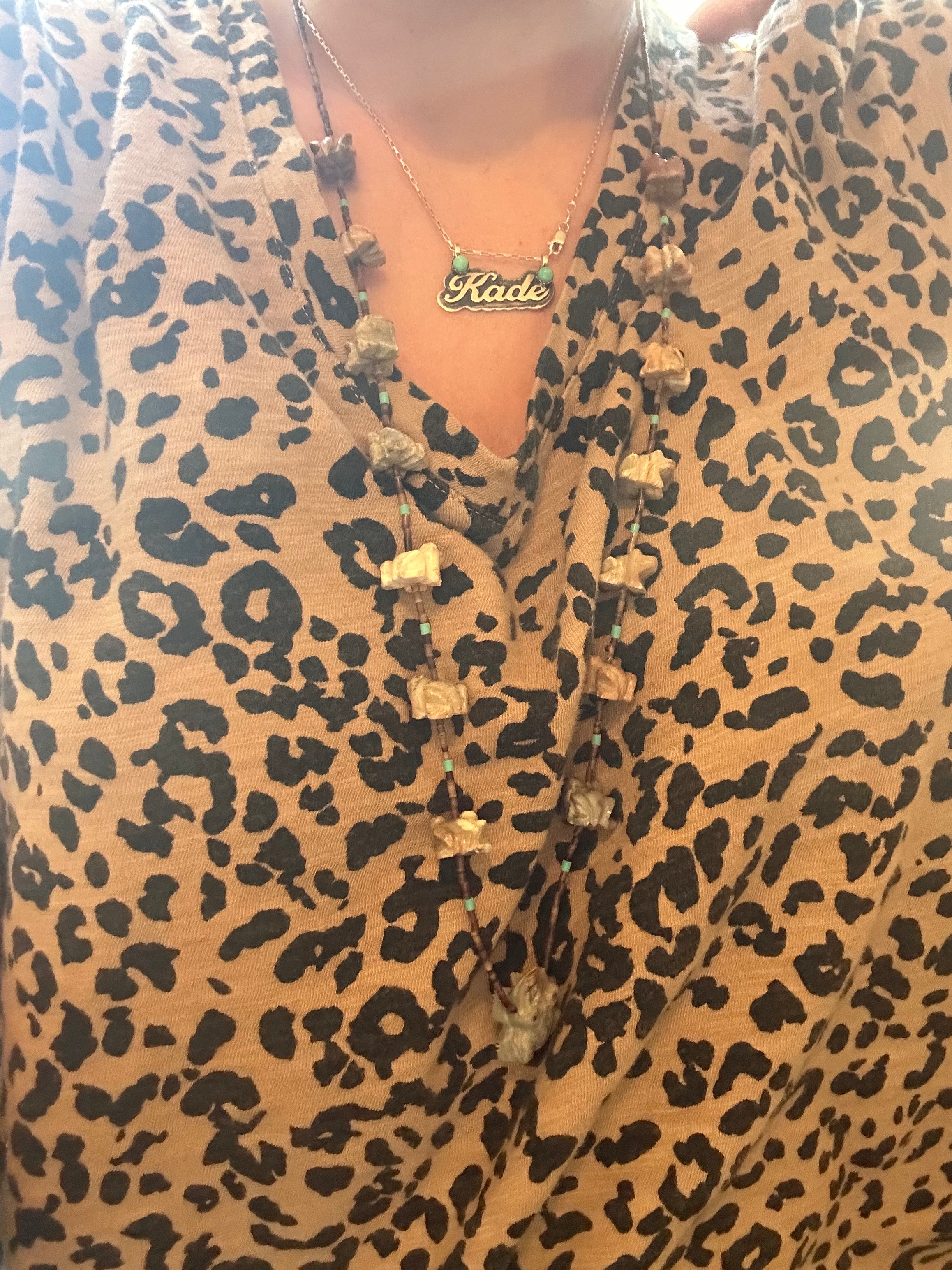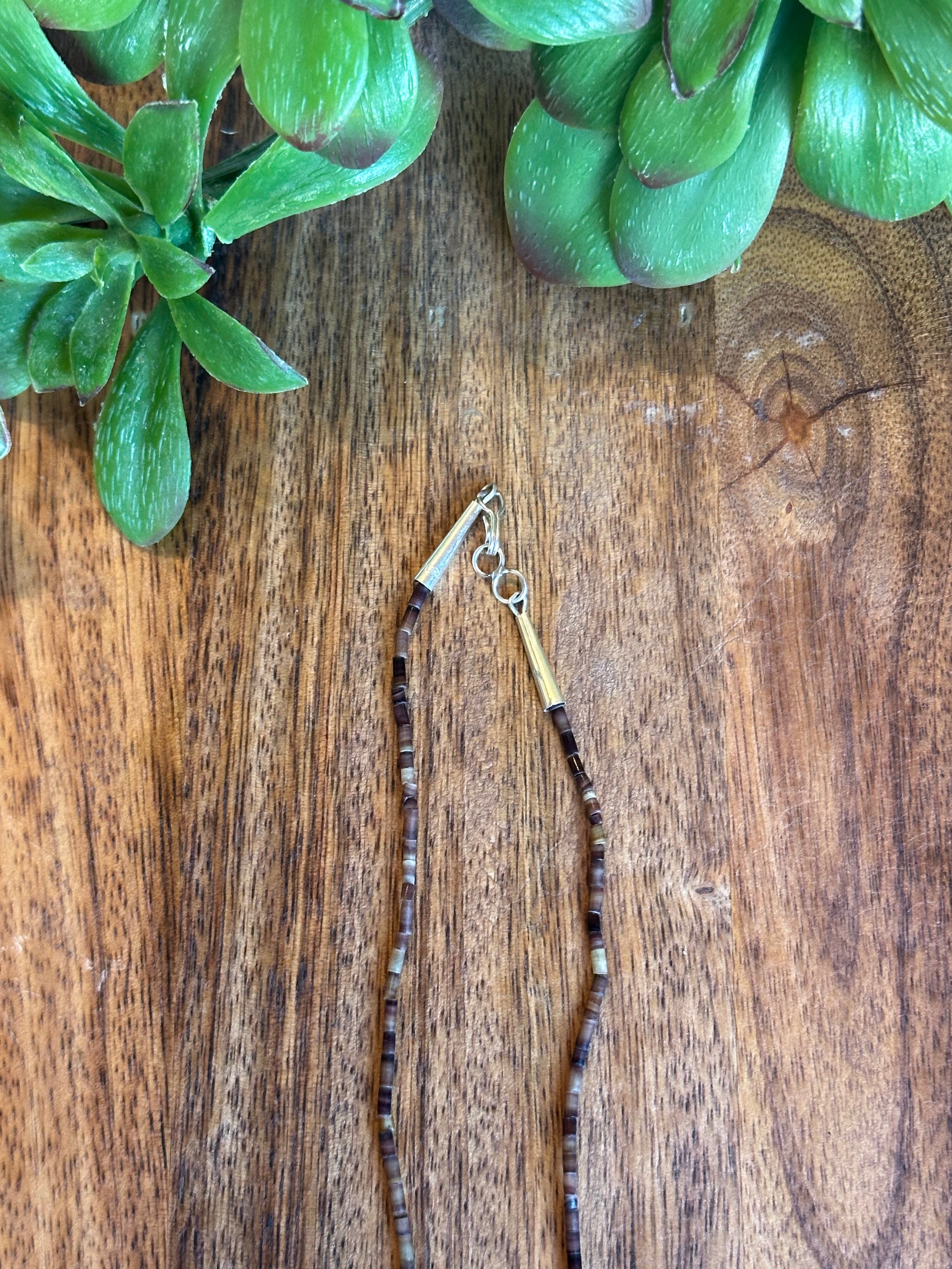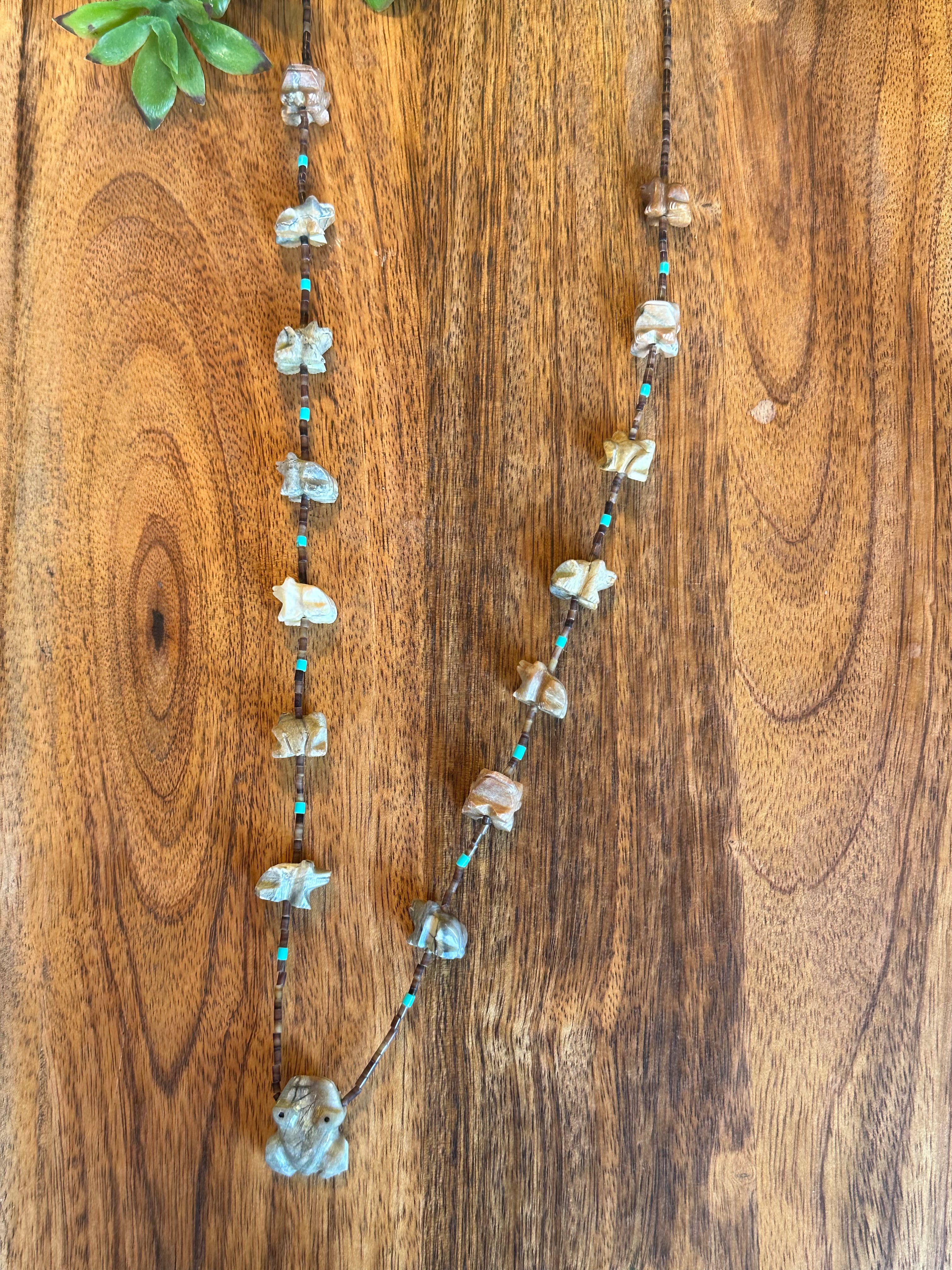 Zuni Strung Multi Stone & Sterling Silver Beaded Fetish Necklace. It measures 32 inches long with hang while the chain by itself measures 31 inches long.