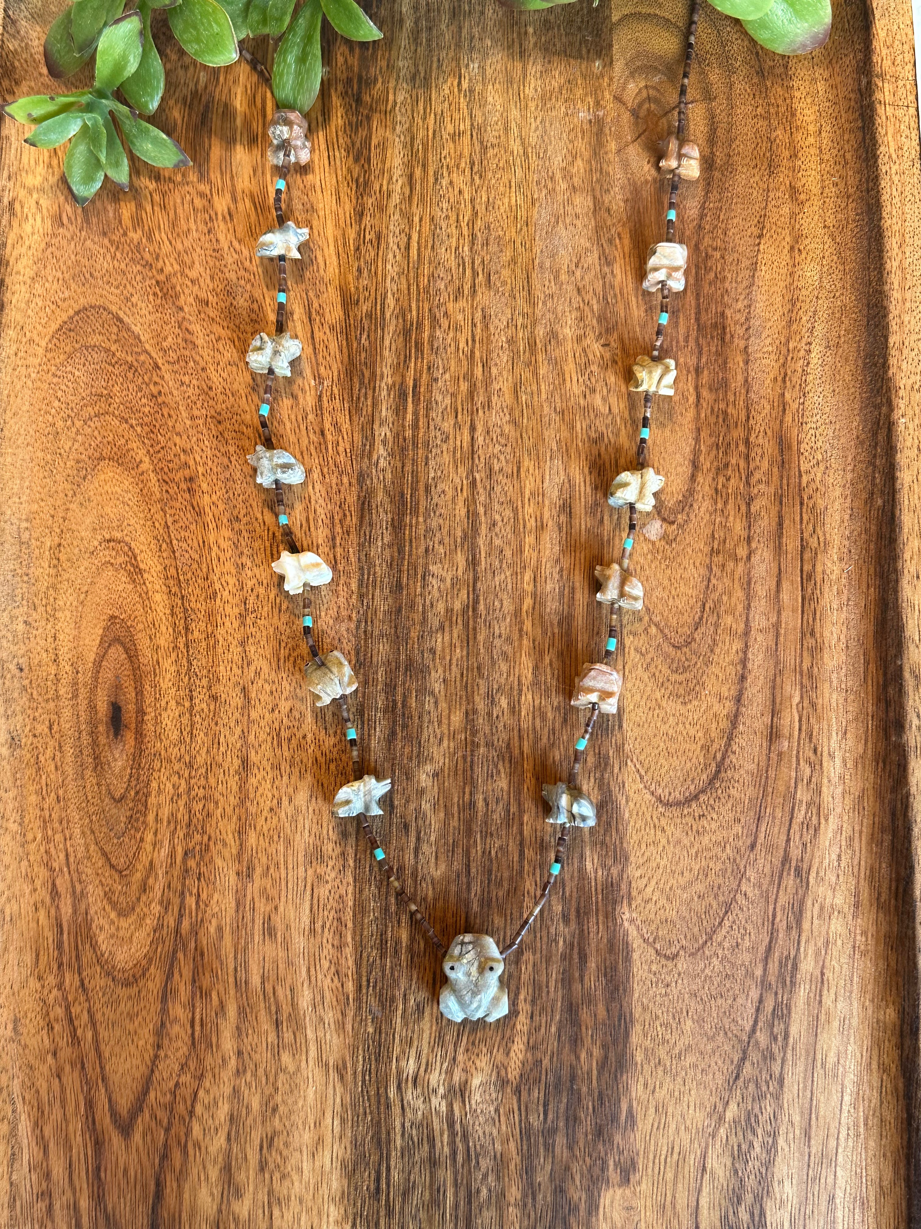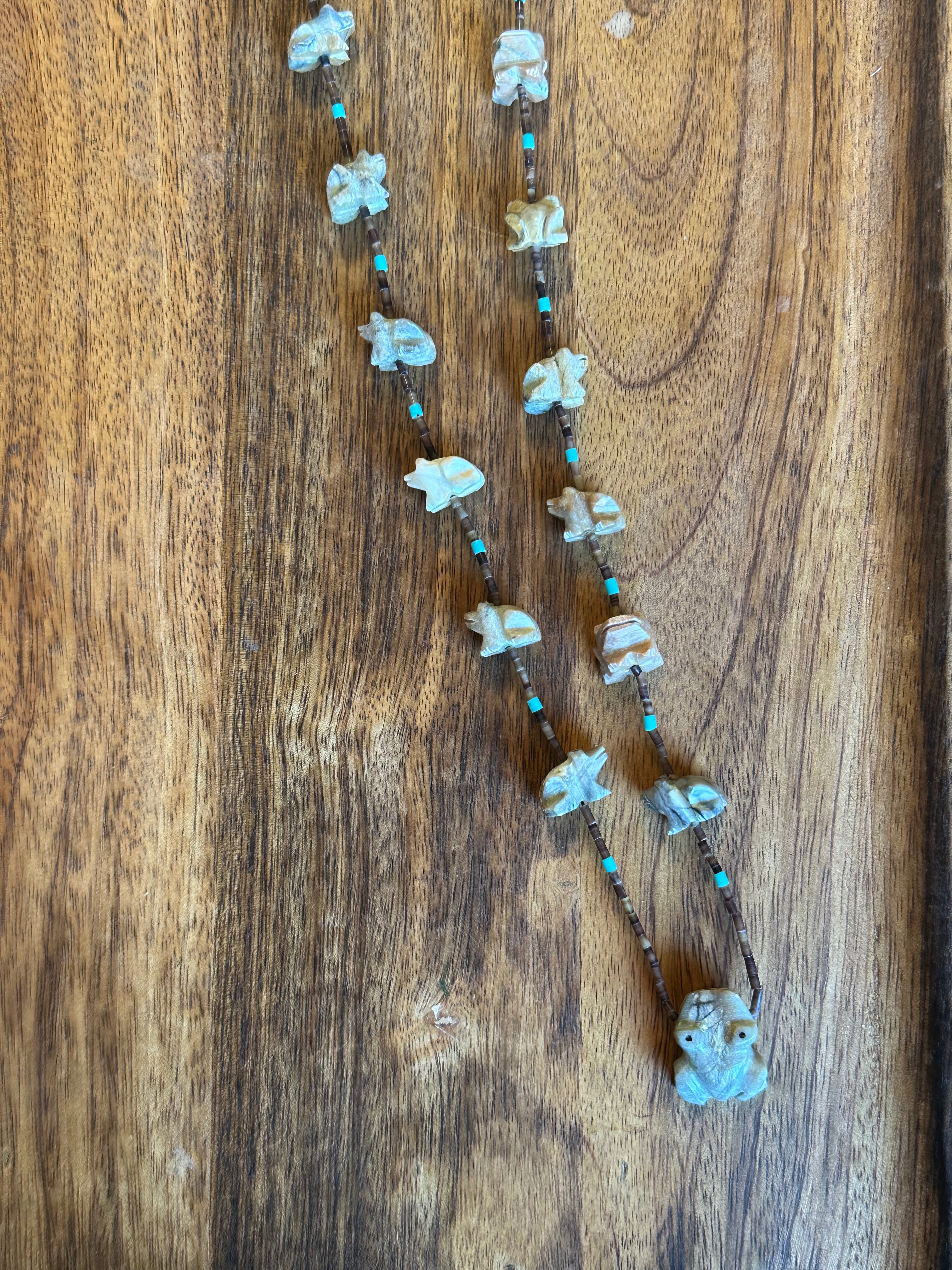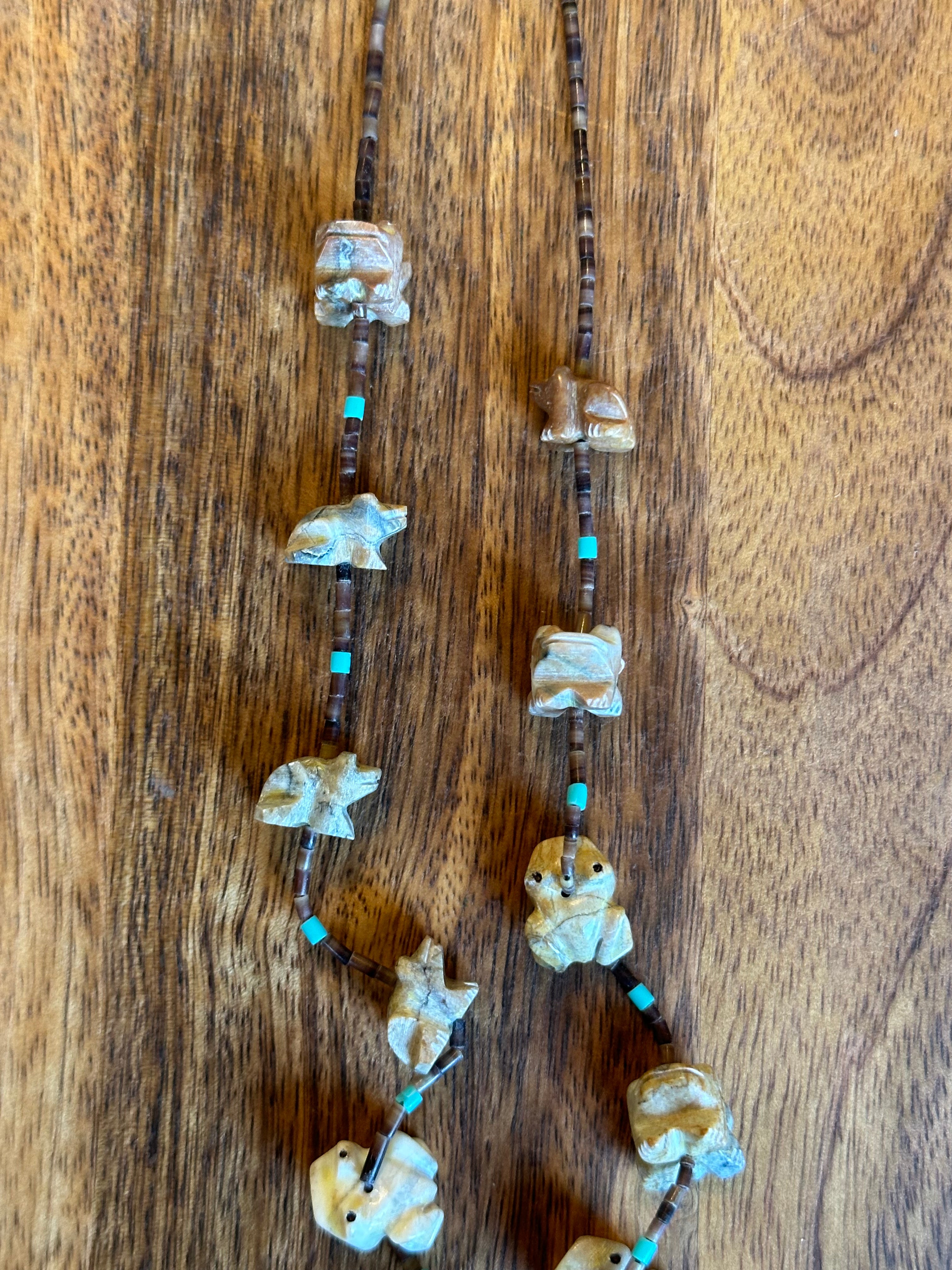 Zuni Strung Multi Stone & Sterling Silver Beaded Fetish Necklace
