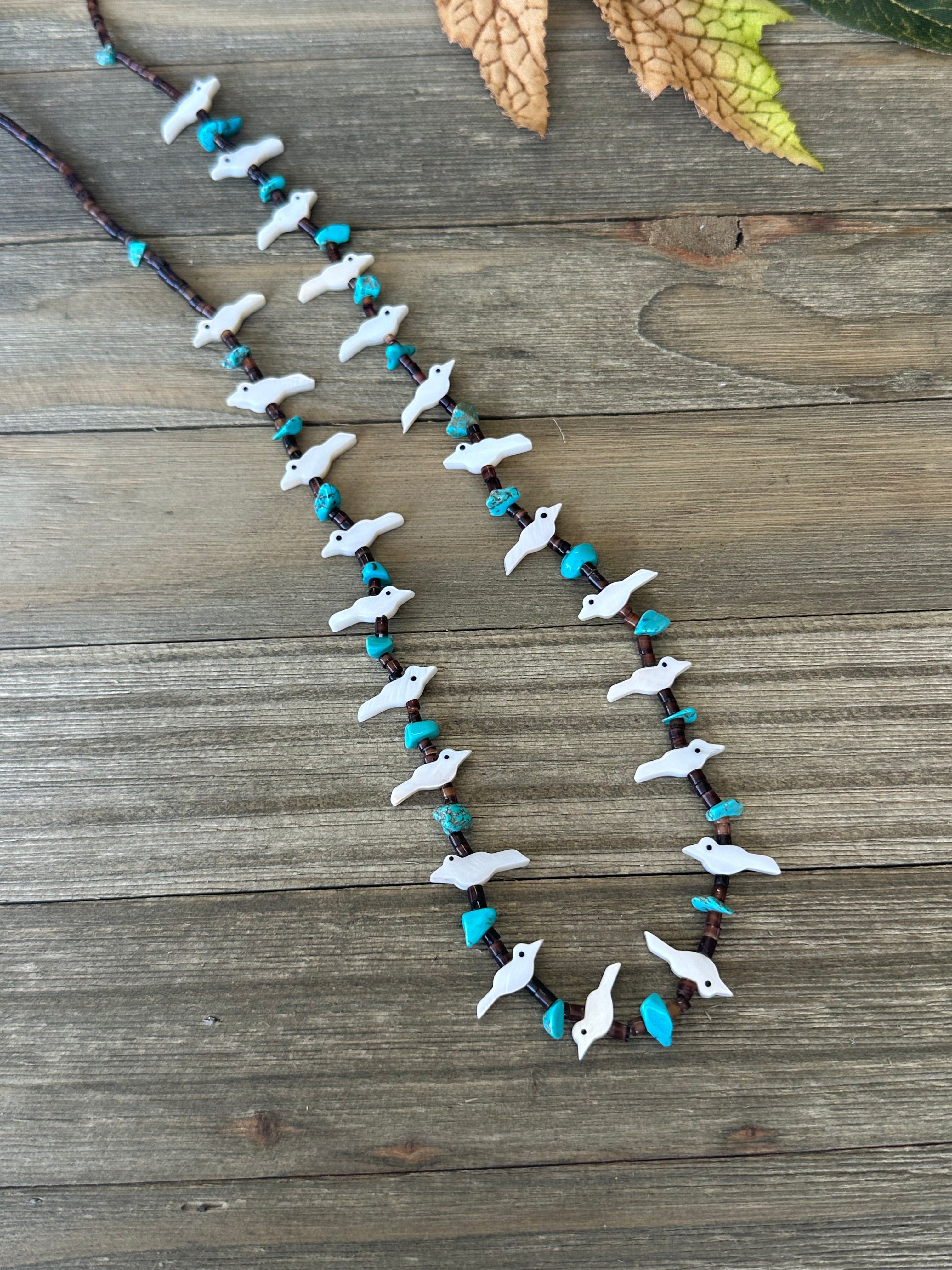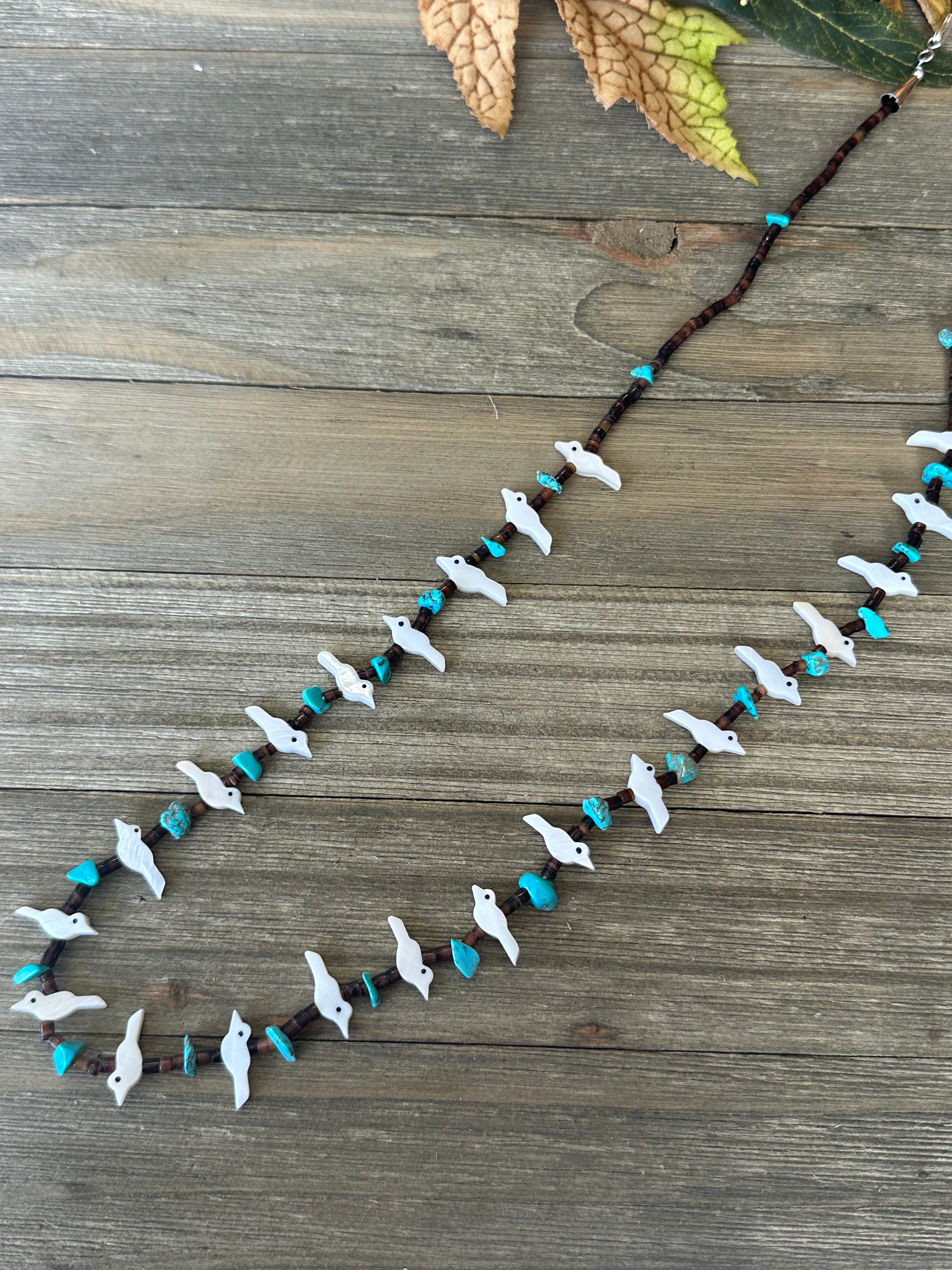 Zuni Strung Multi Stone & Sterling Silver Beaded Fetish Necklace