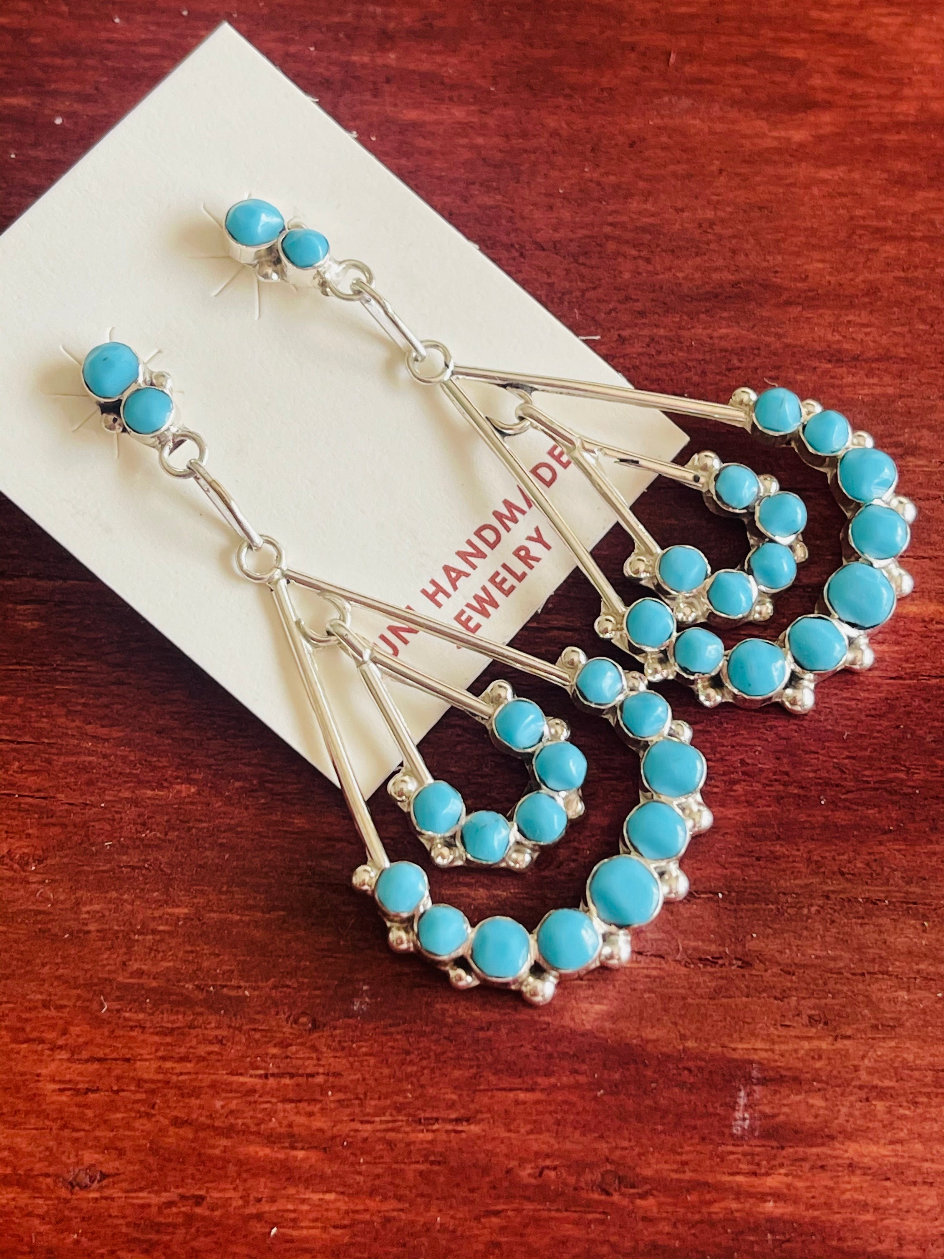 Zuni Turquoise & Sterling Silver Chandelier Dangles